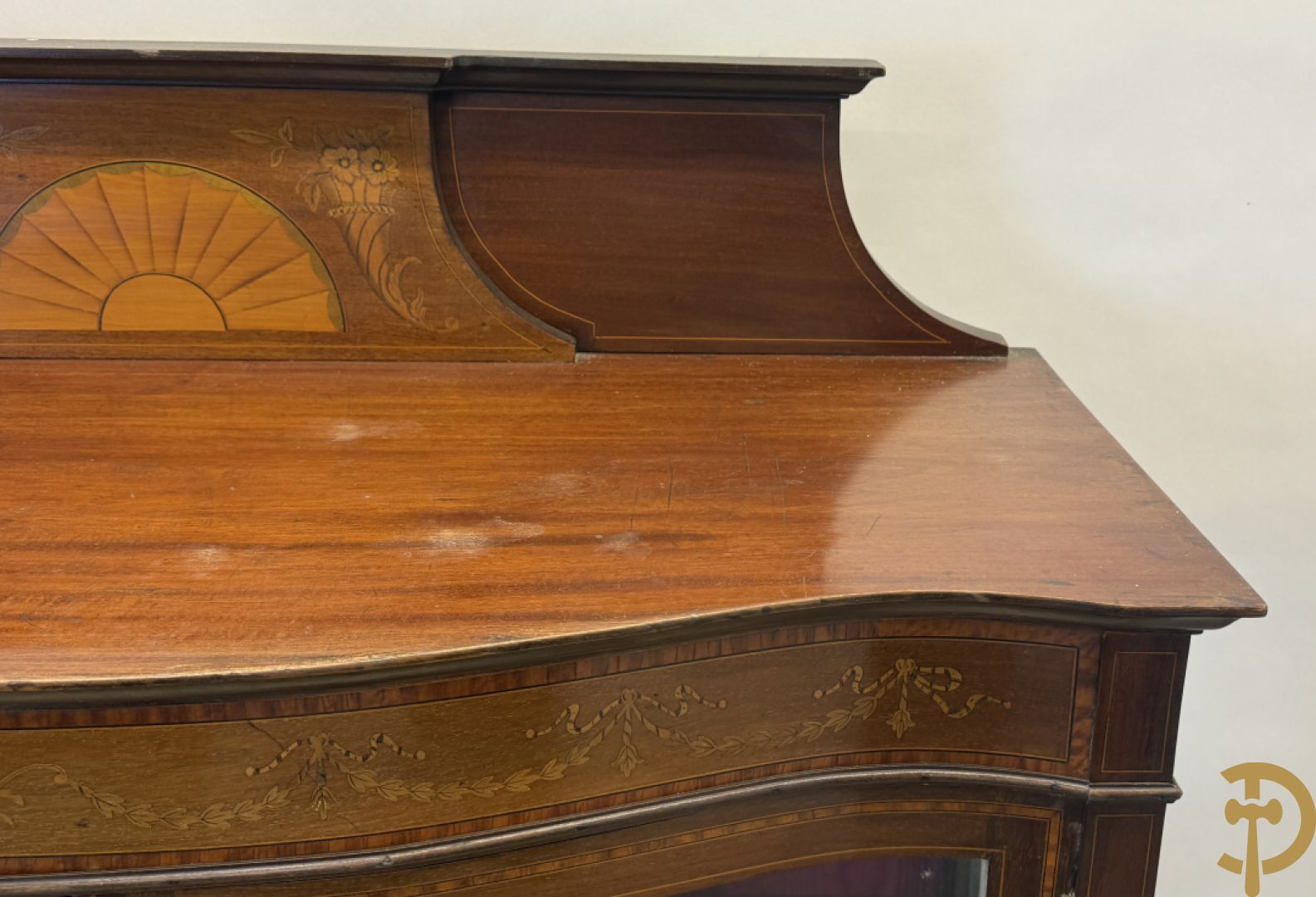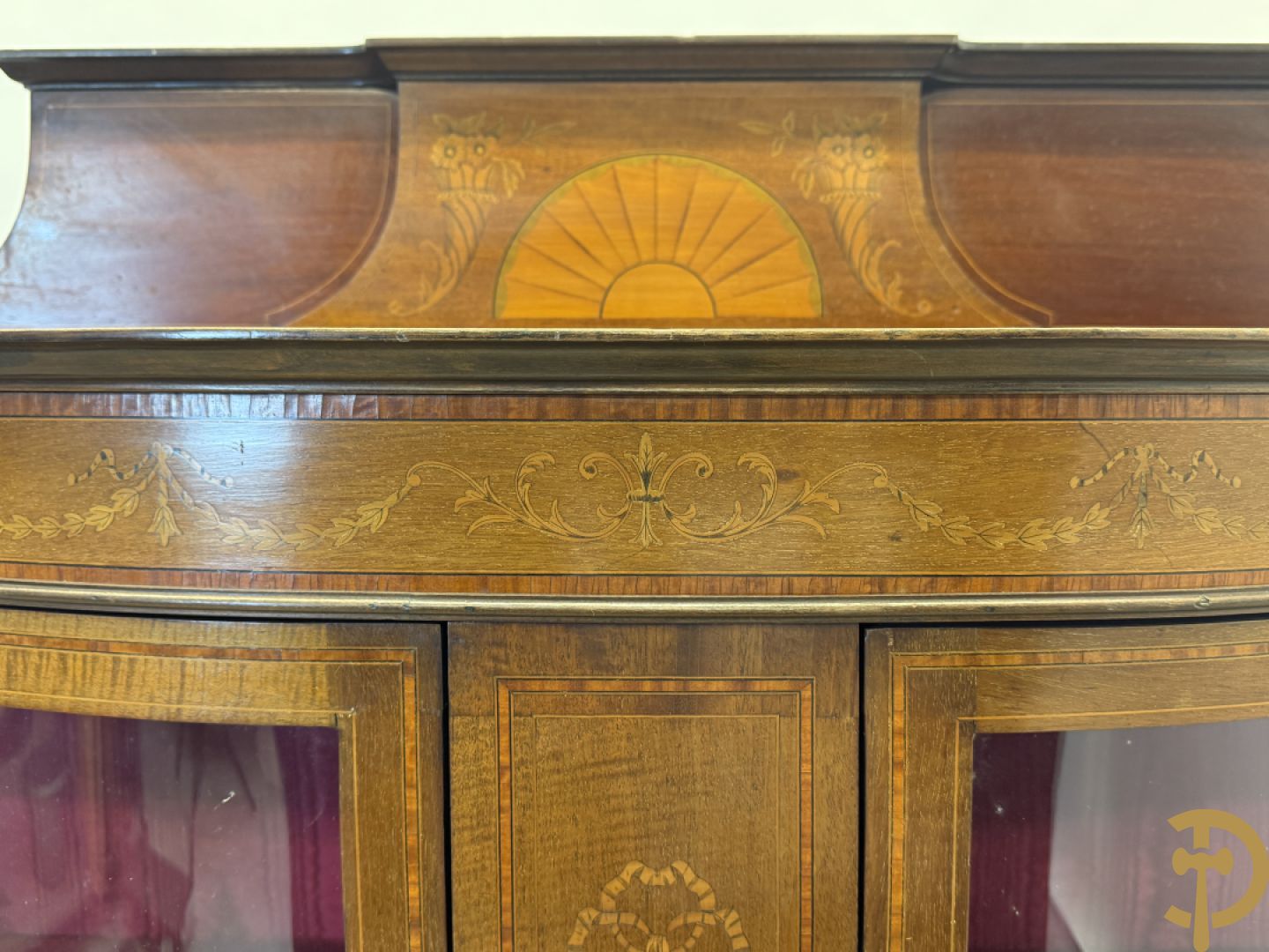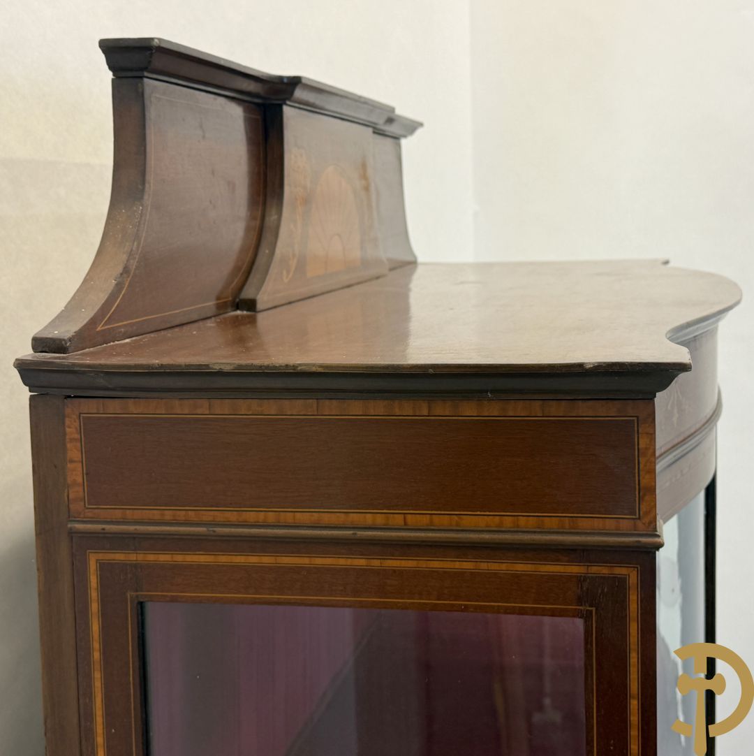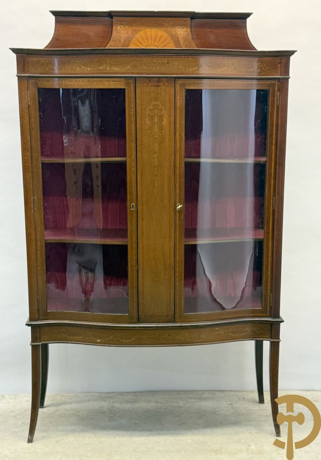 Notelaren Engelse tweedeursvitrine met marqueterie van bloemenguirlandes op voluutvormige poten
