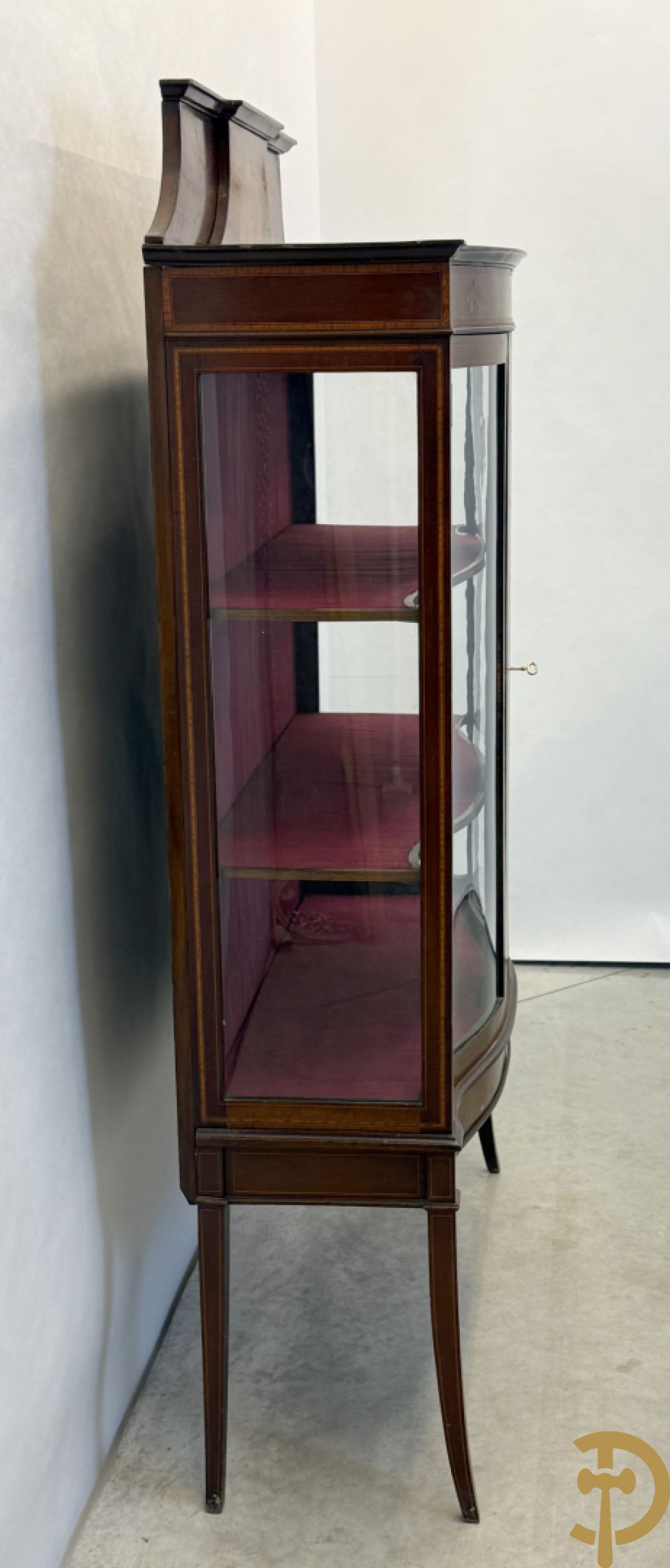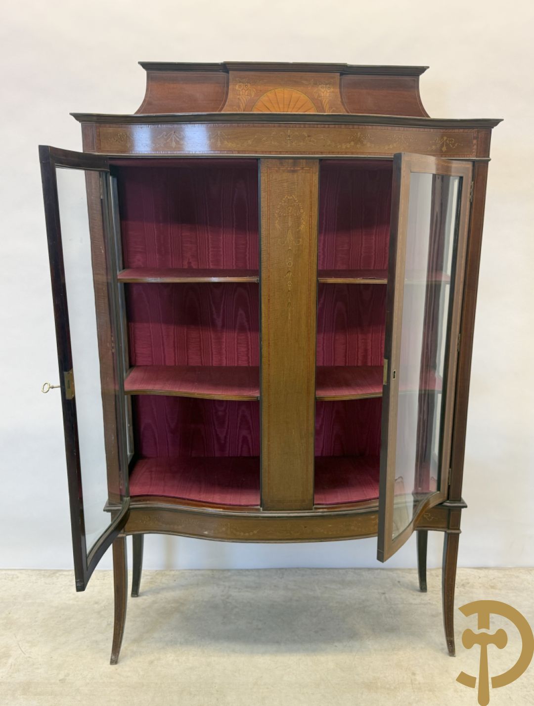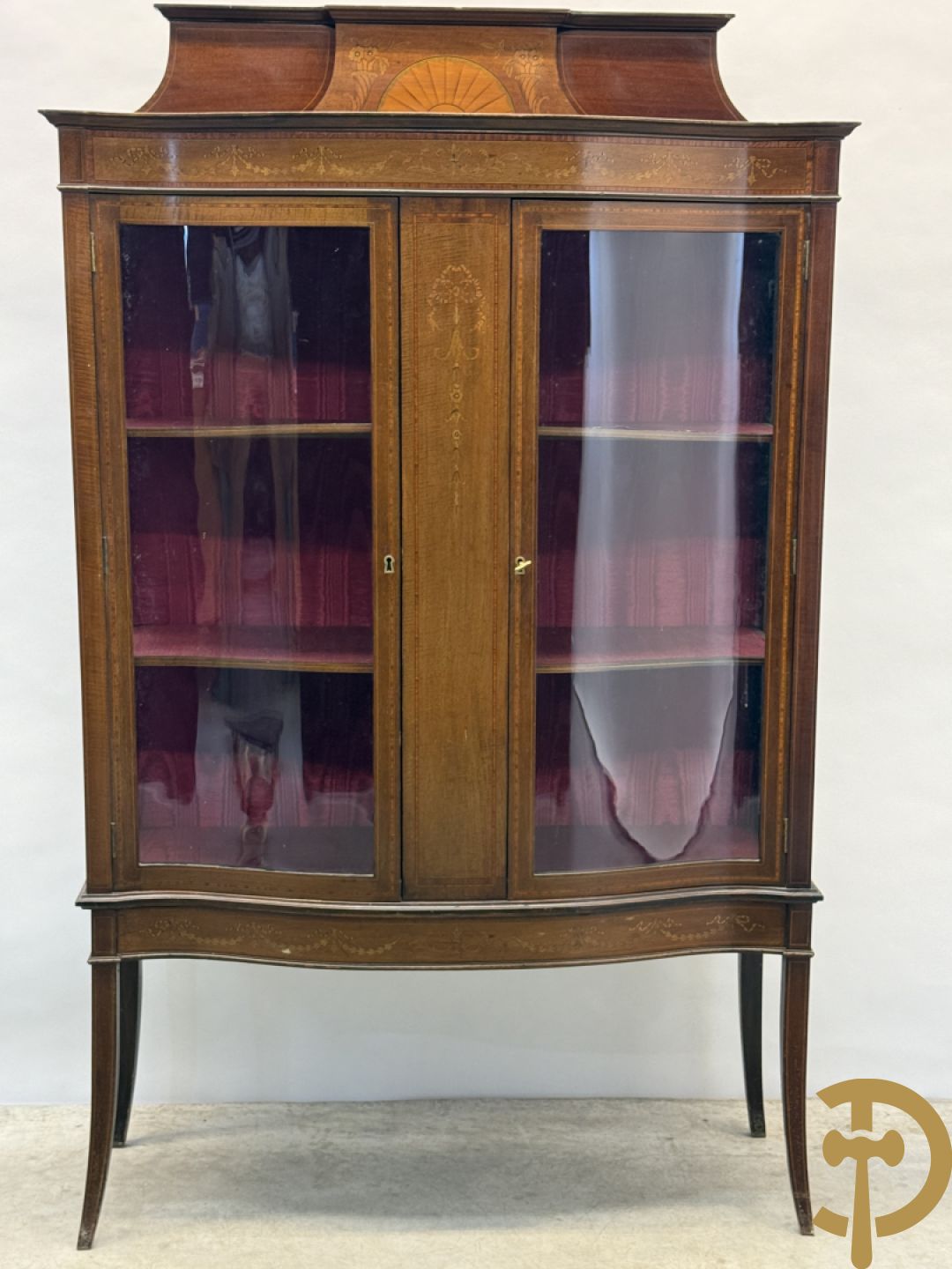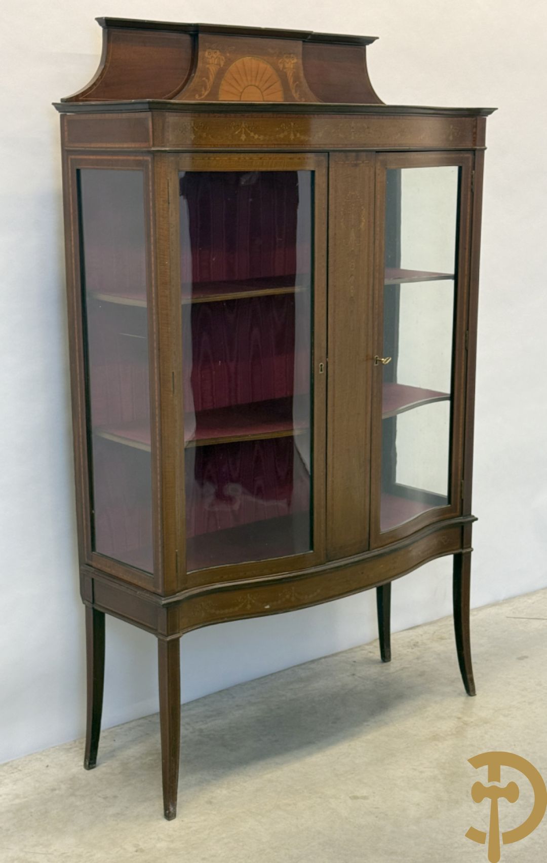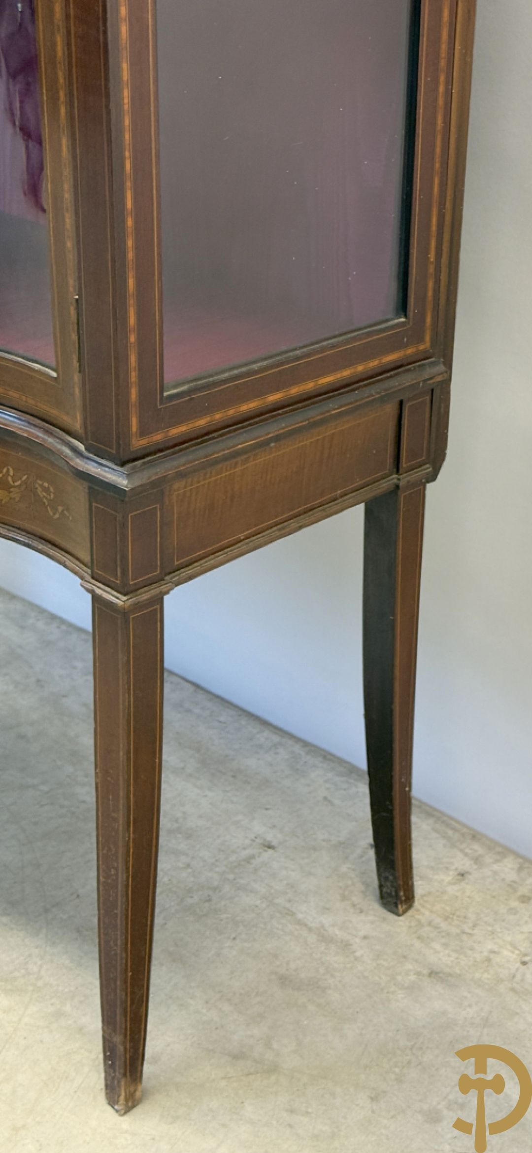 Notelaren Engelse tweedeursvitrine met marqueterie van bloemenguirlandes op voluutvormige poten