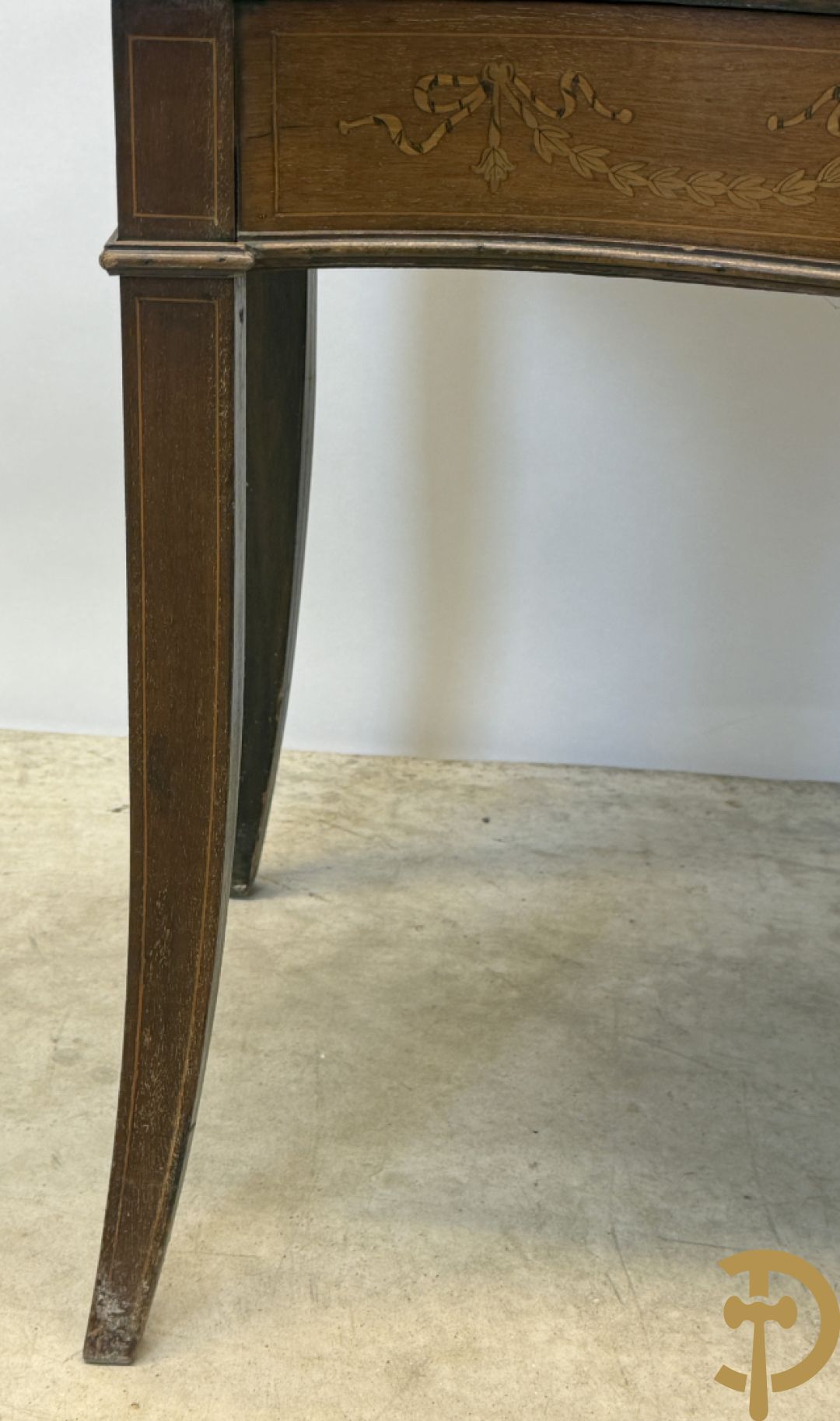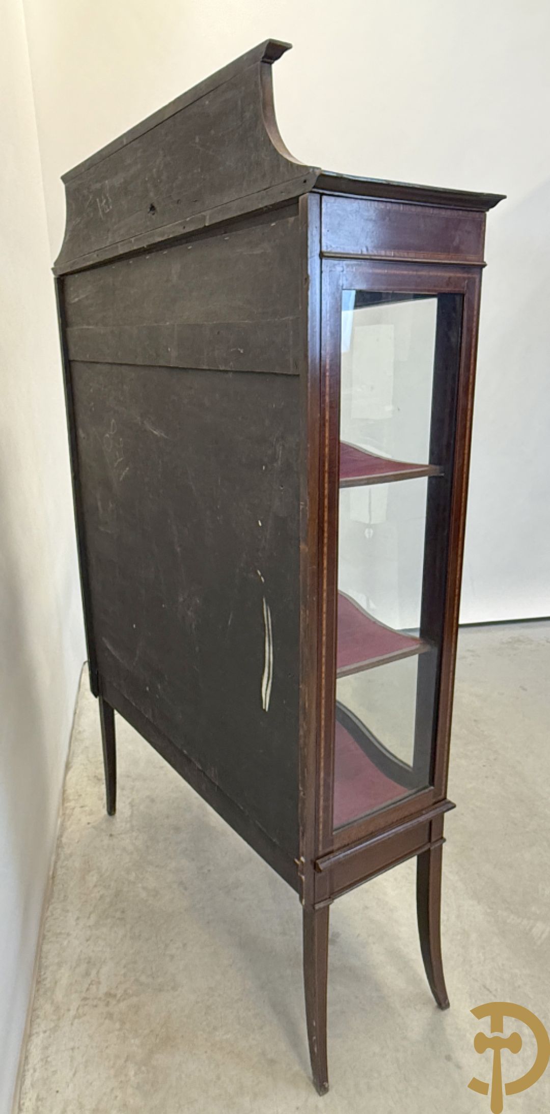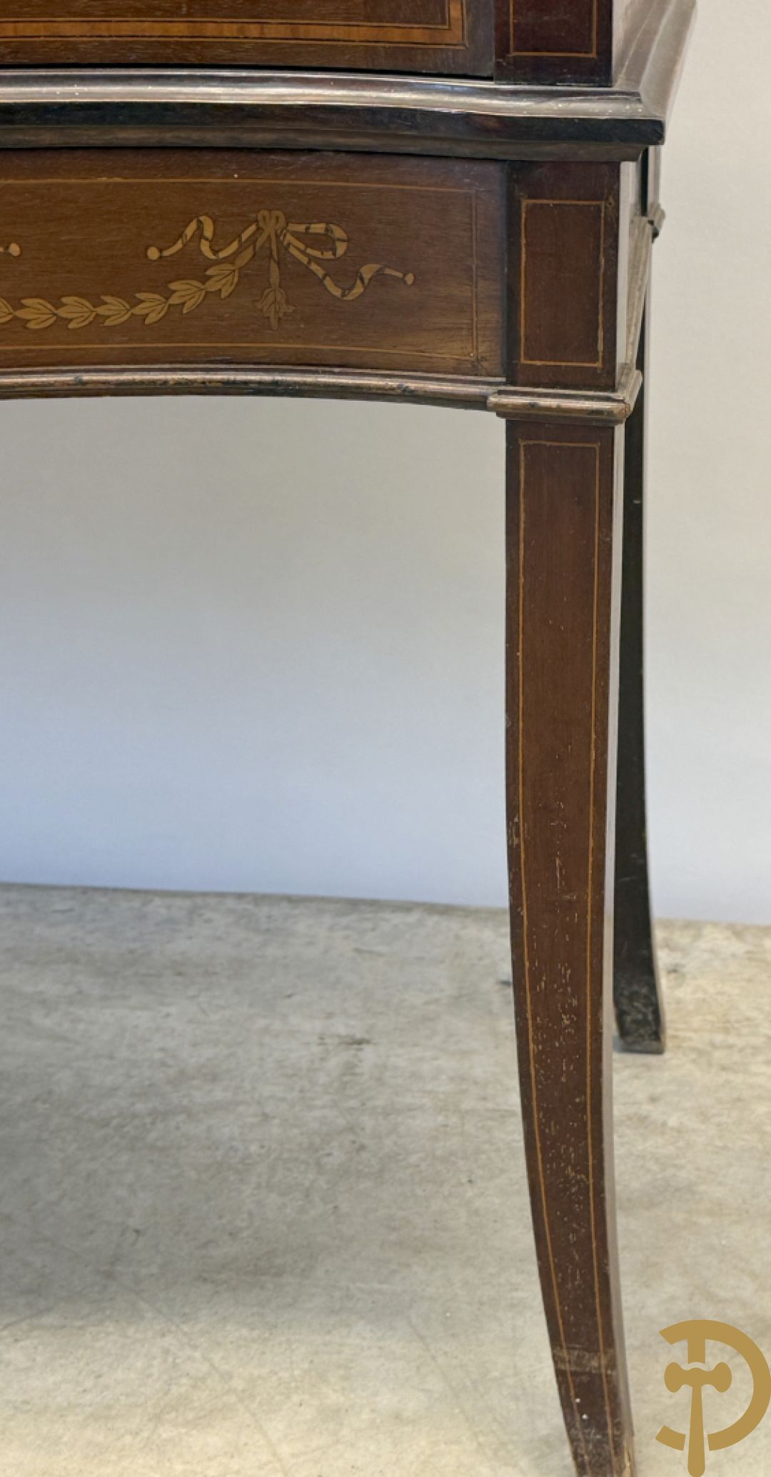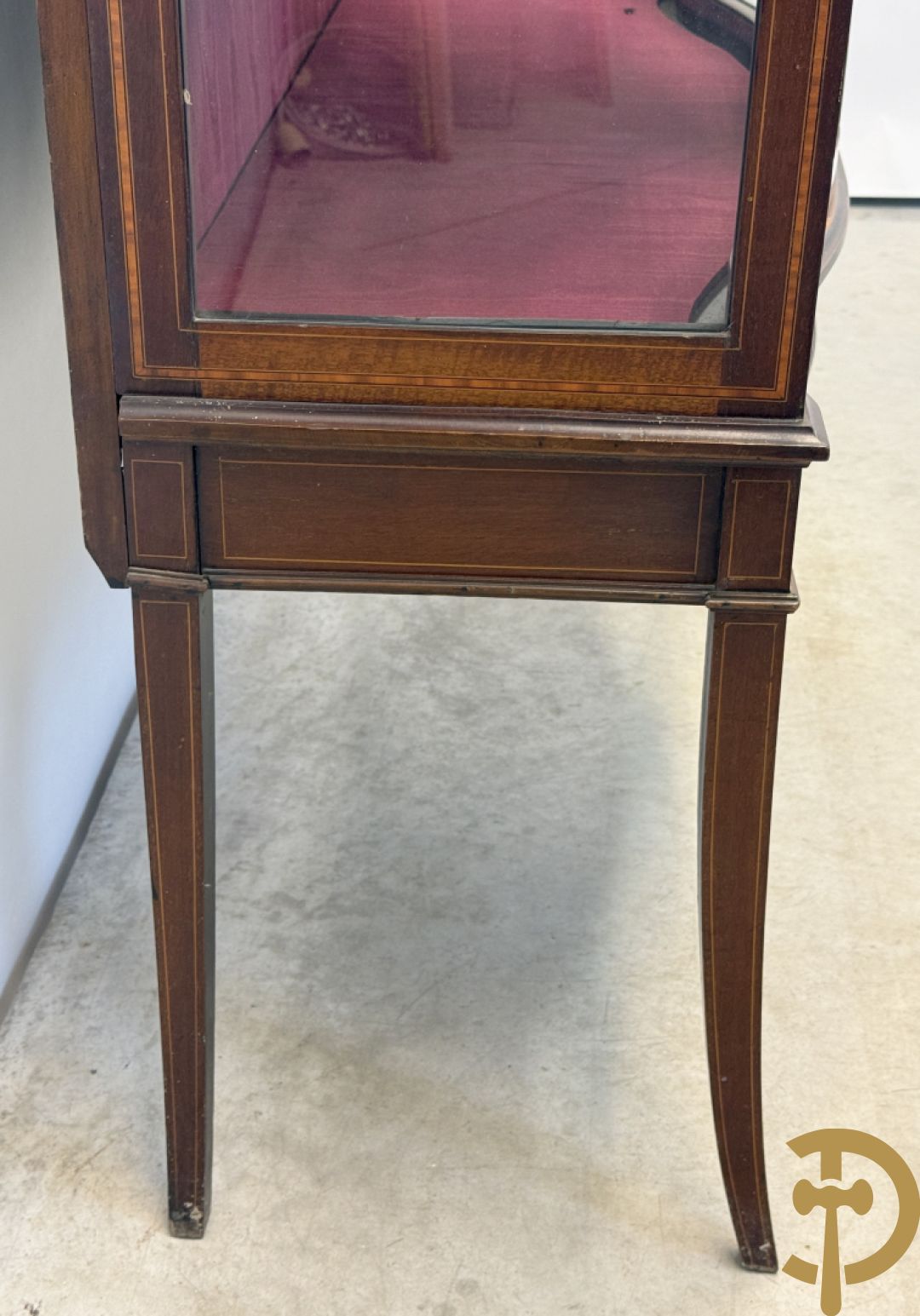 Notelaren Engelse tweedeursvitrine met marqueterie van bloemenguirlandes op voluutvormige poten