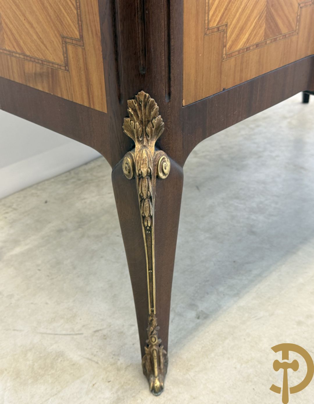 LOT 624 - Notelaren tweeladen commode Louis XVI met bronsbeslag en marmeren blad op voluutvormige poten