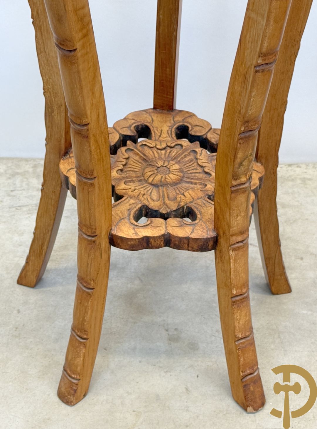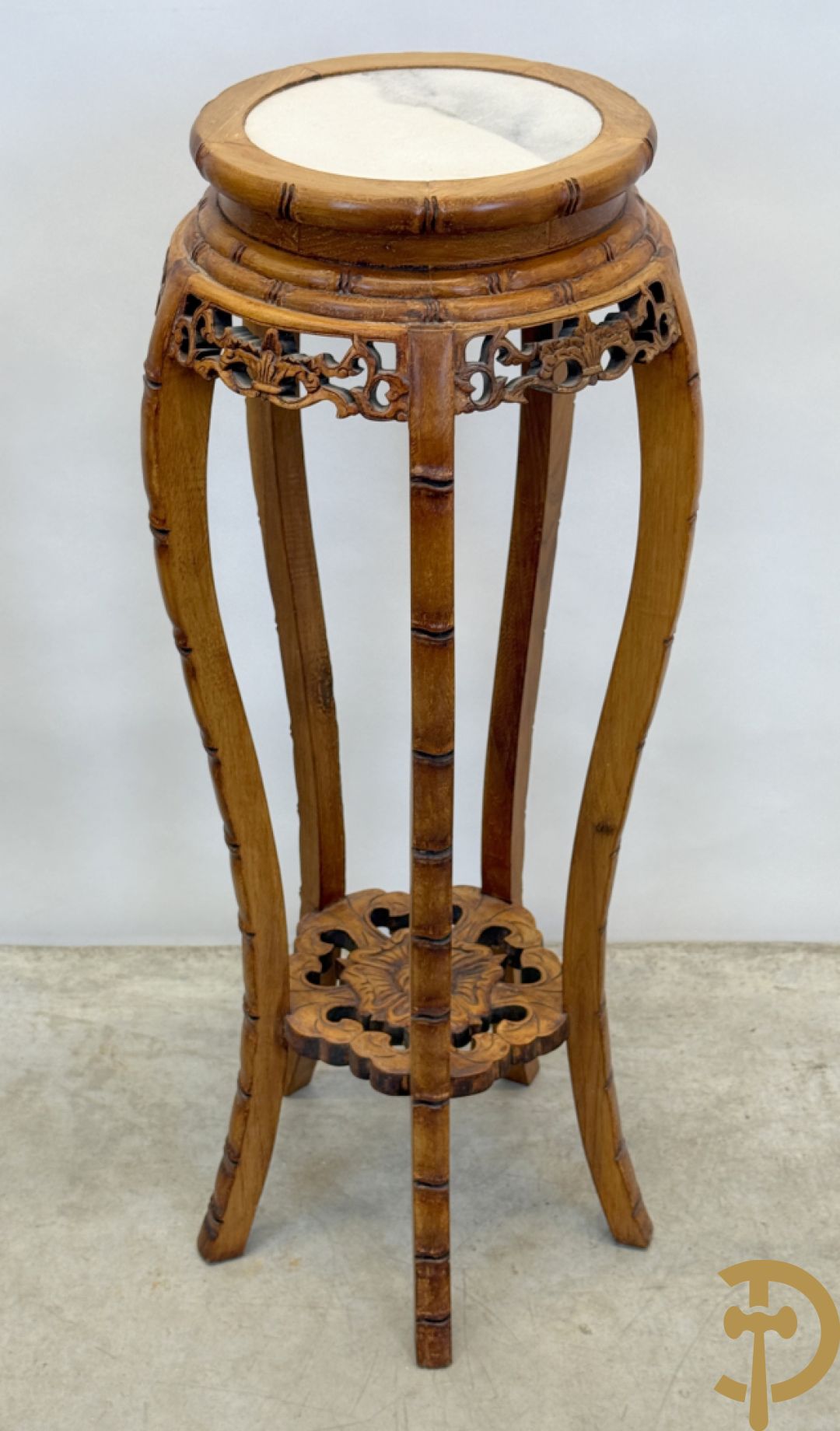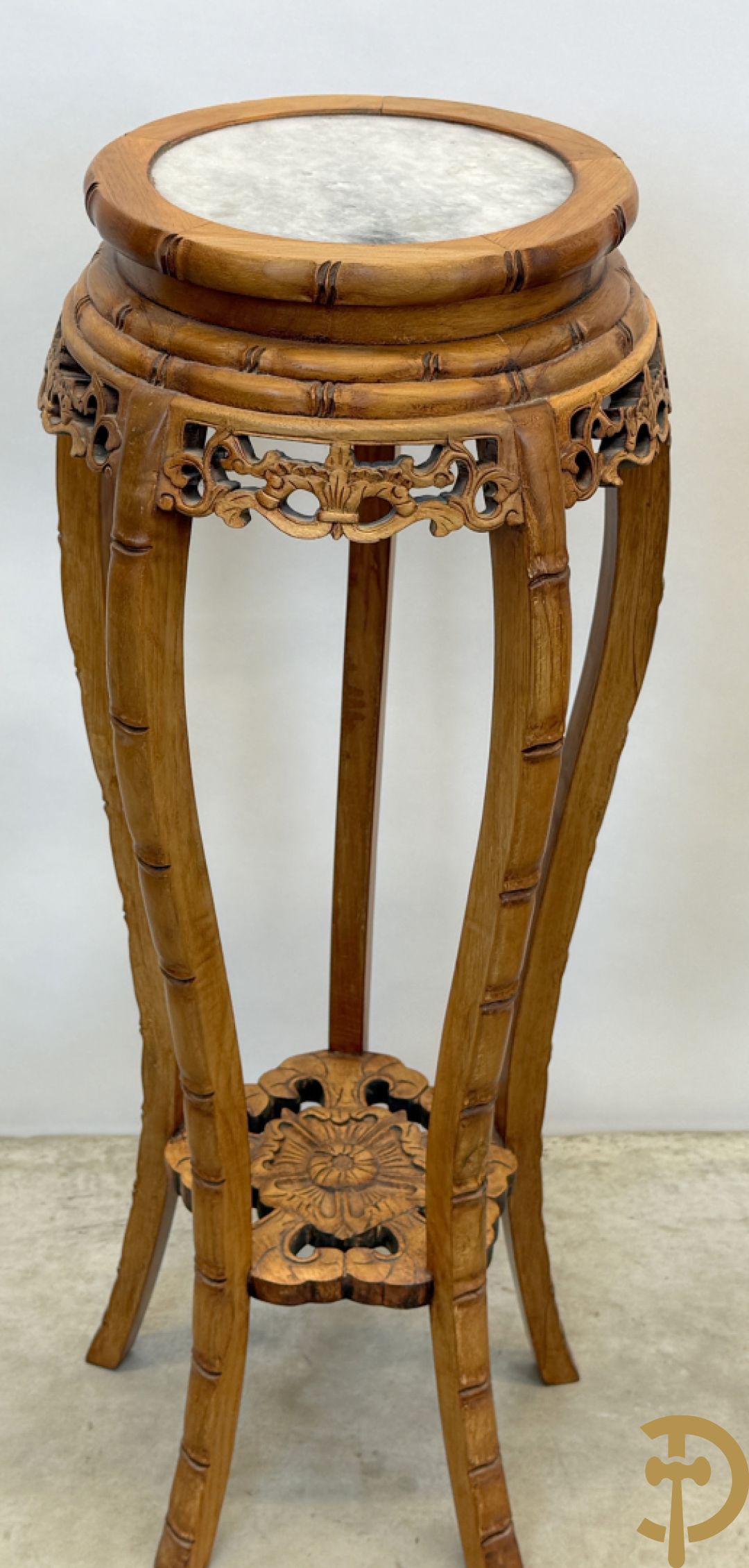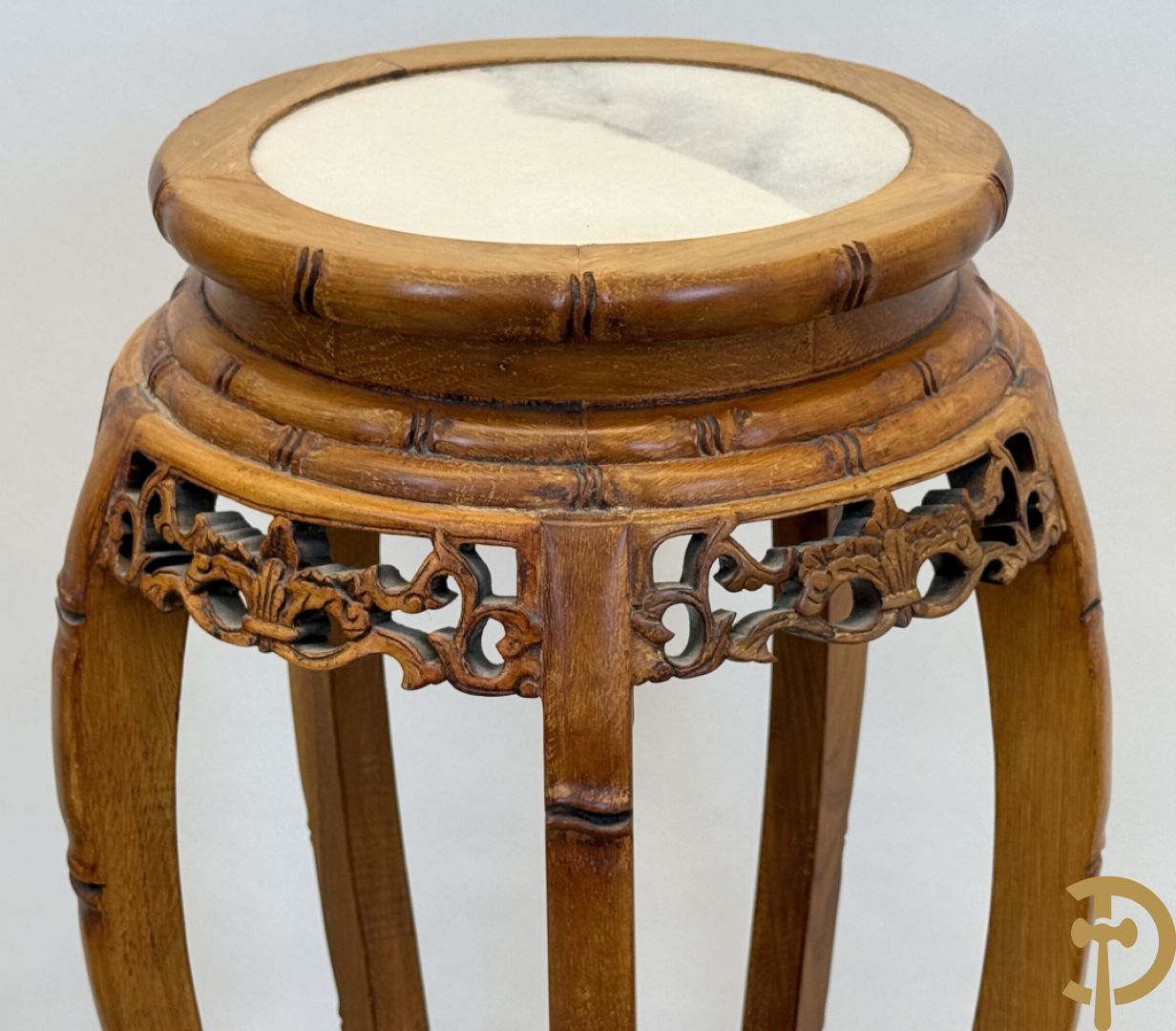 Paar Chinese sokkels met bloemensculptuur