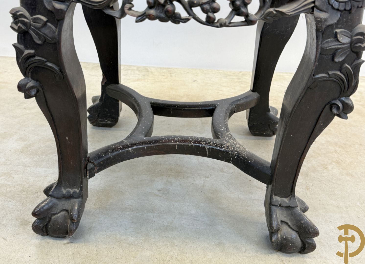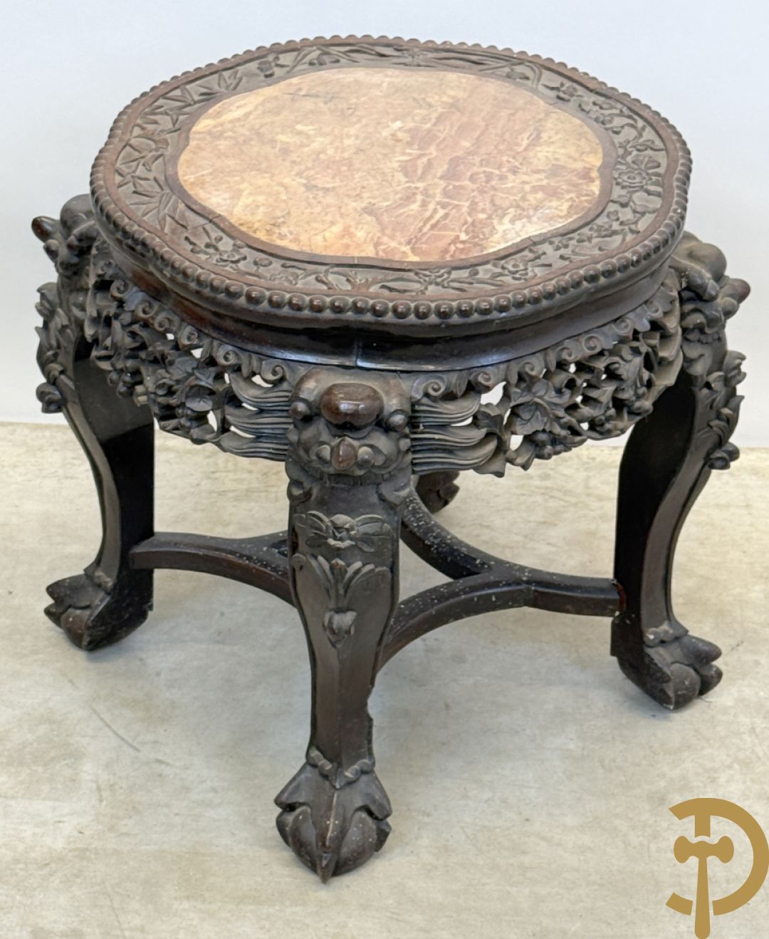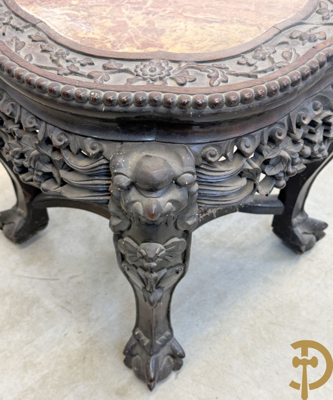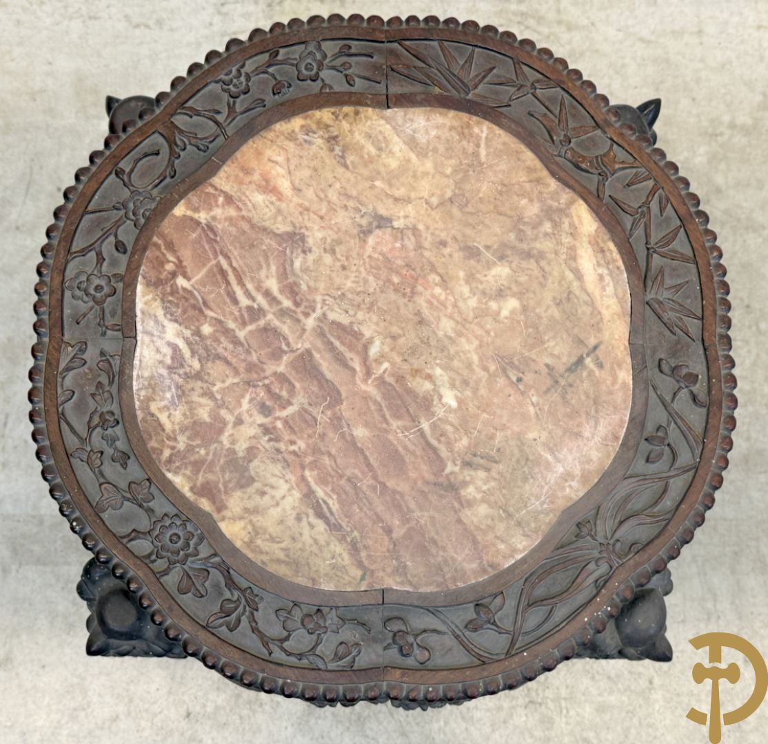 Chinese rozenhouten sokkel met plantenmotieven op klauwepoten