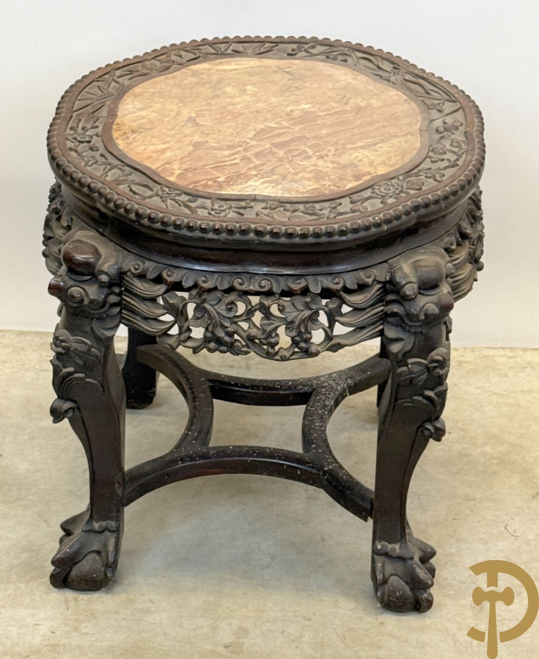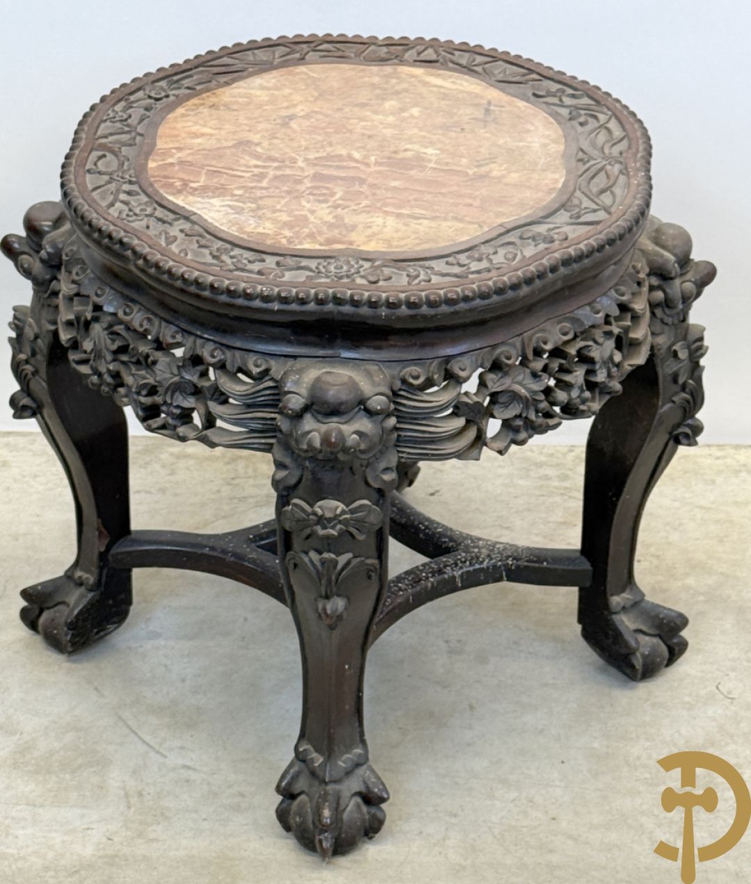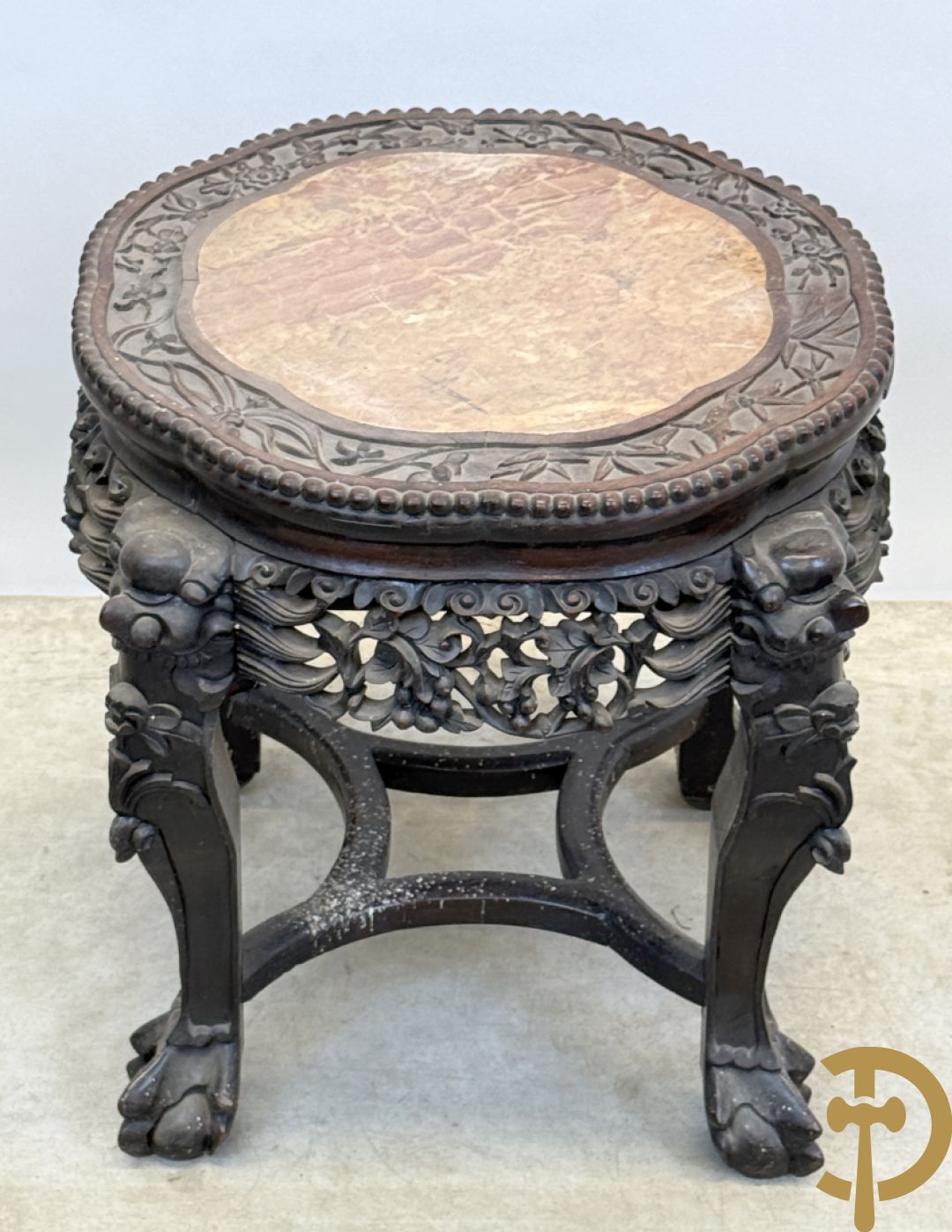 Chinese rozenhouten sokkel met plantenmotieven op klauwepoten