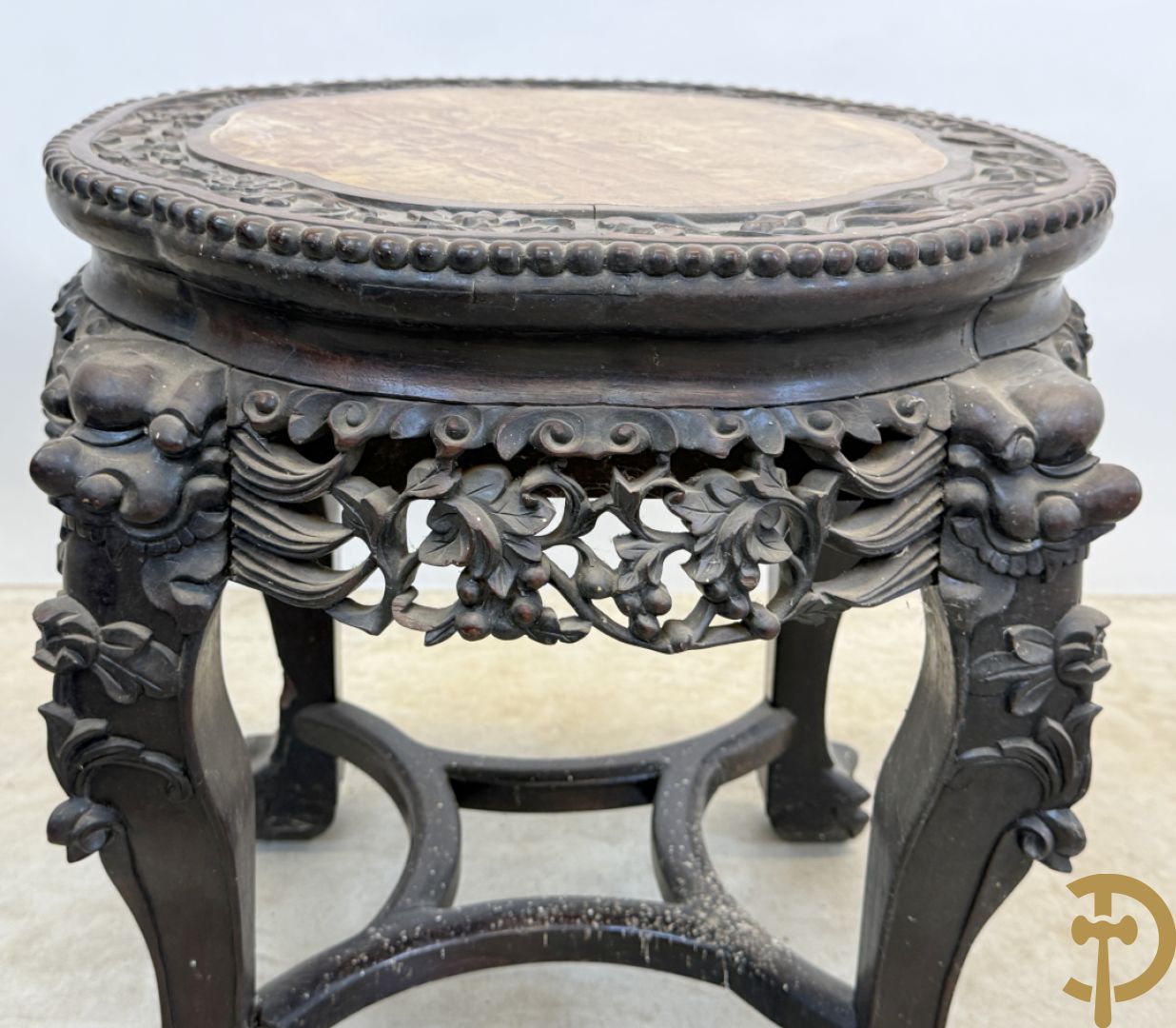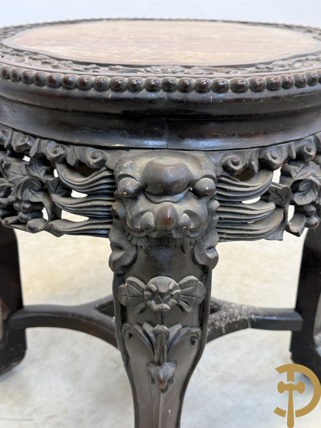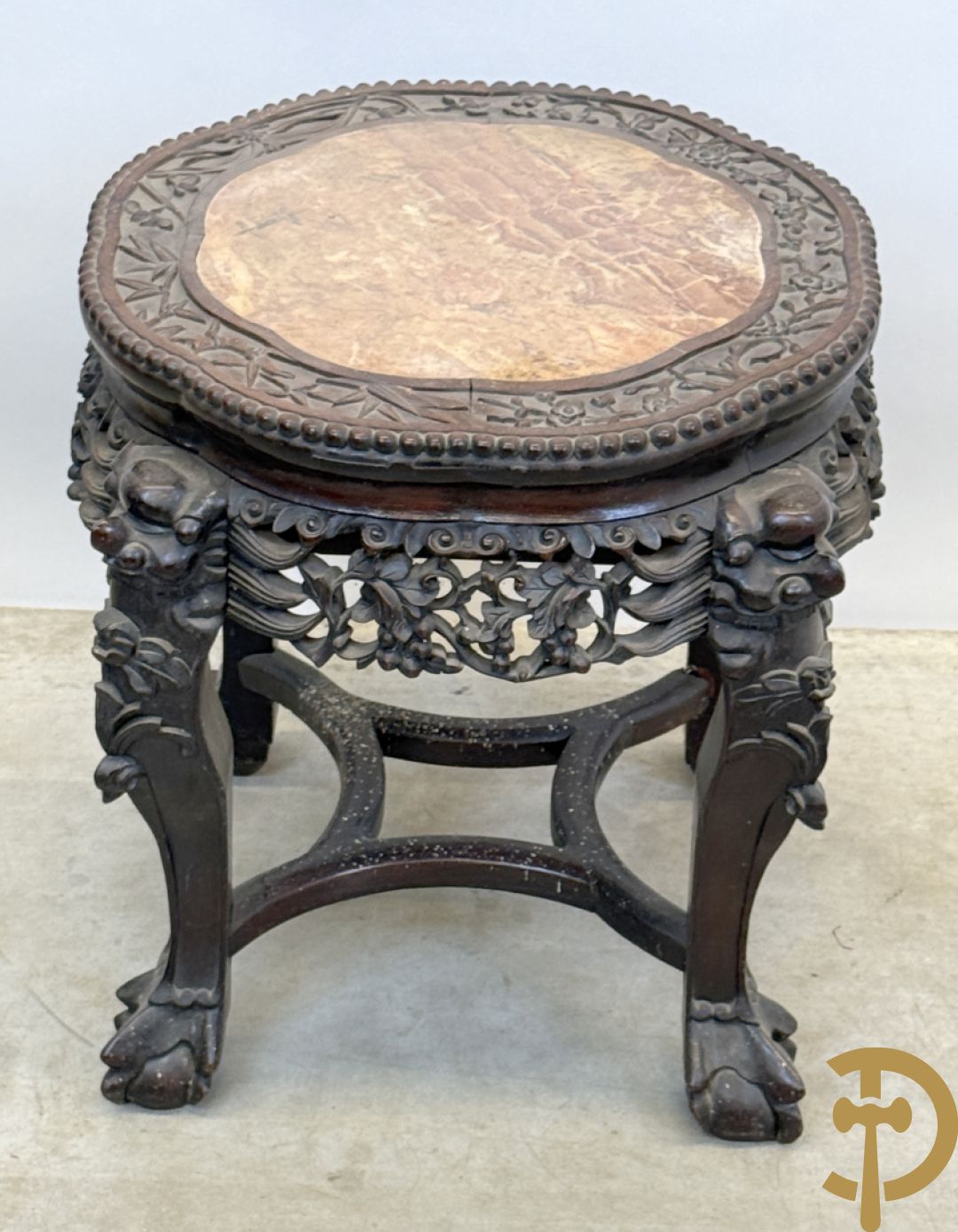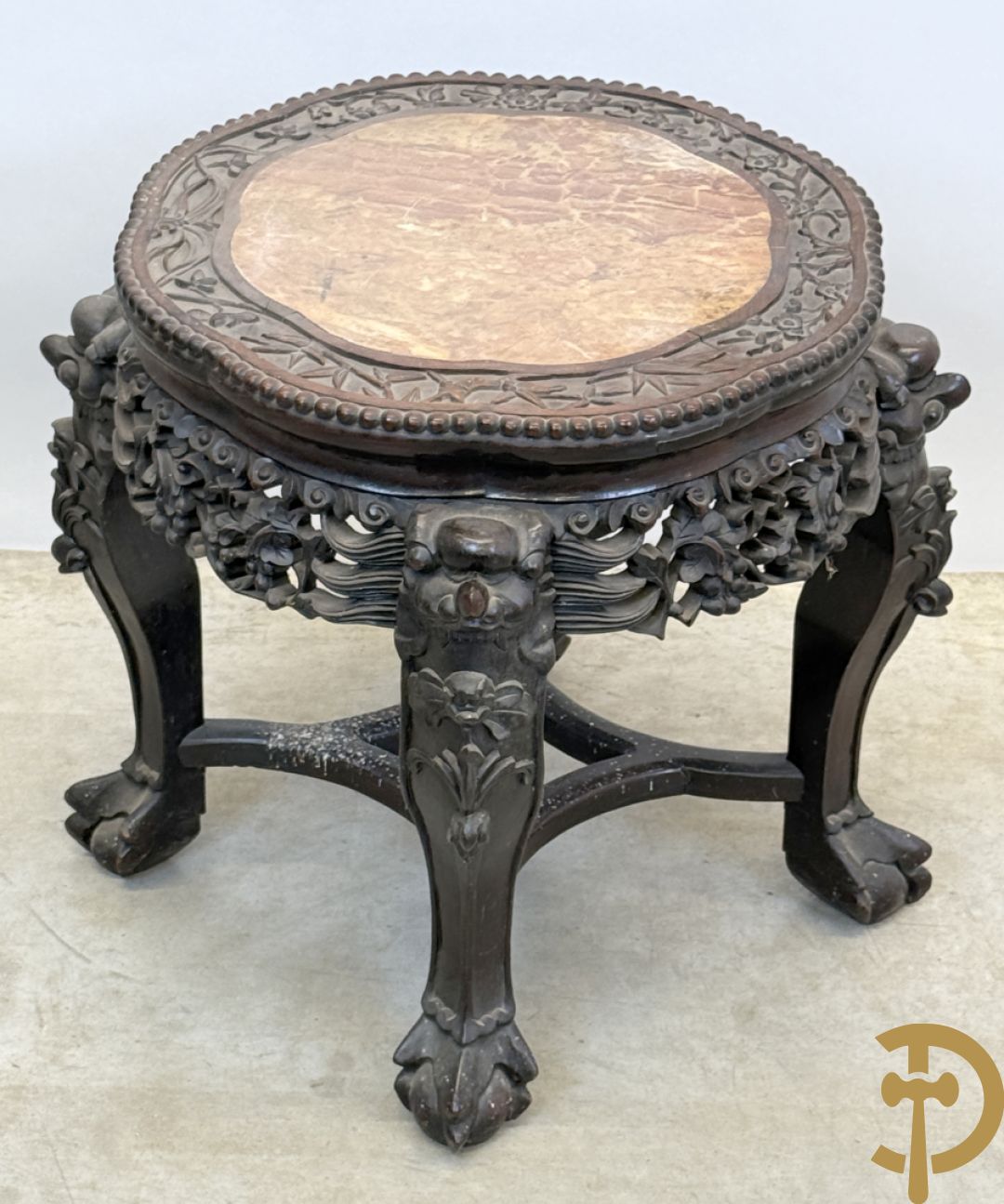 Chinese rozenhouten sokkel met plantenmotieven op klauwepoten