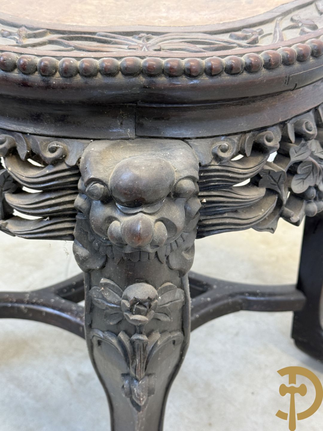 LOT 602 - Chinese rozenhouten sokkel met plantenmotieven op klauwepoten