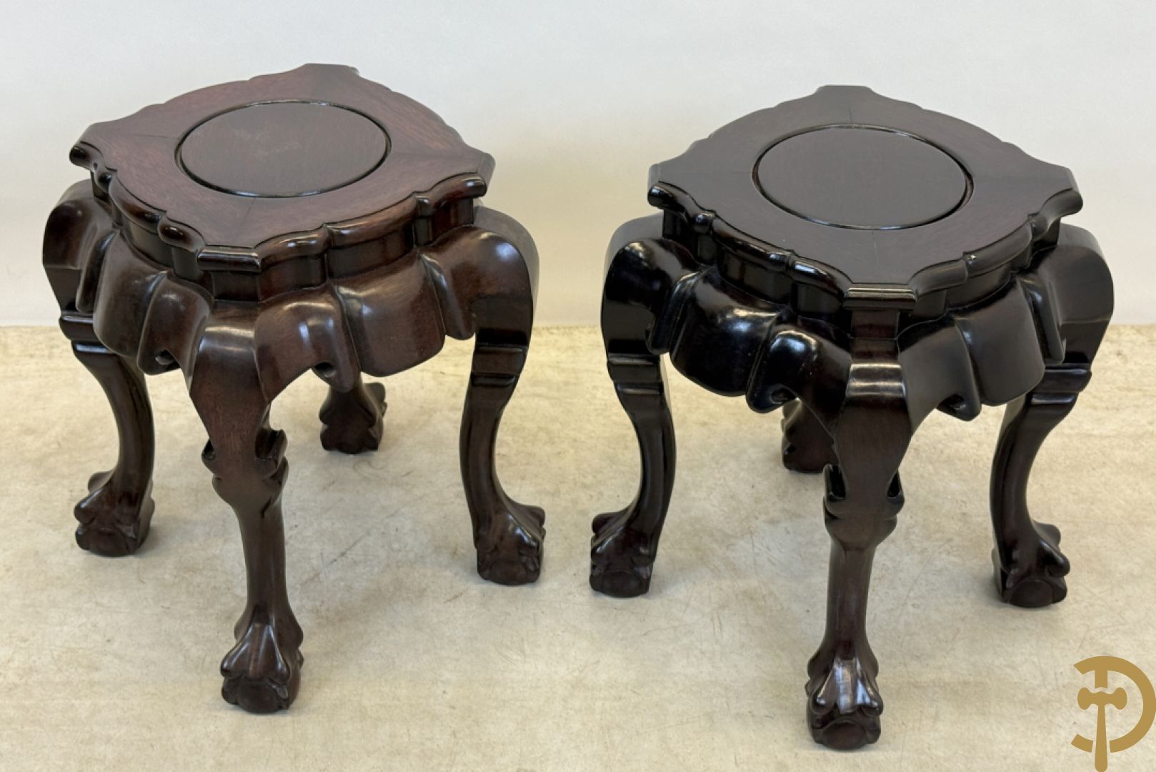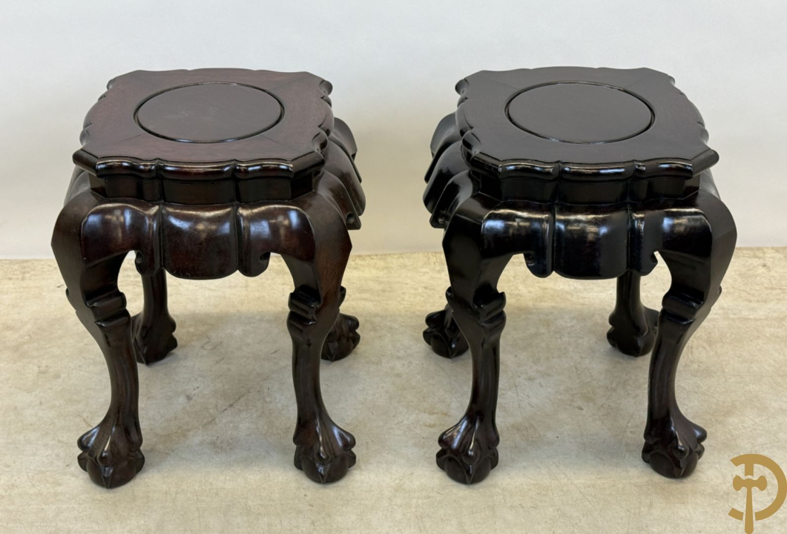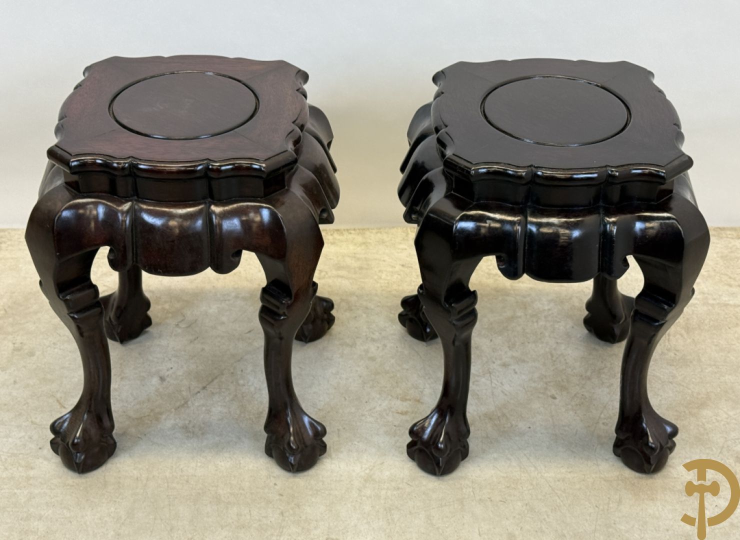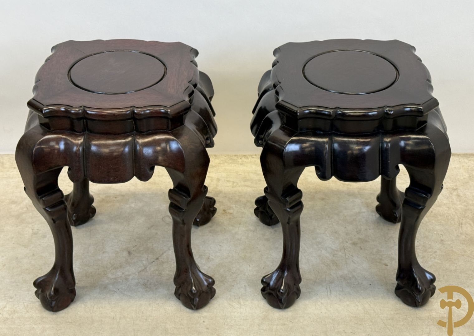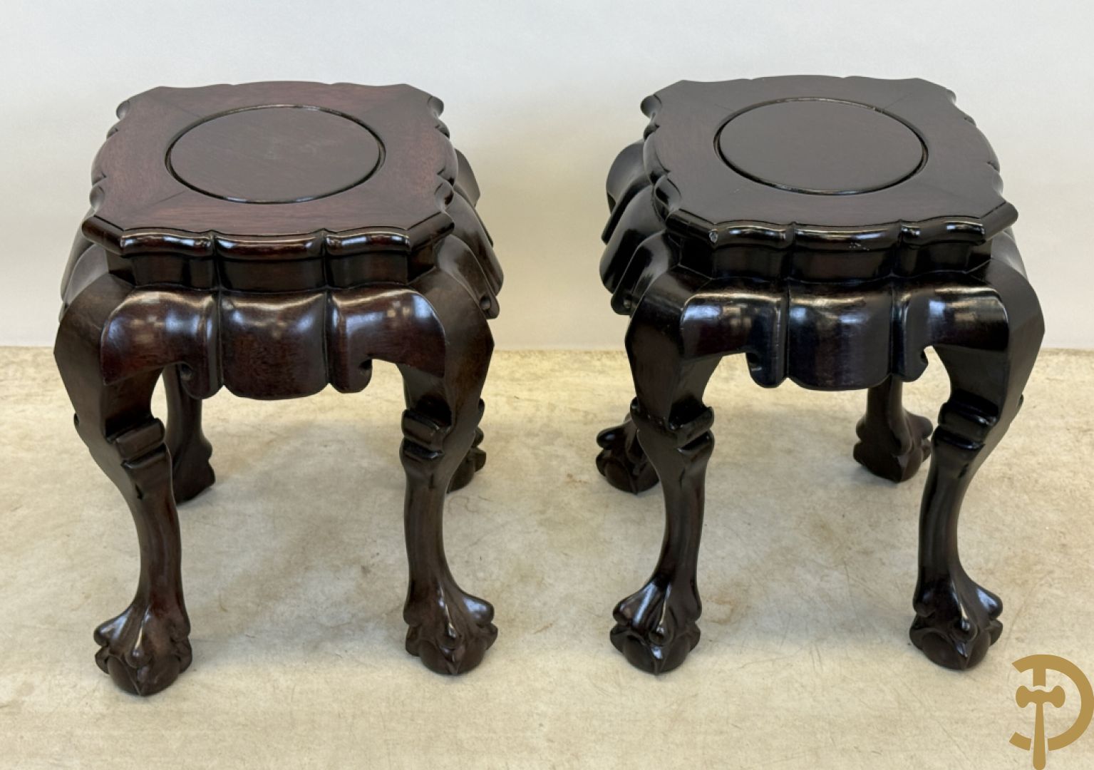 LOT 603 - Paar hardhouten Chinese sokkels op klauwepoten
