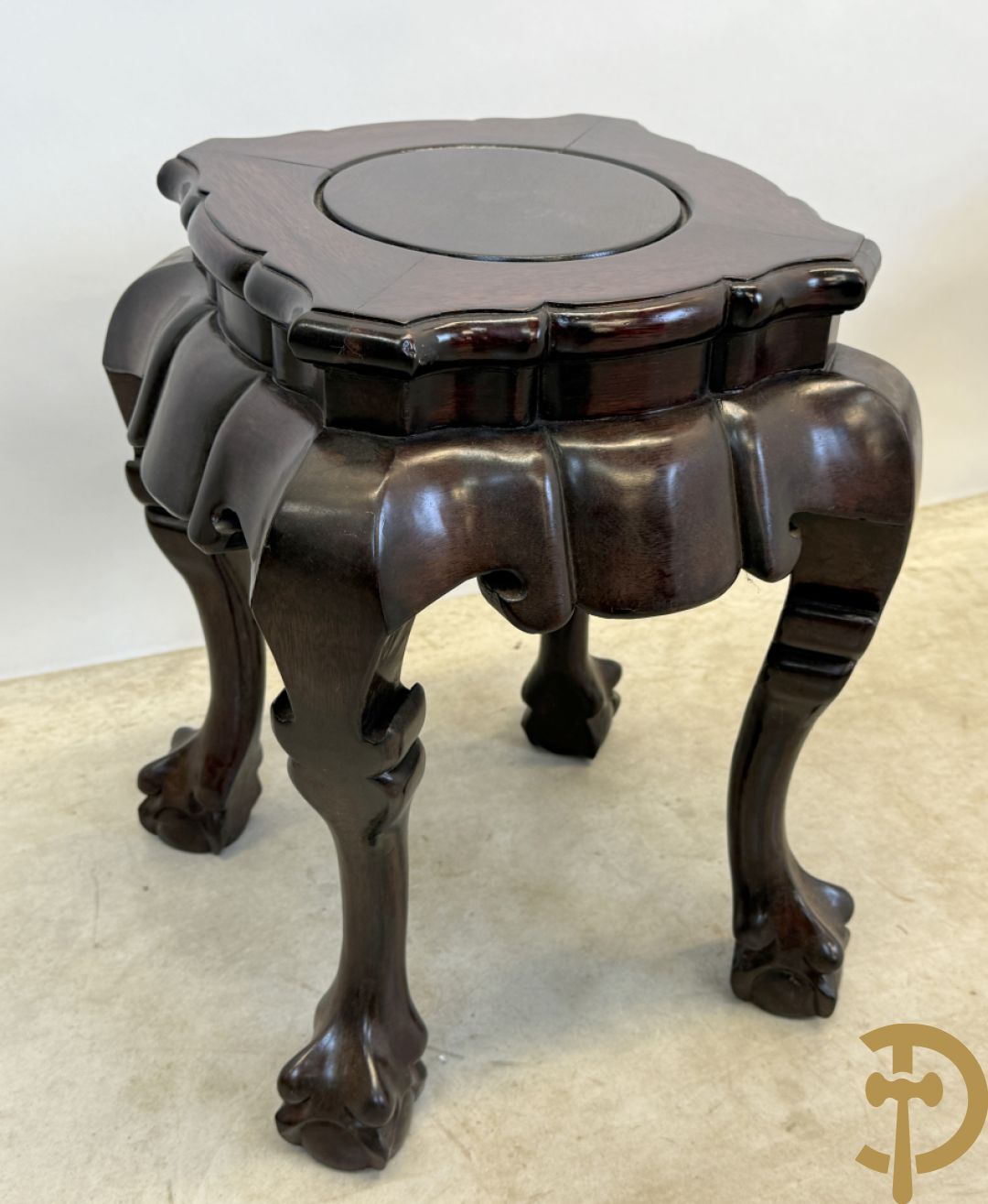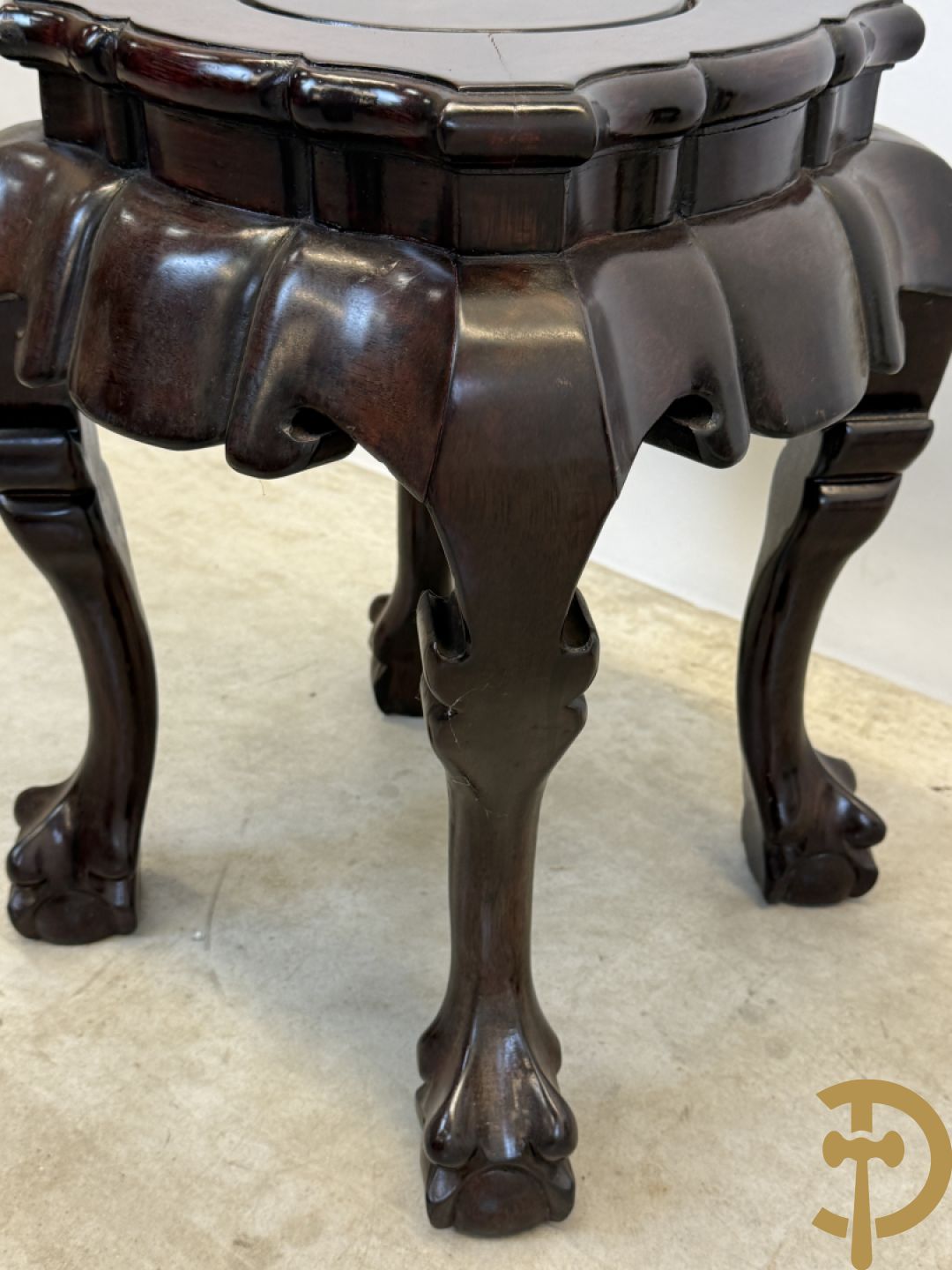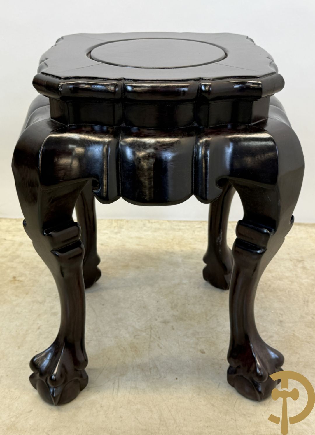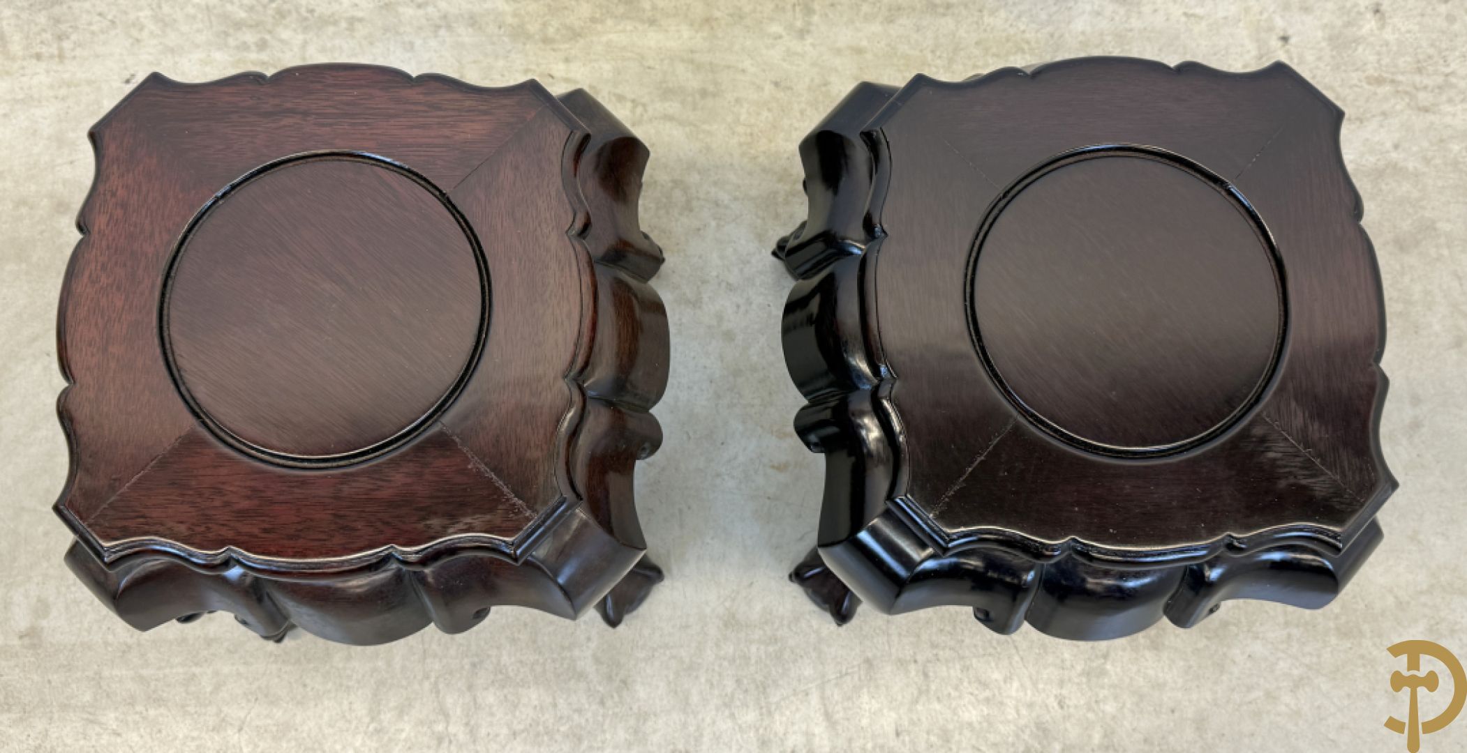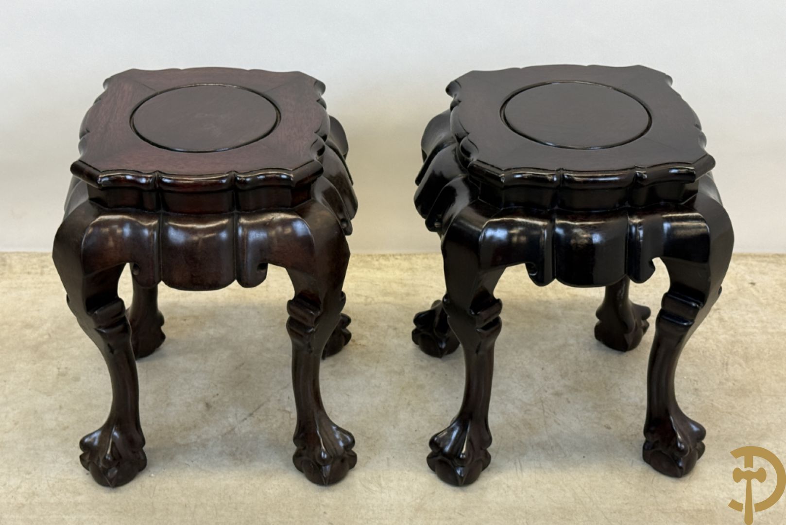 LOT 603 - Paar hardhouten Chinese sokkels op klauwepoten