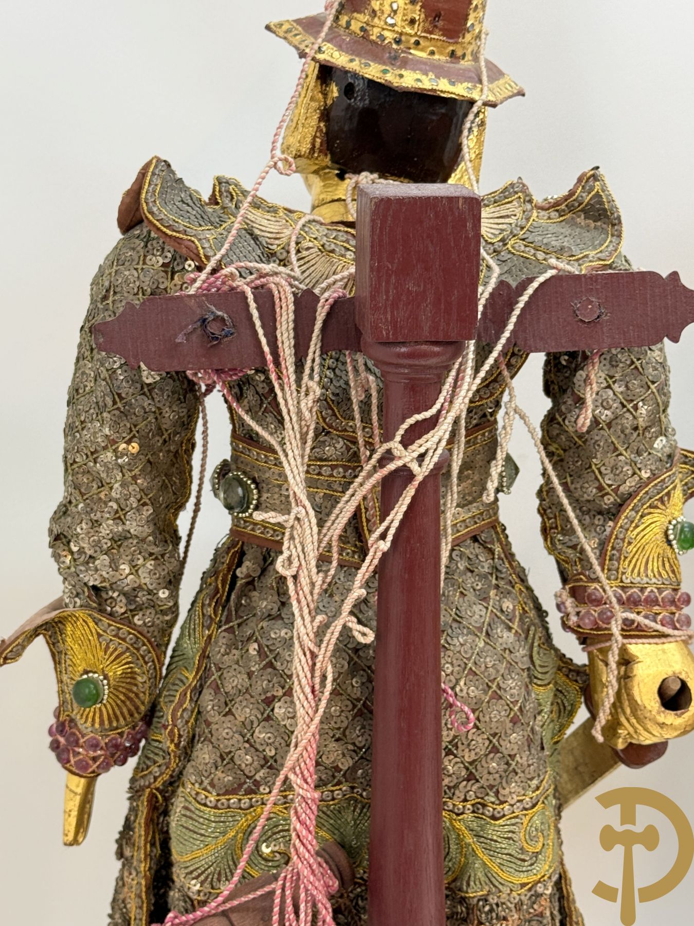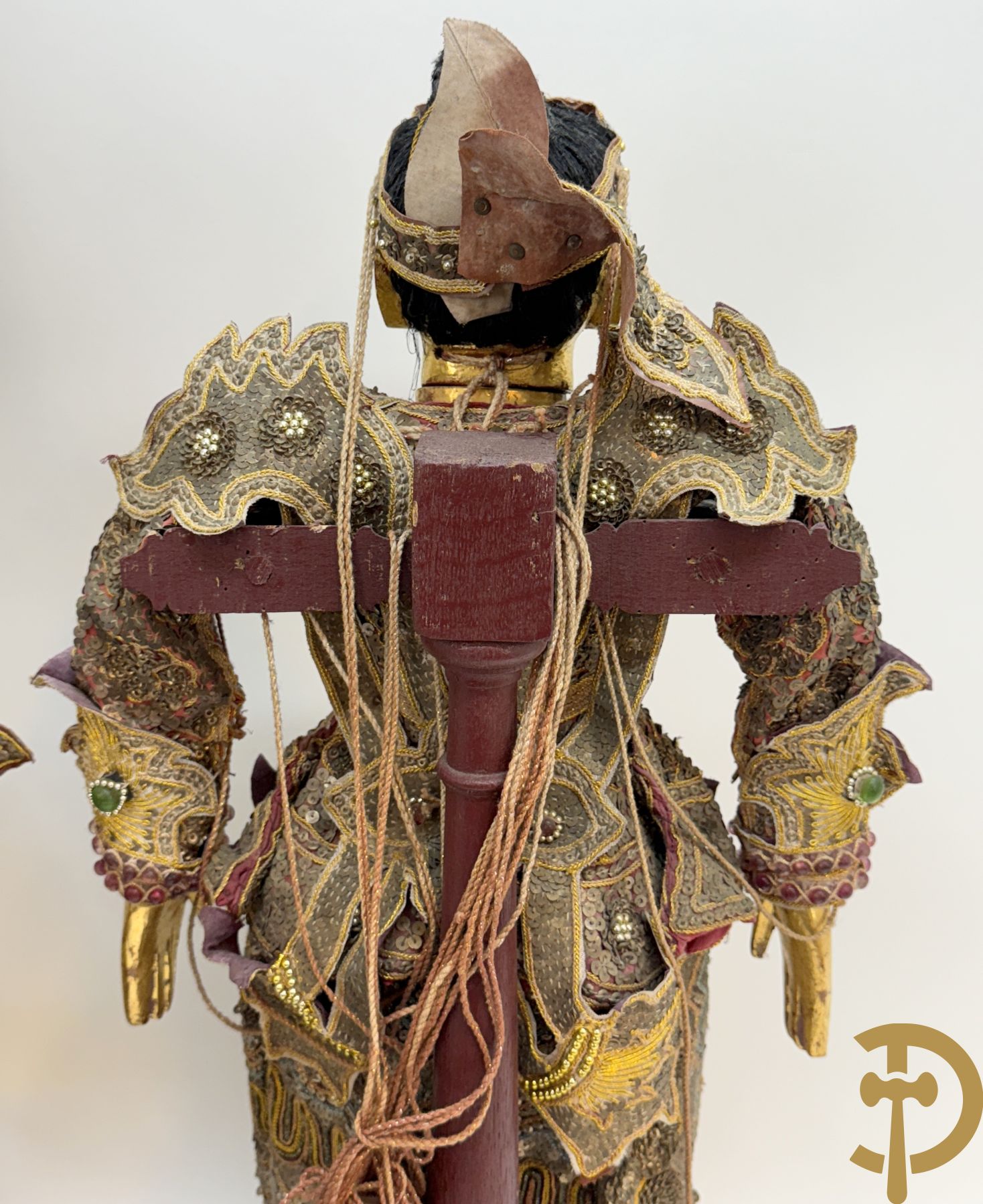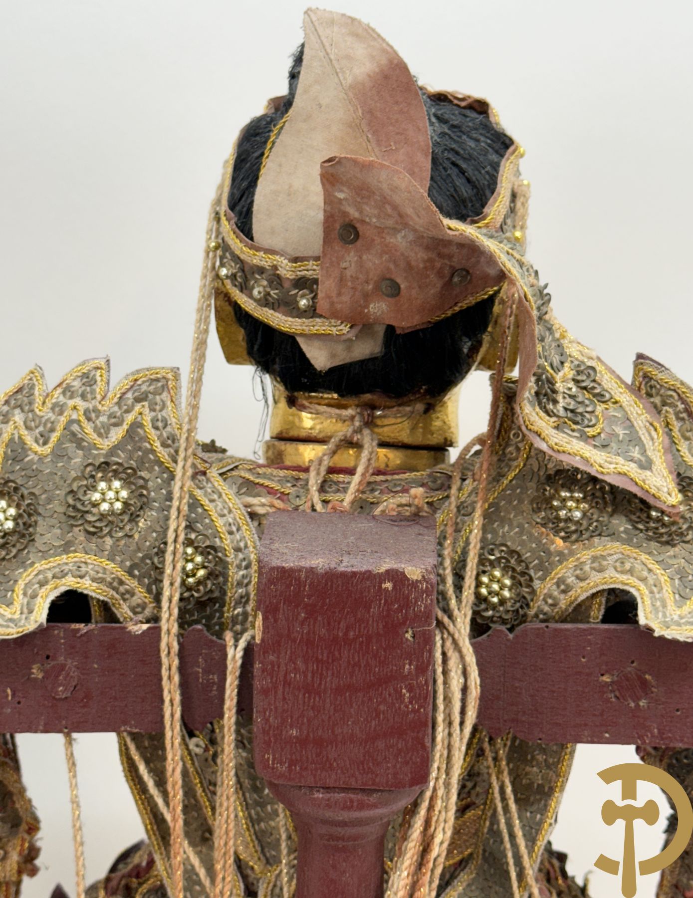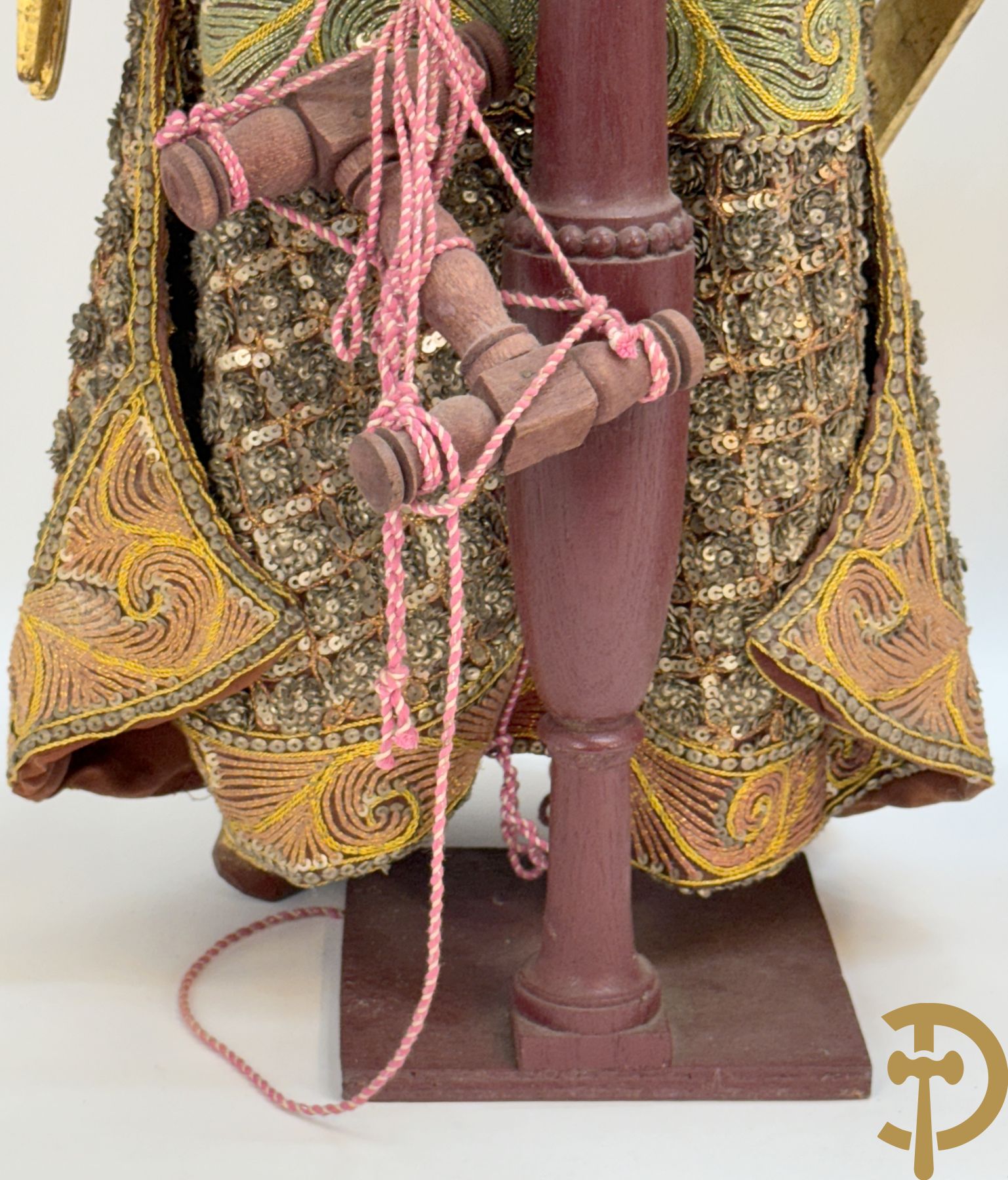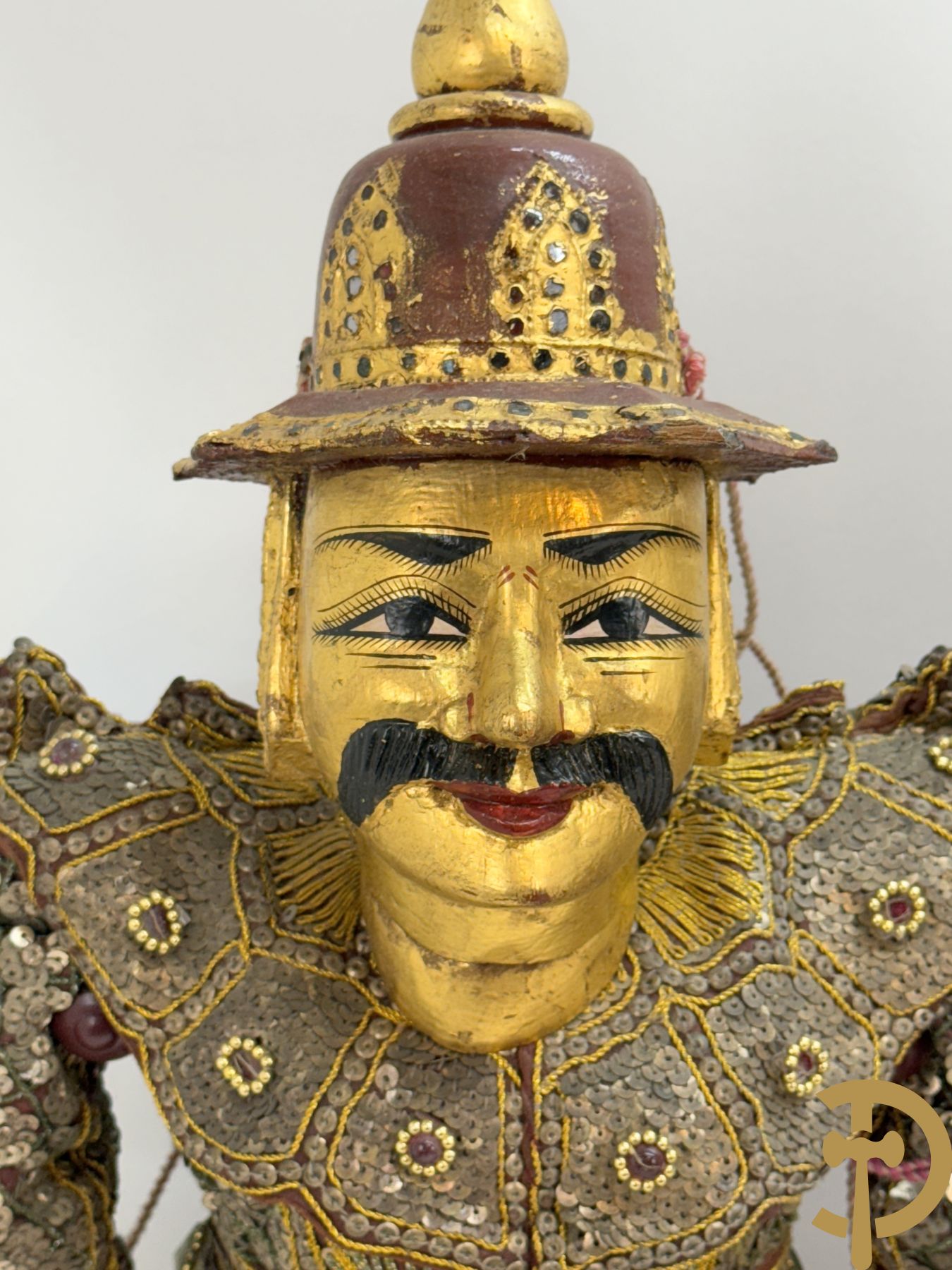 LOT 45 - Balinese kunst : groot gesculpteerd masker + 2 gepolychromeerde maskers + 2 houtgesculpteerde poppen met fijne klederdracht