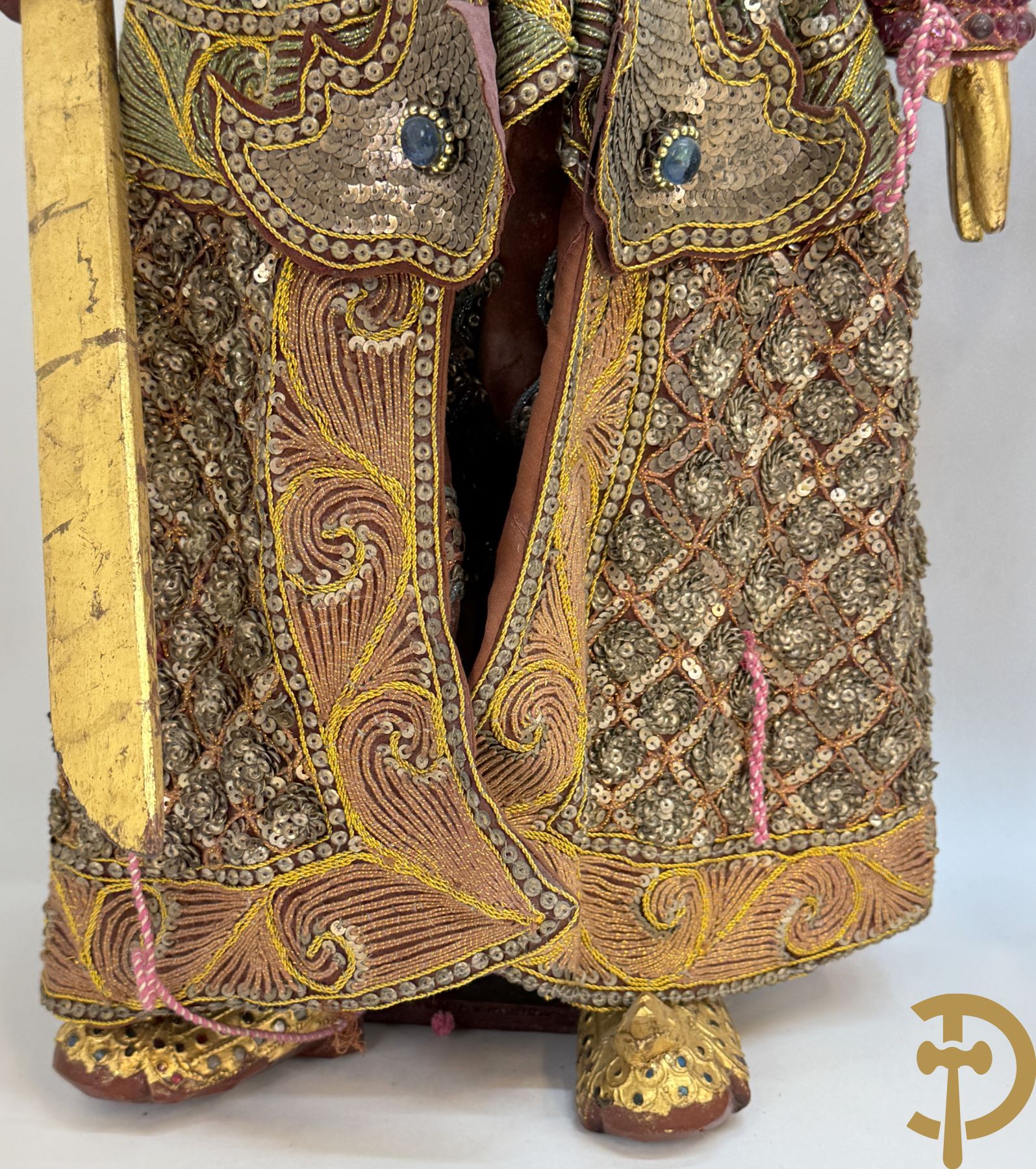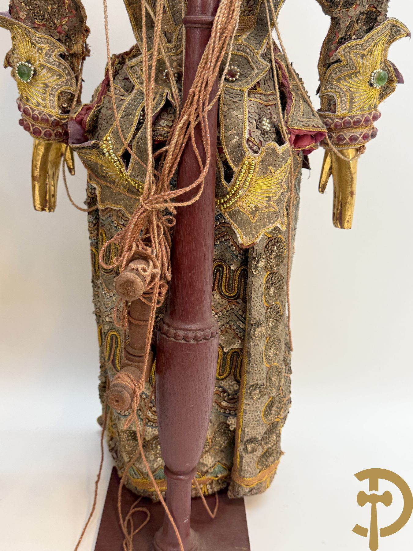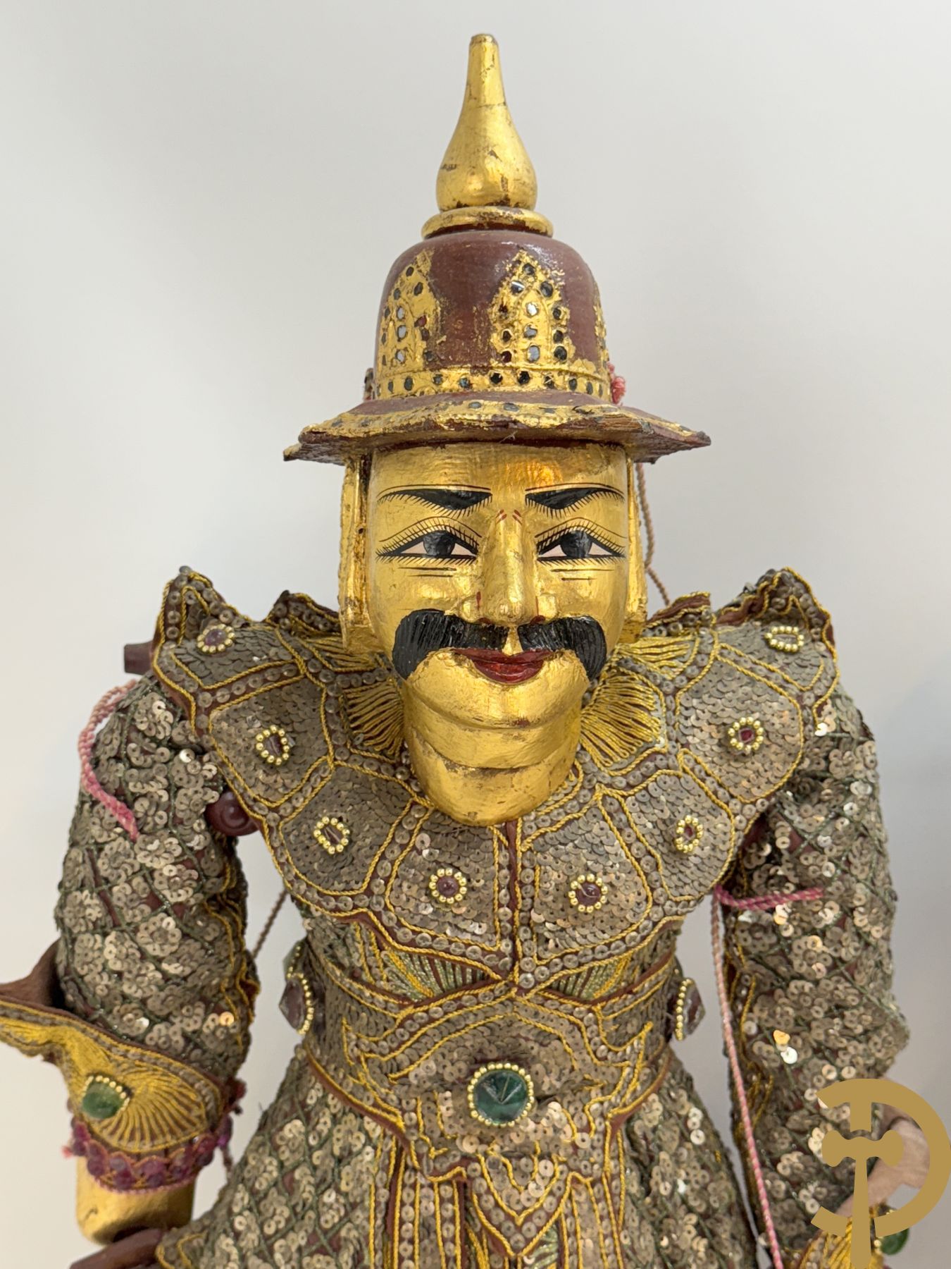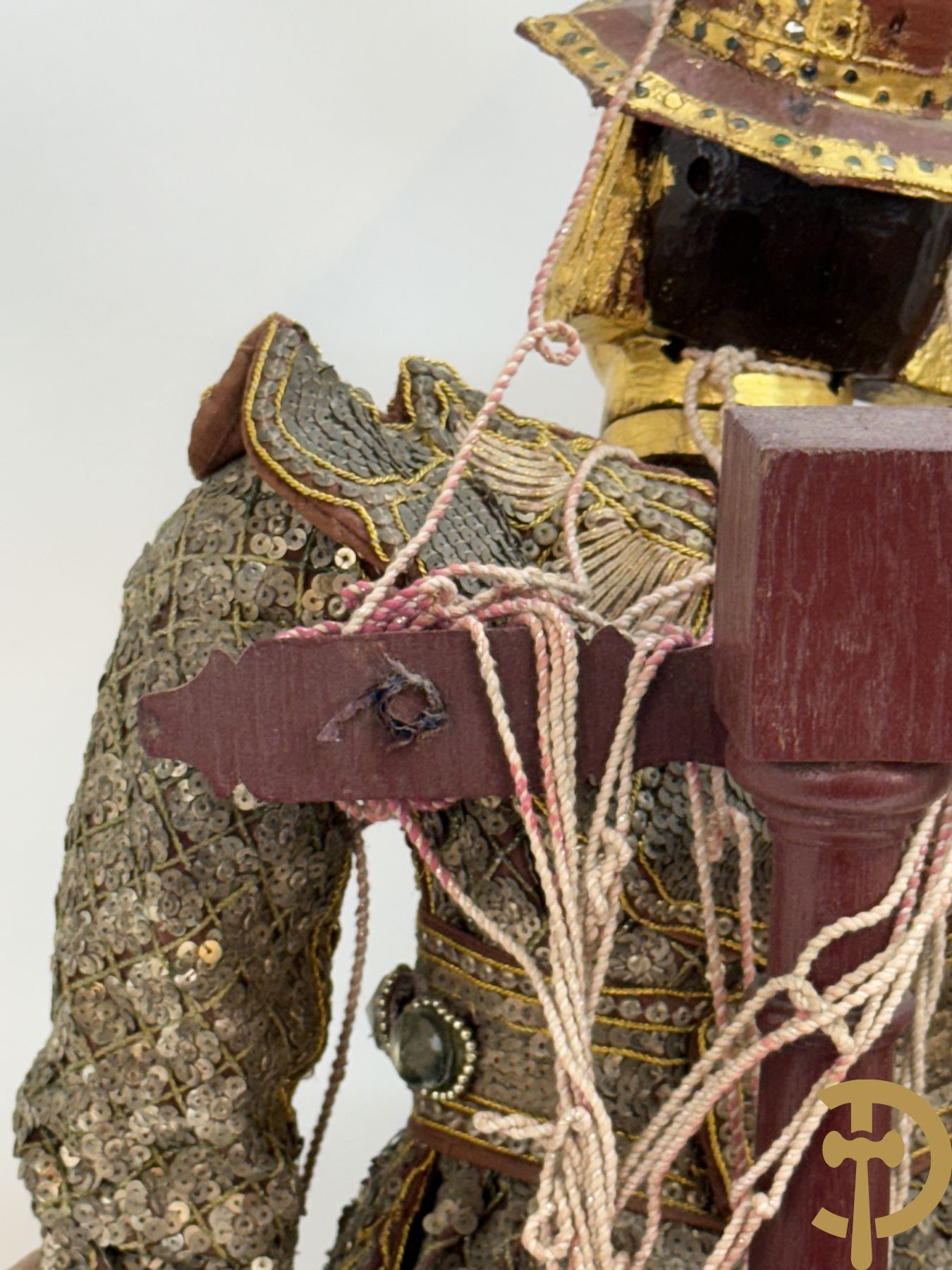 LOT 45 - Balinese kunst : groot gesculpteerd masker + 2 gepolychromeerde maskers + 2 houtgesculpteerde poppen met fijne klederdracht