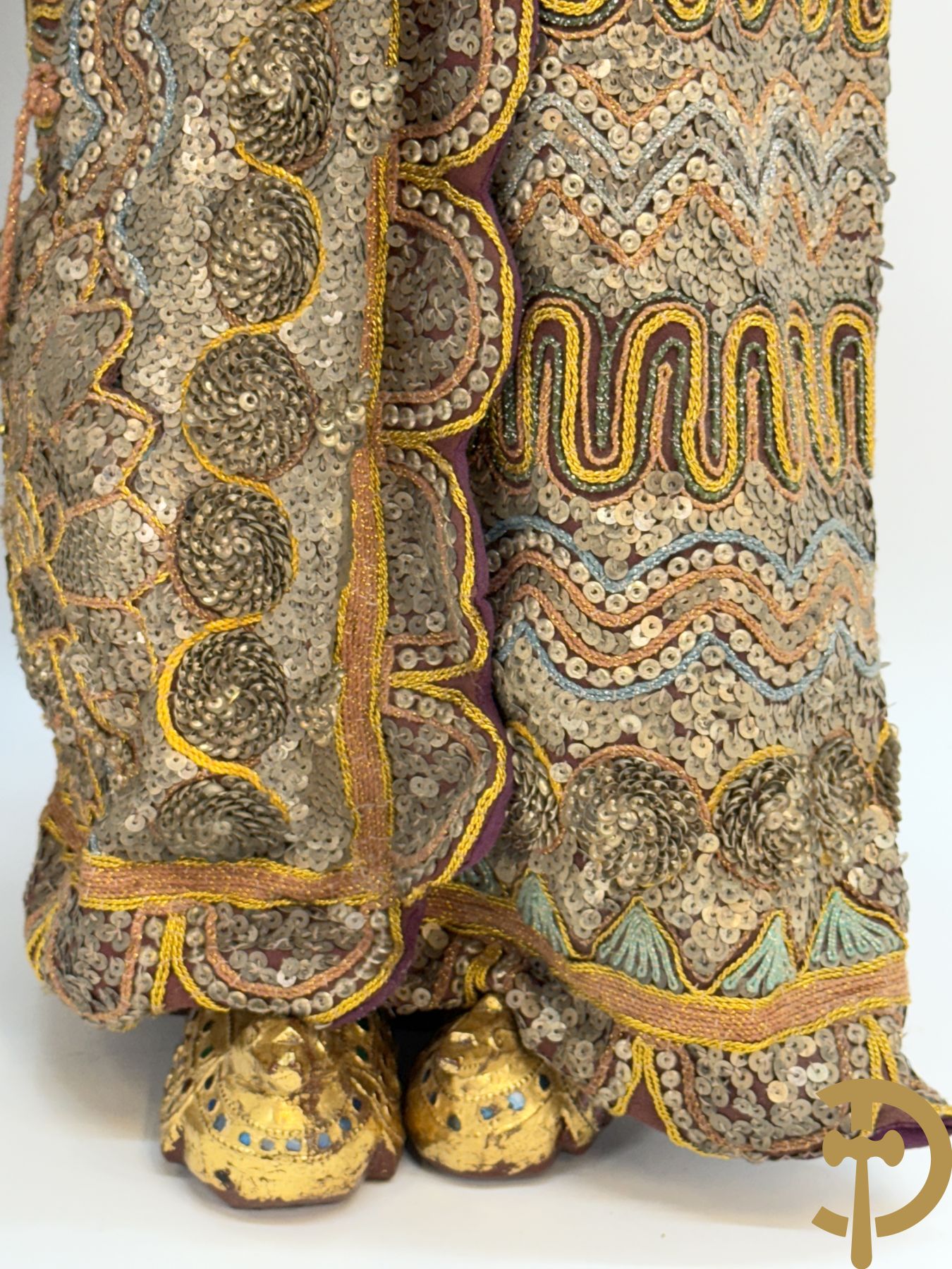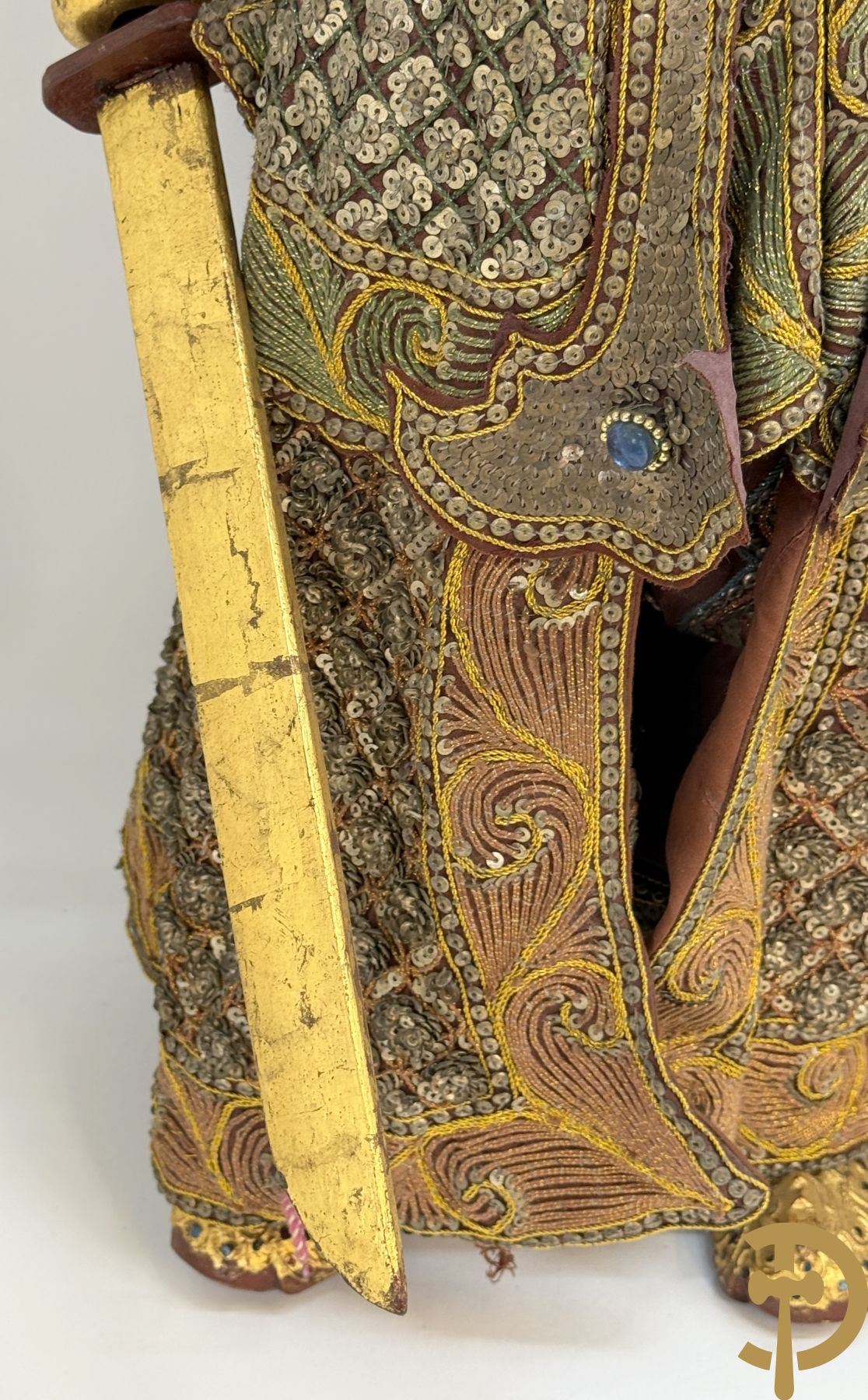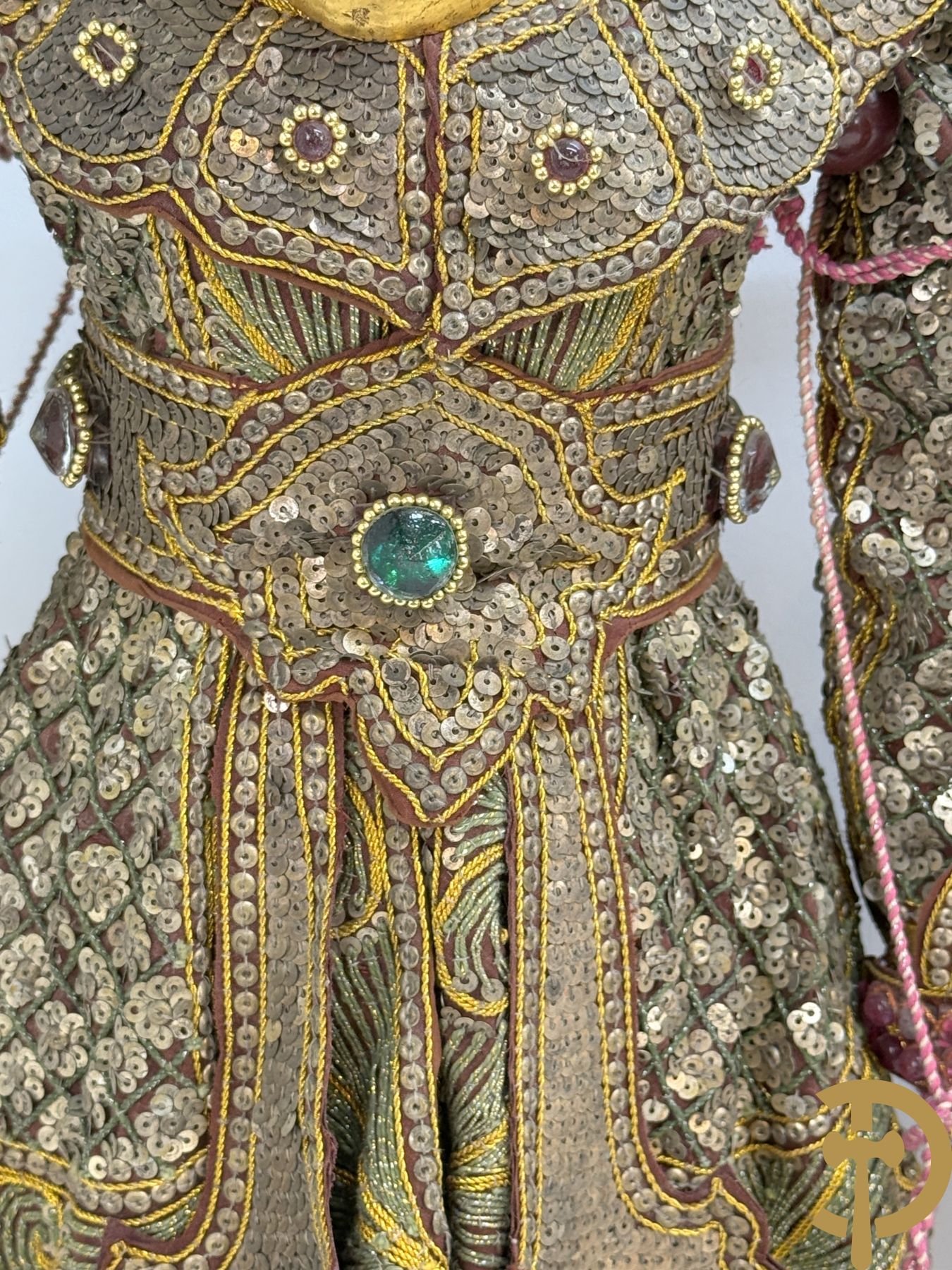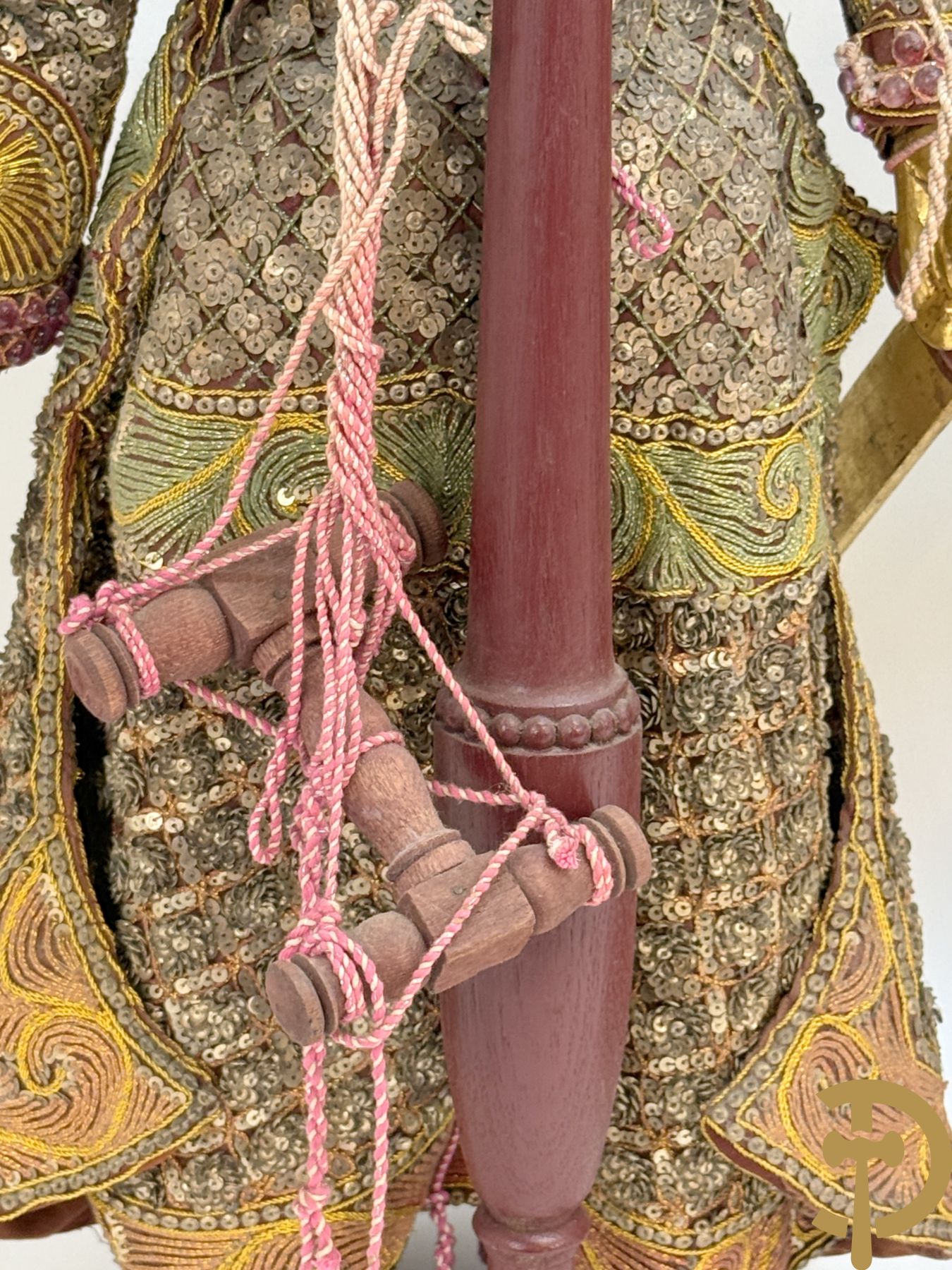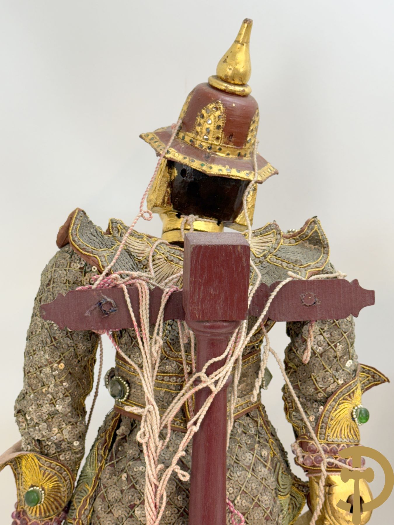 LOT 45 - Balinese kunst : groot gesculpteerd masker + 2 gepolychromeerde maskers + 2 houtgesculpteerde poppen met fijne klederdracht