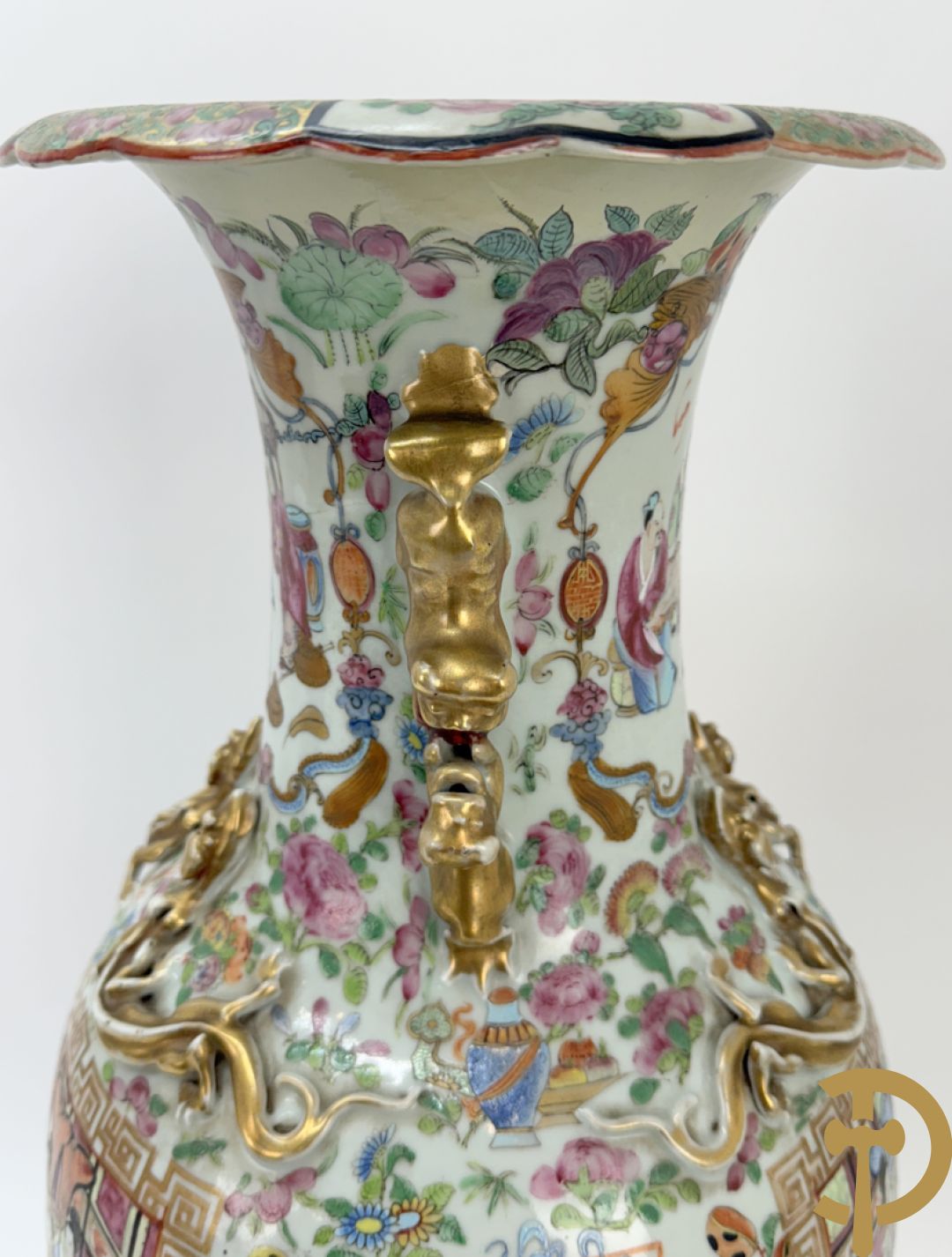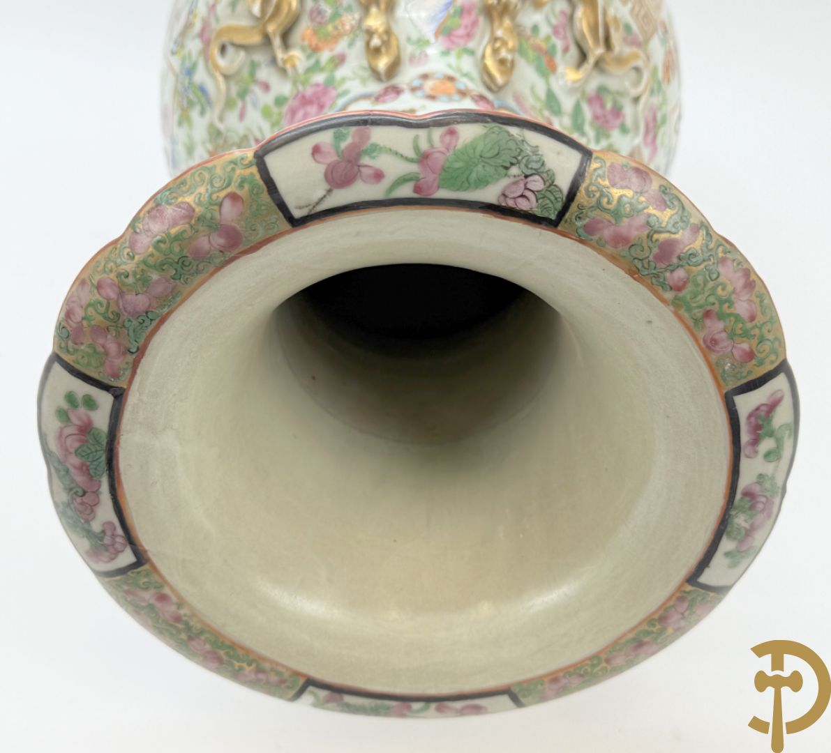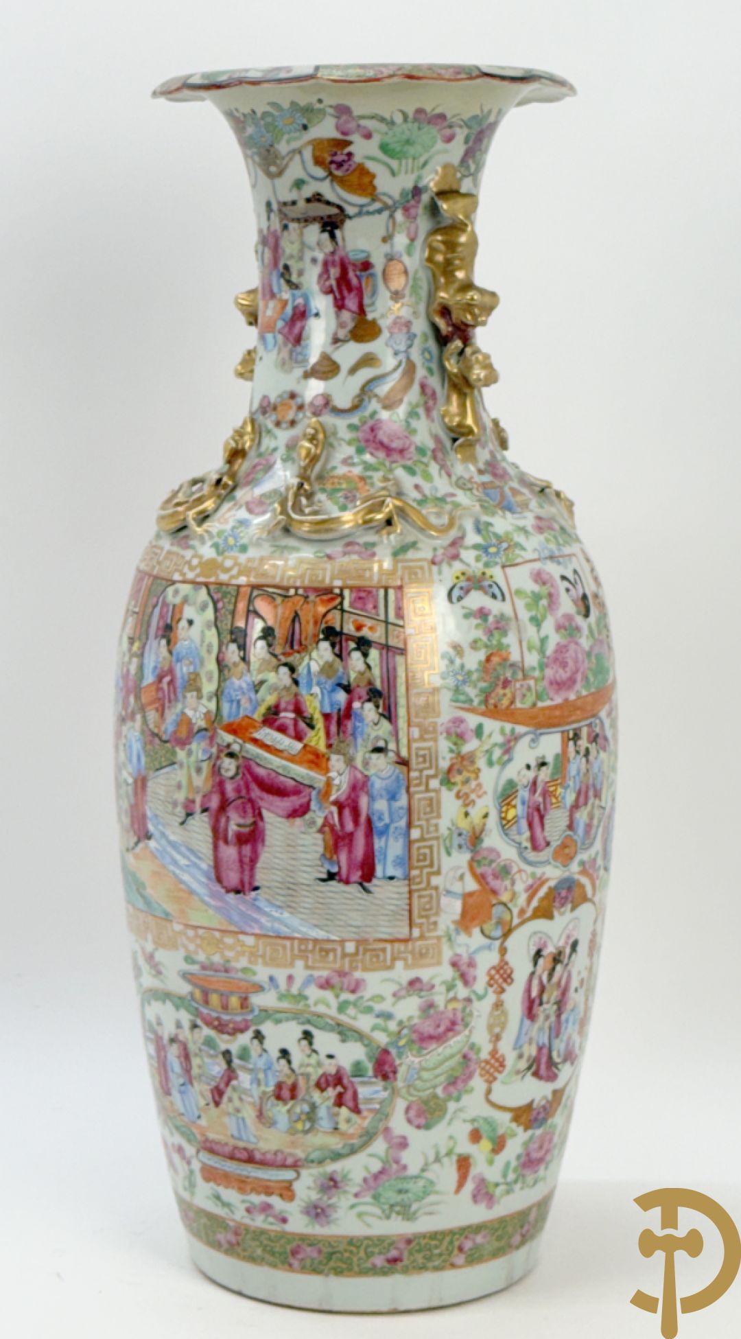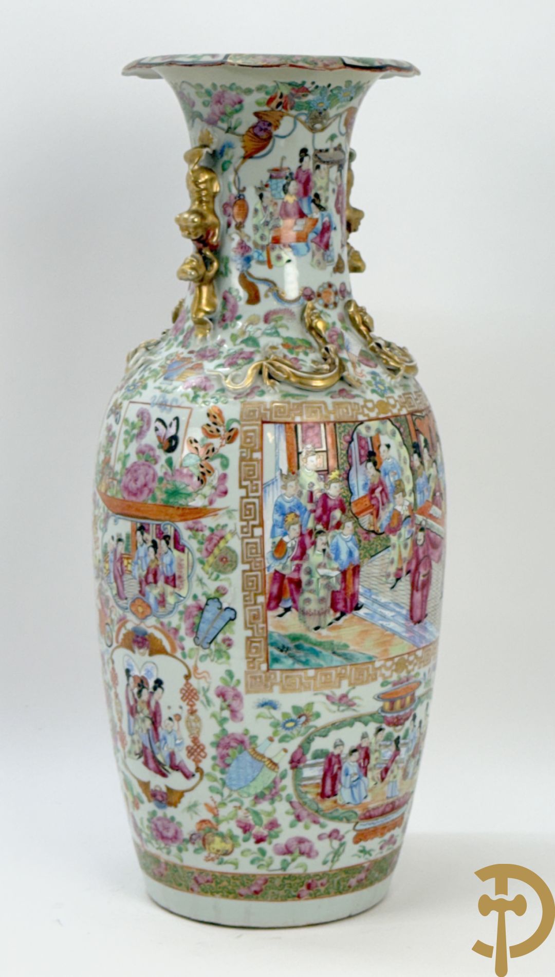 LOT 10 - Chinese porseleinen Kanton vaas met geanimeerde hoftaferelen, natuurmotieven, fauna en floradecor