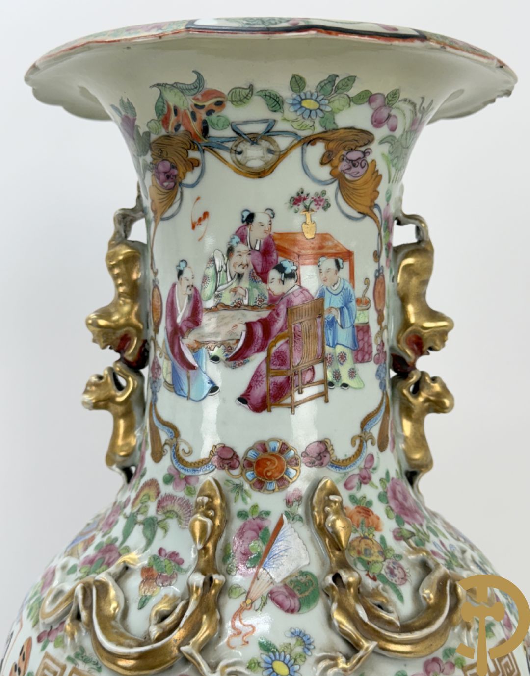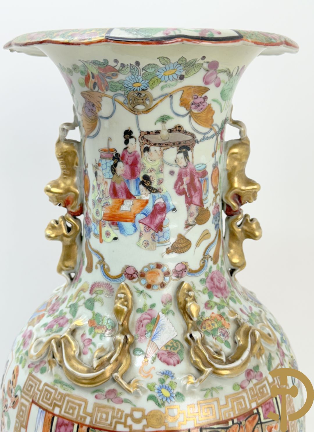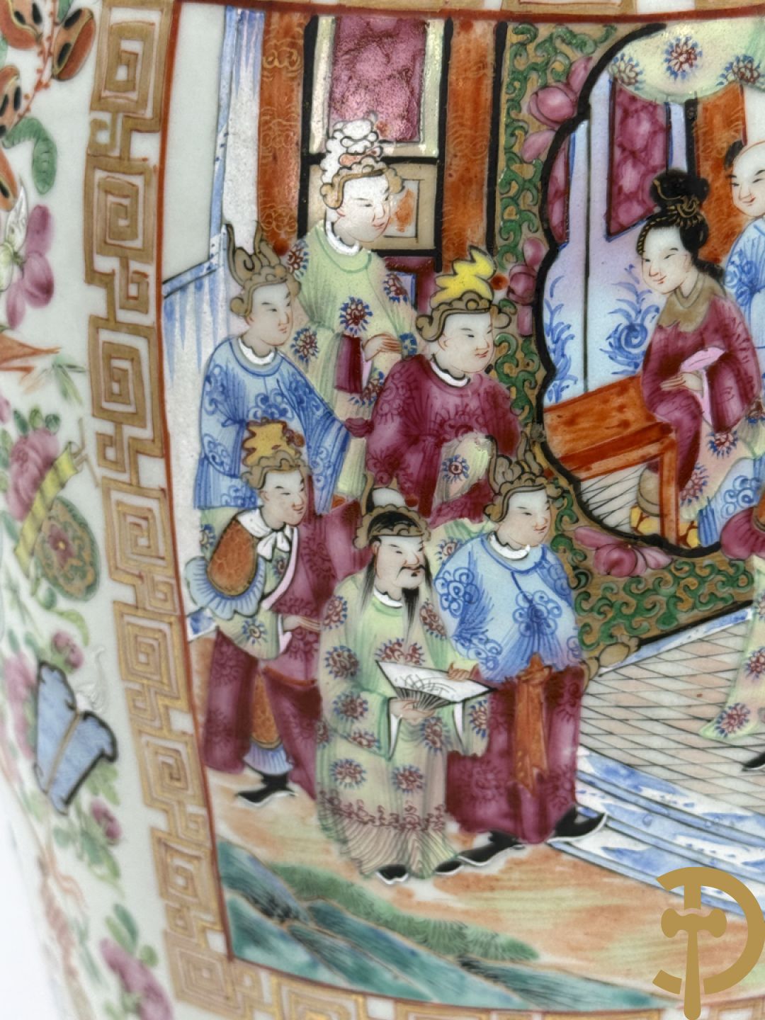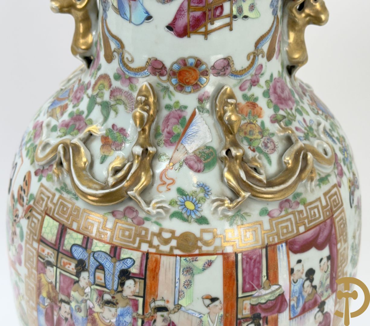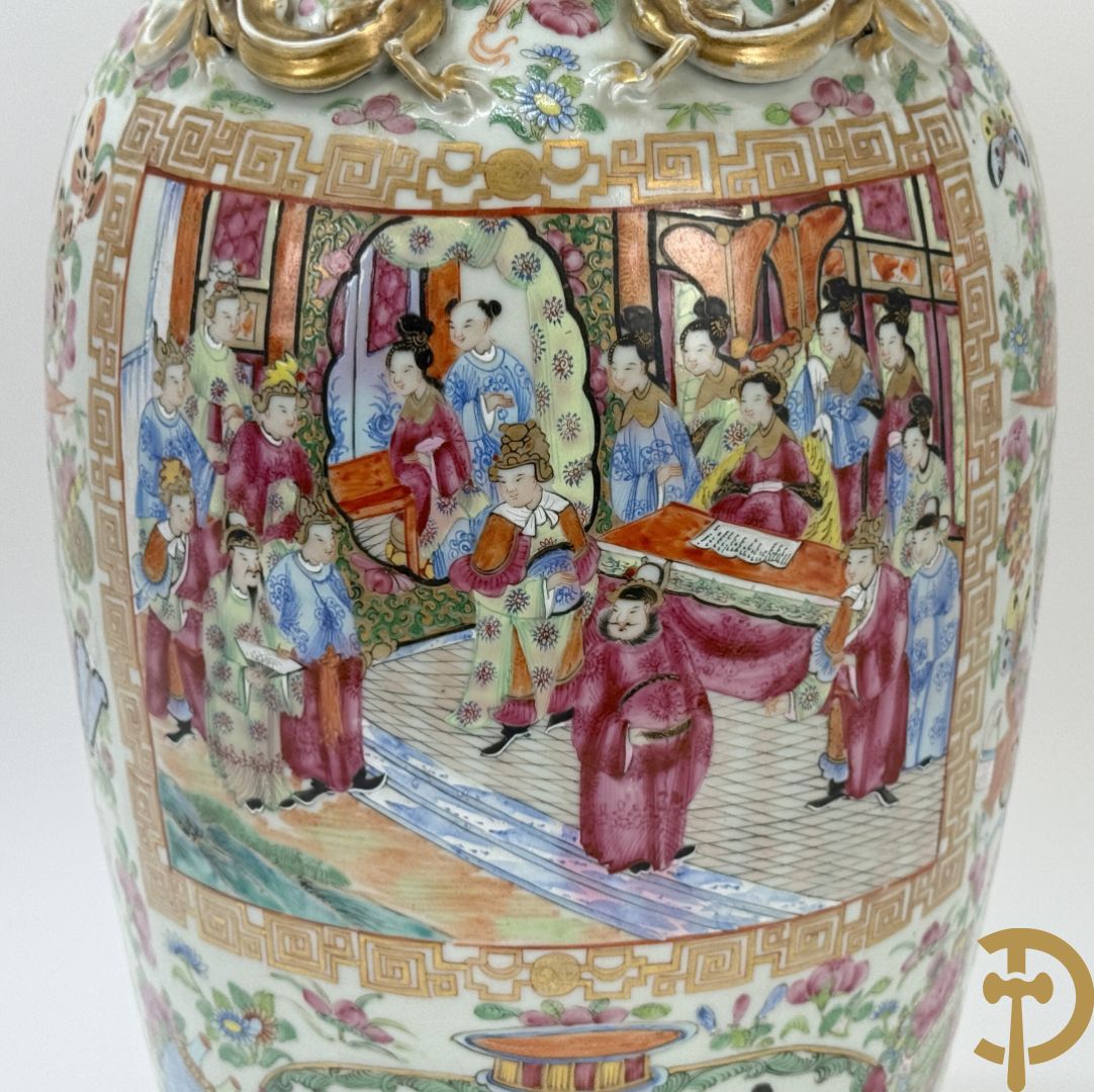 LOT 10 - Chinese porseleinen Kanton vaas met geanimeerde hoftaferelen, natuurmotieven, fauna en floradecor