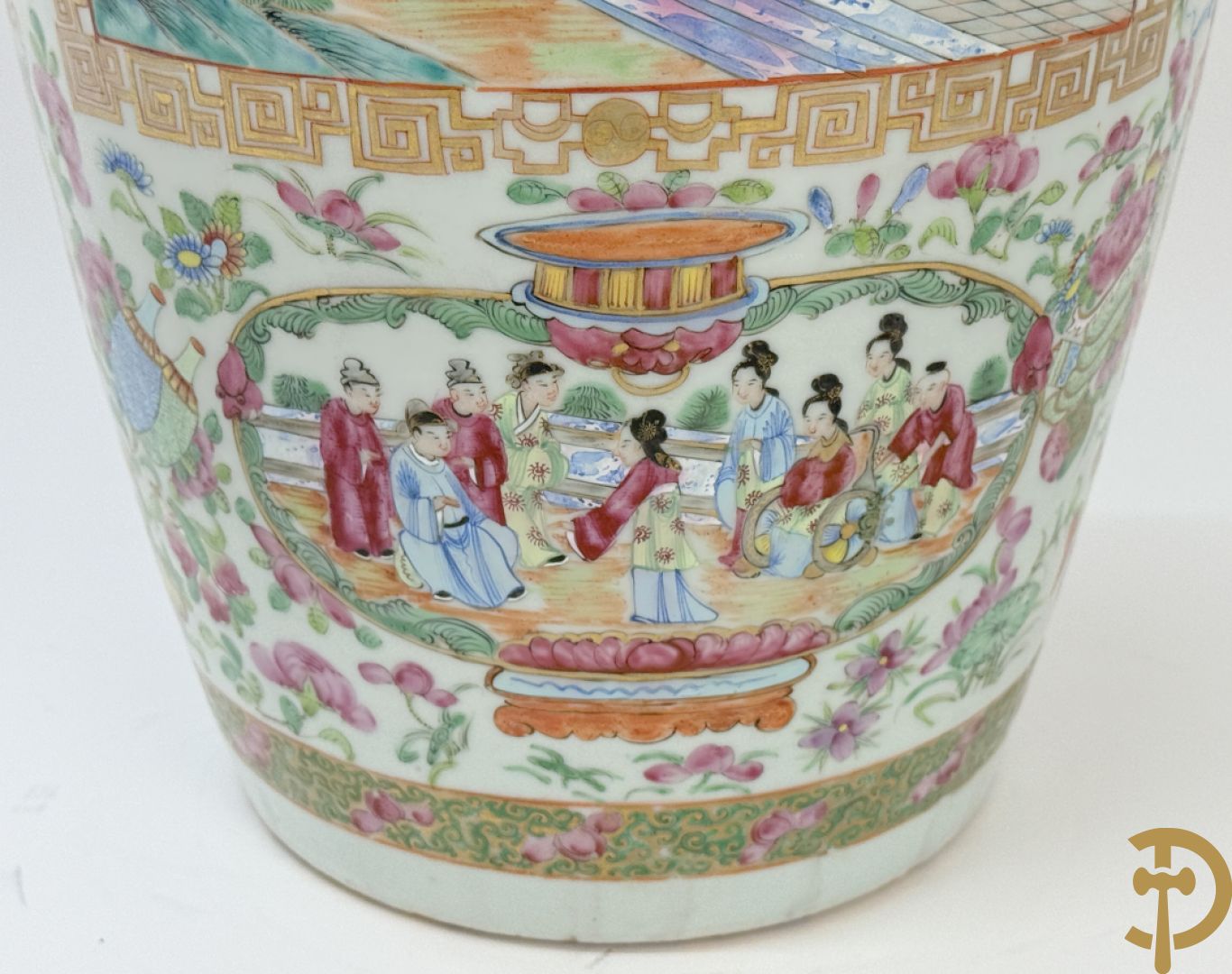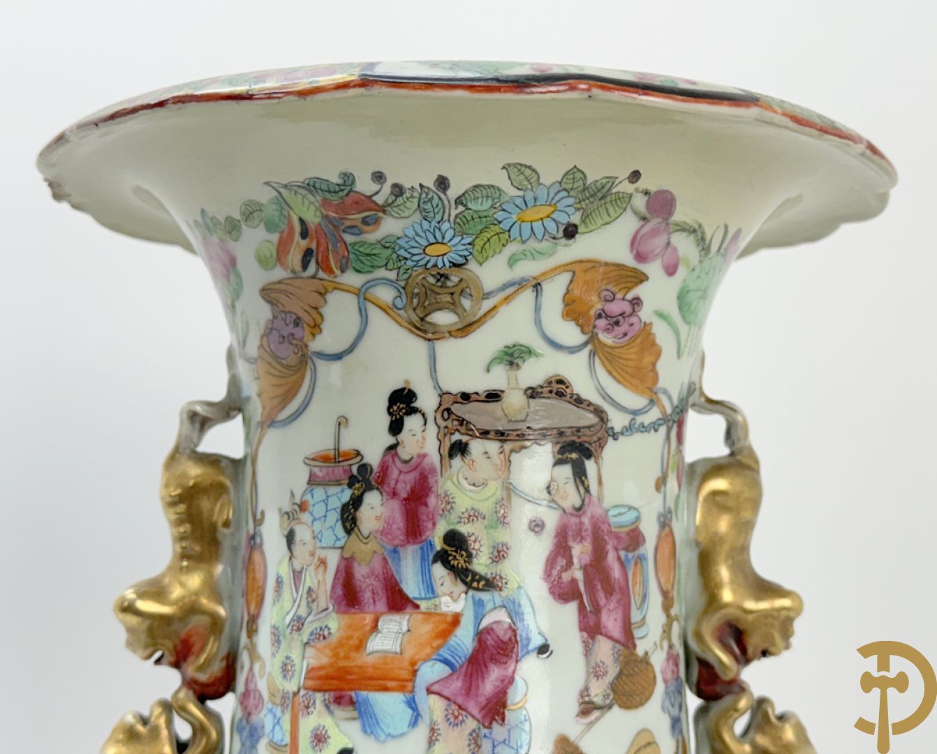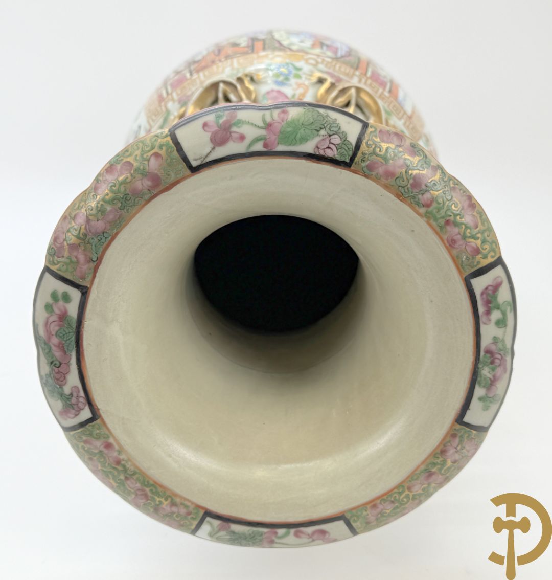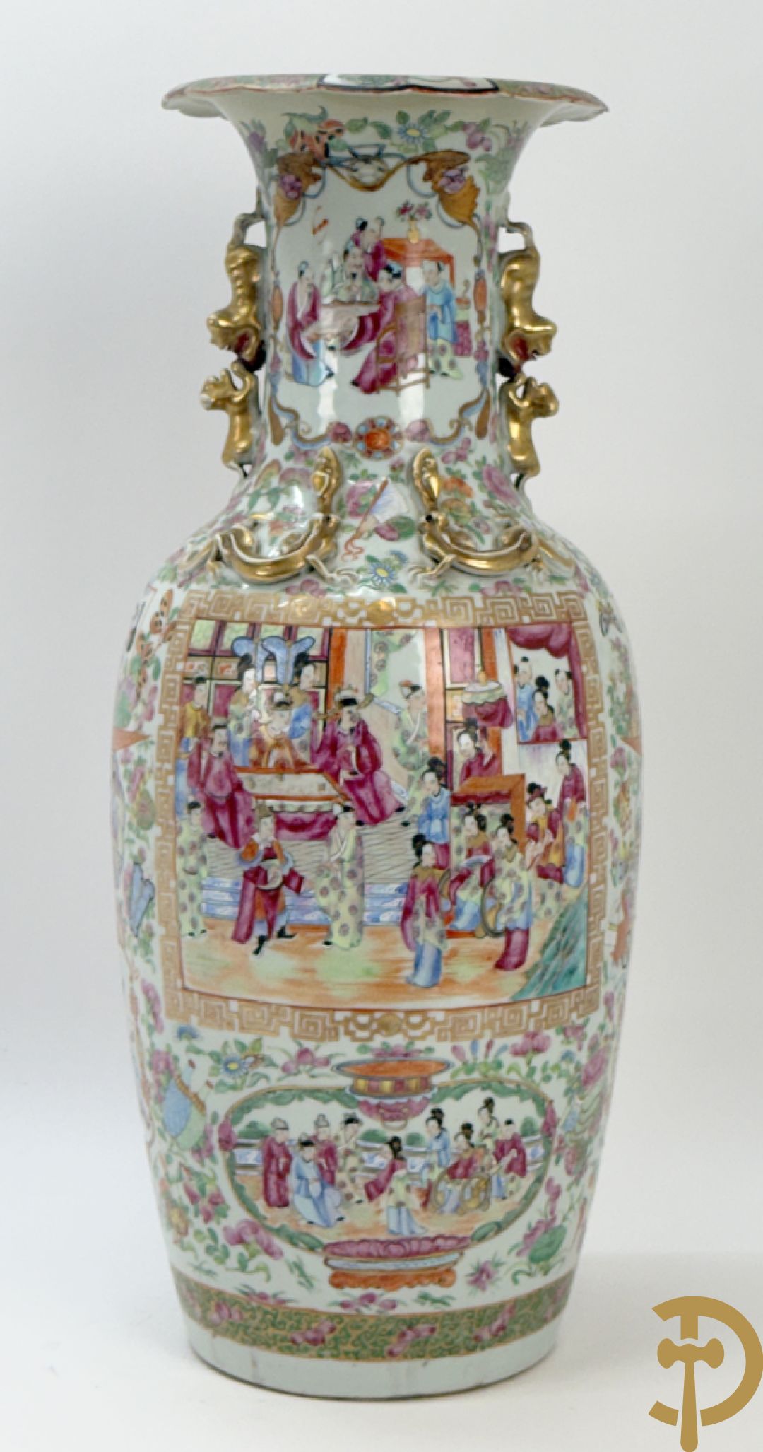 LOT 10 - Chinese porseleinen Kanton vaas met geanimeerde hoftaferelen, natuurmotieven, fauna en floradecor