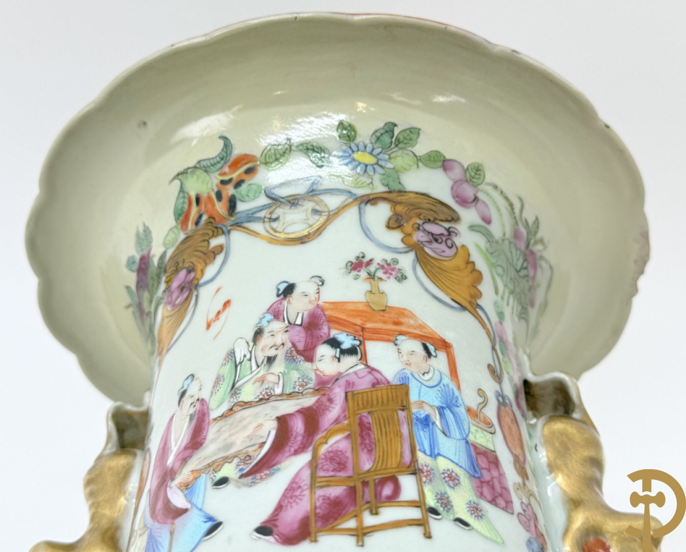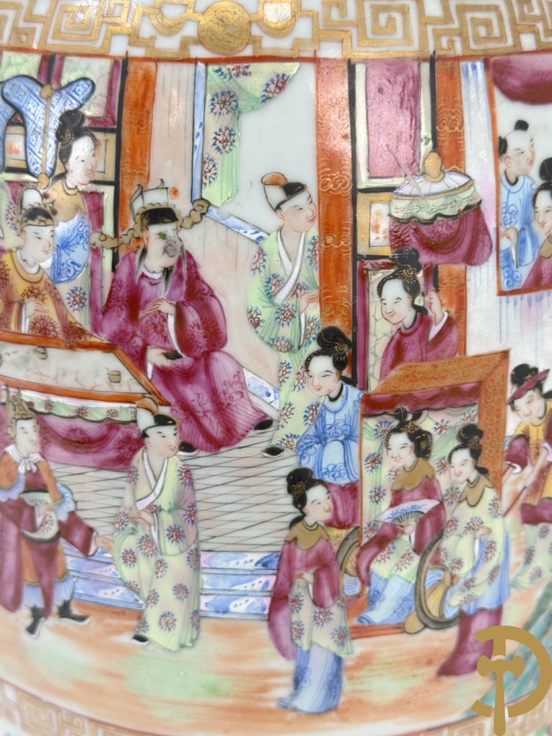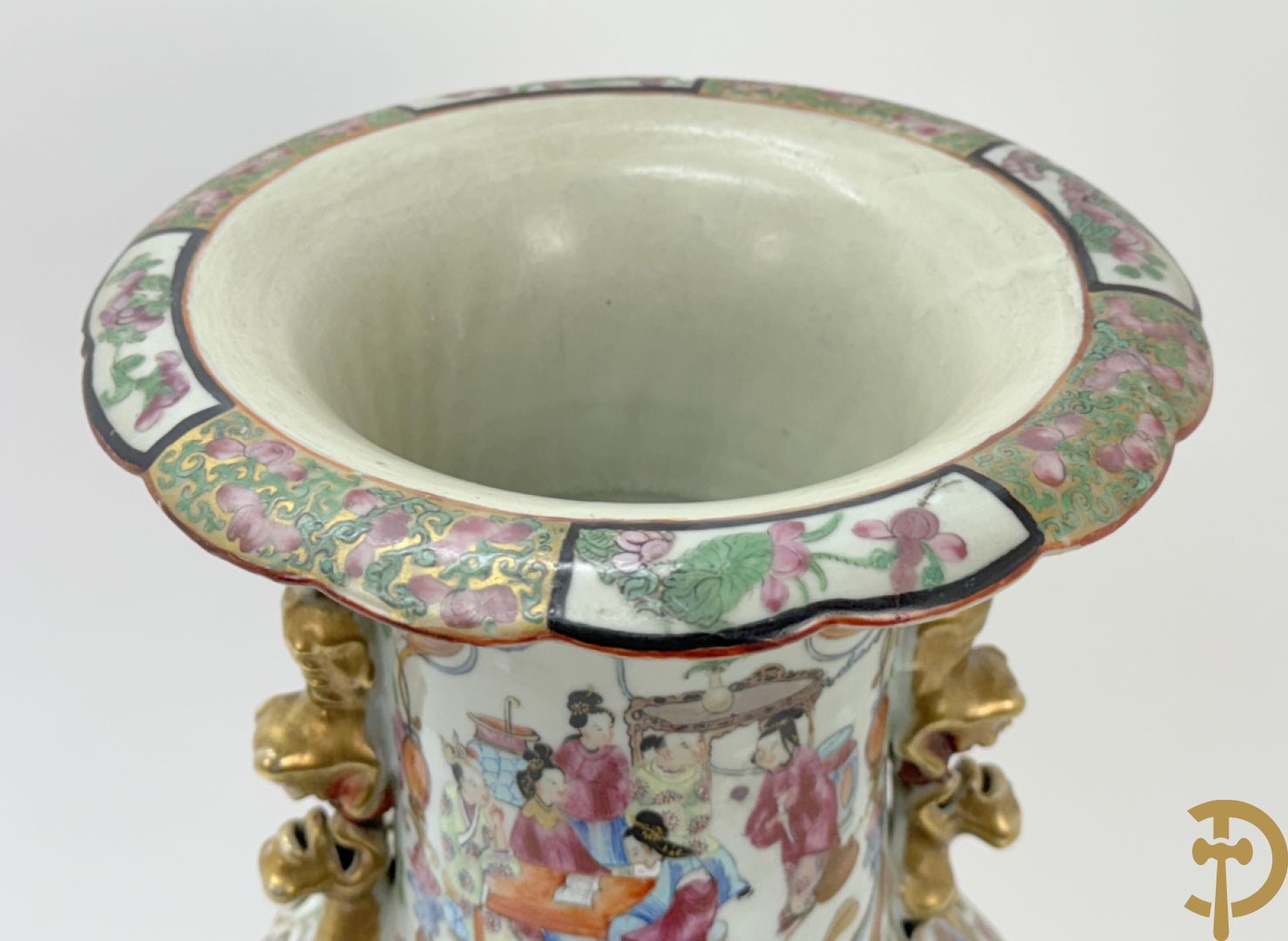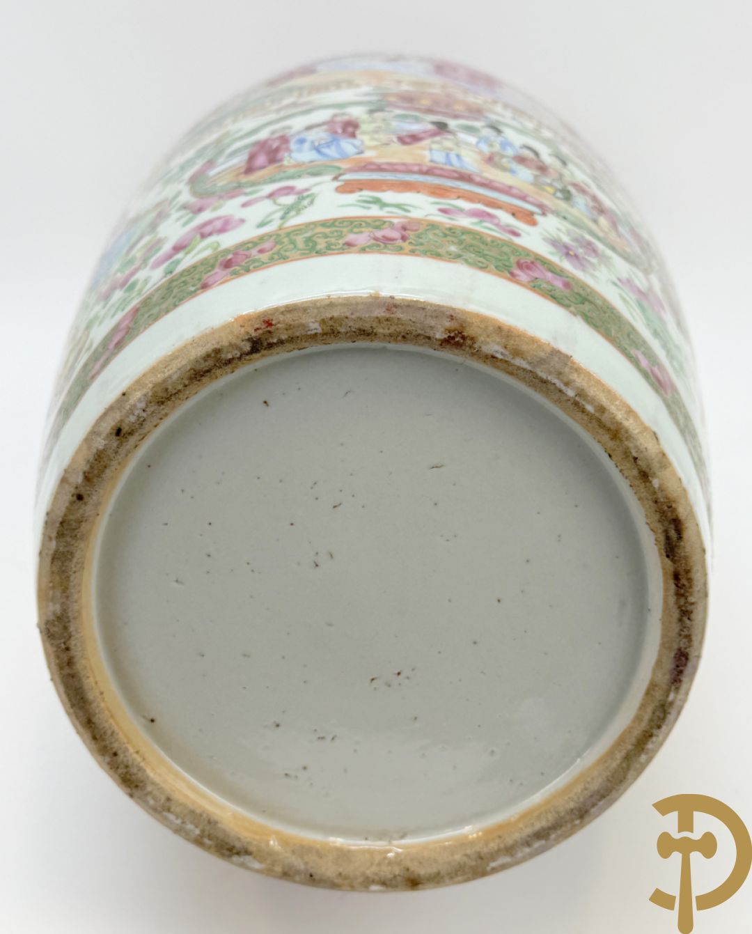 LOT 10 - Chinese porseleinen Kanton vaas met geanimeerde hoftaferelen, natuurmotieven, fauna en floradecor