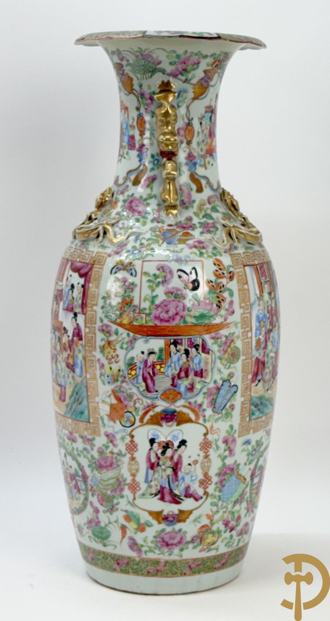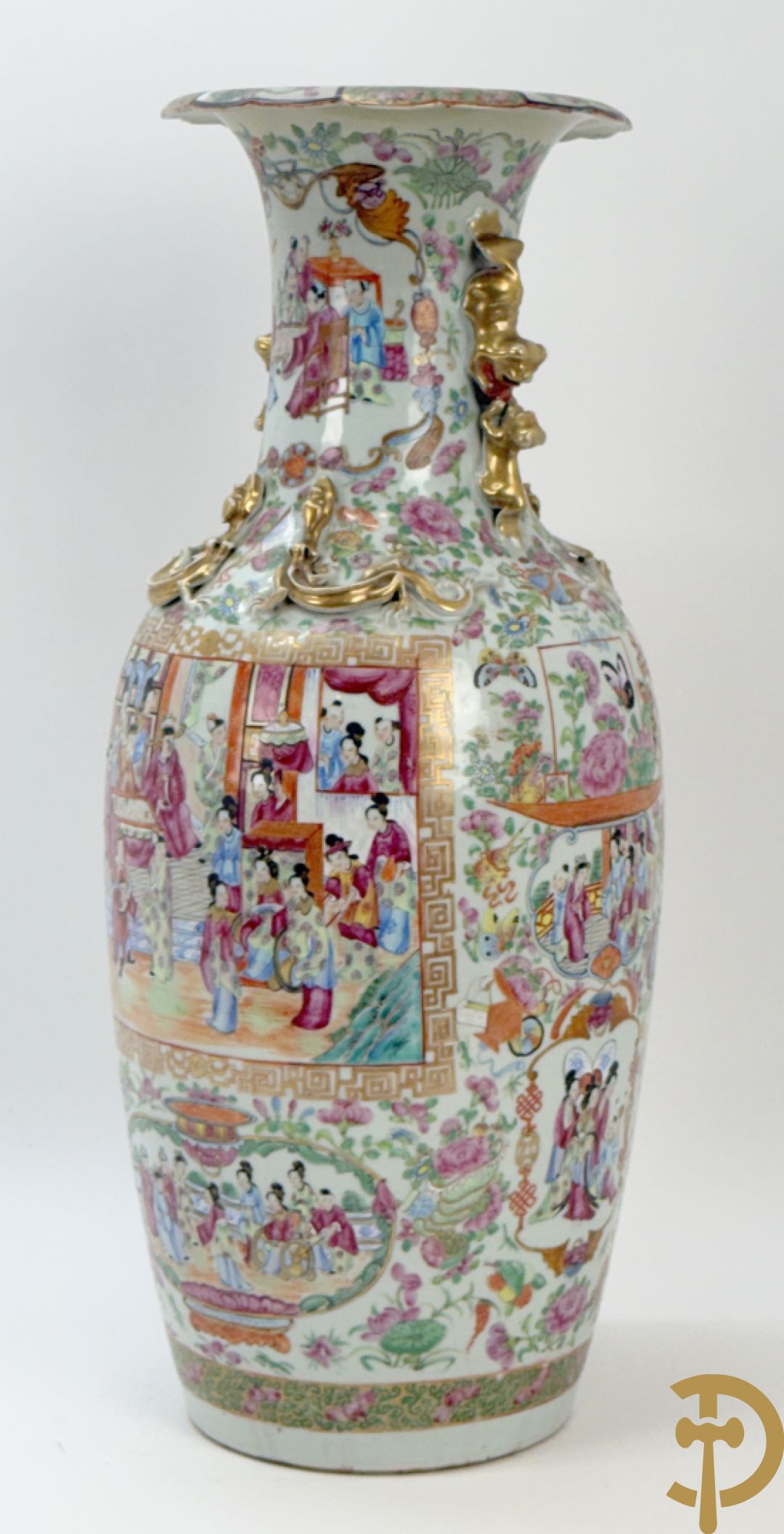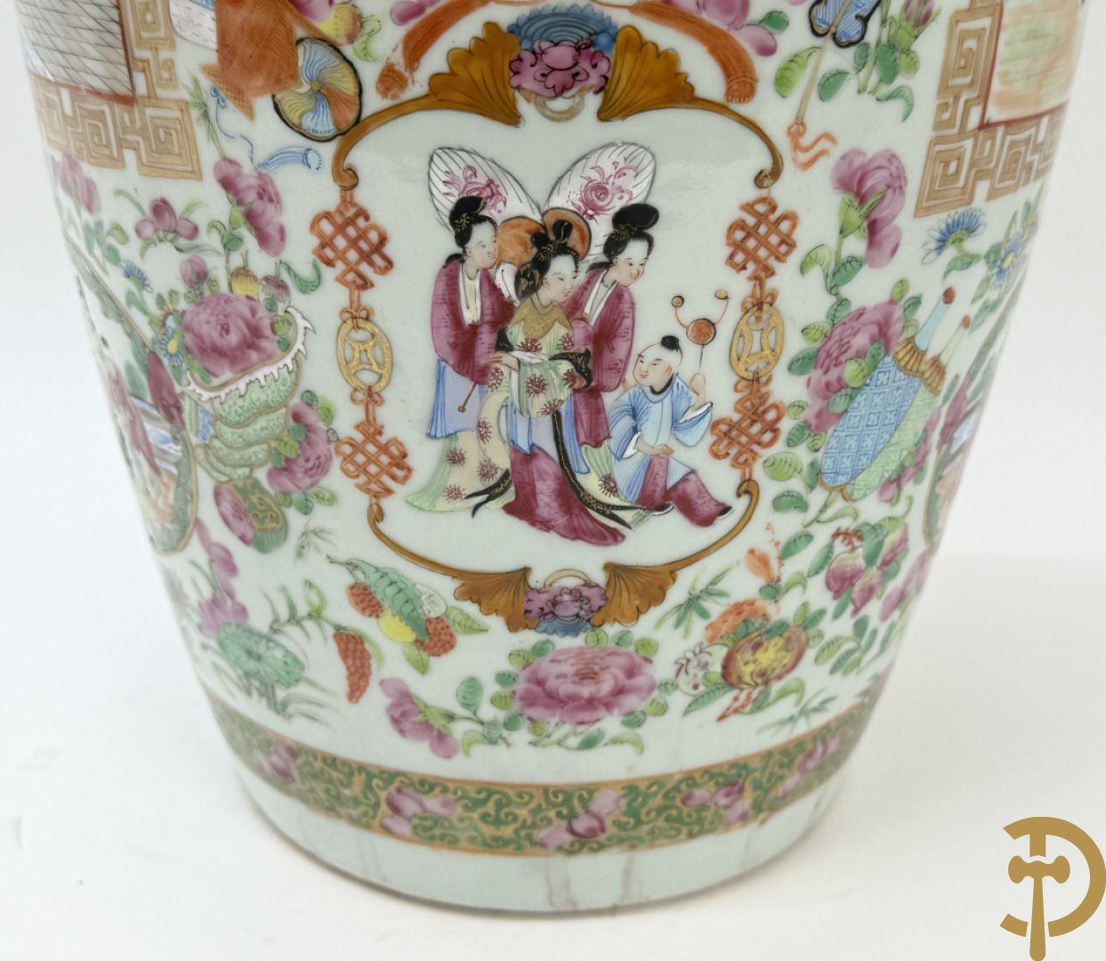 LOT 10 - Chinese porseleinen Kanton vaas met geanimeerde hoftaferelen, natuurmotieven, fauna en floradecor