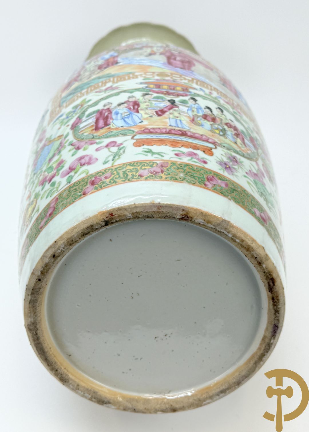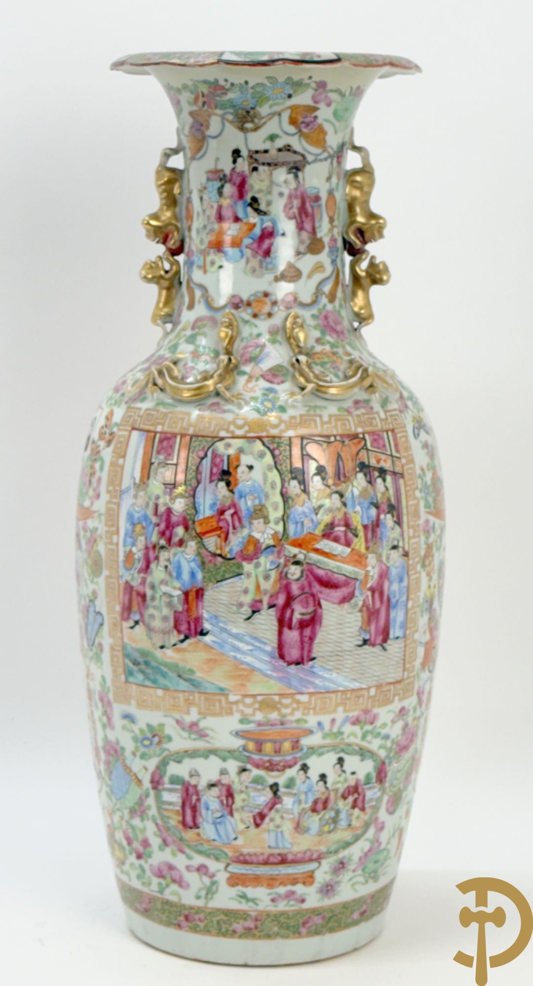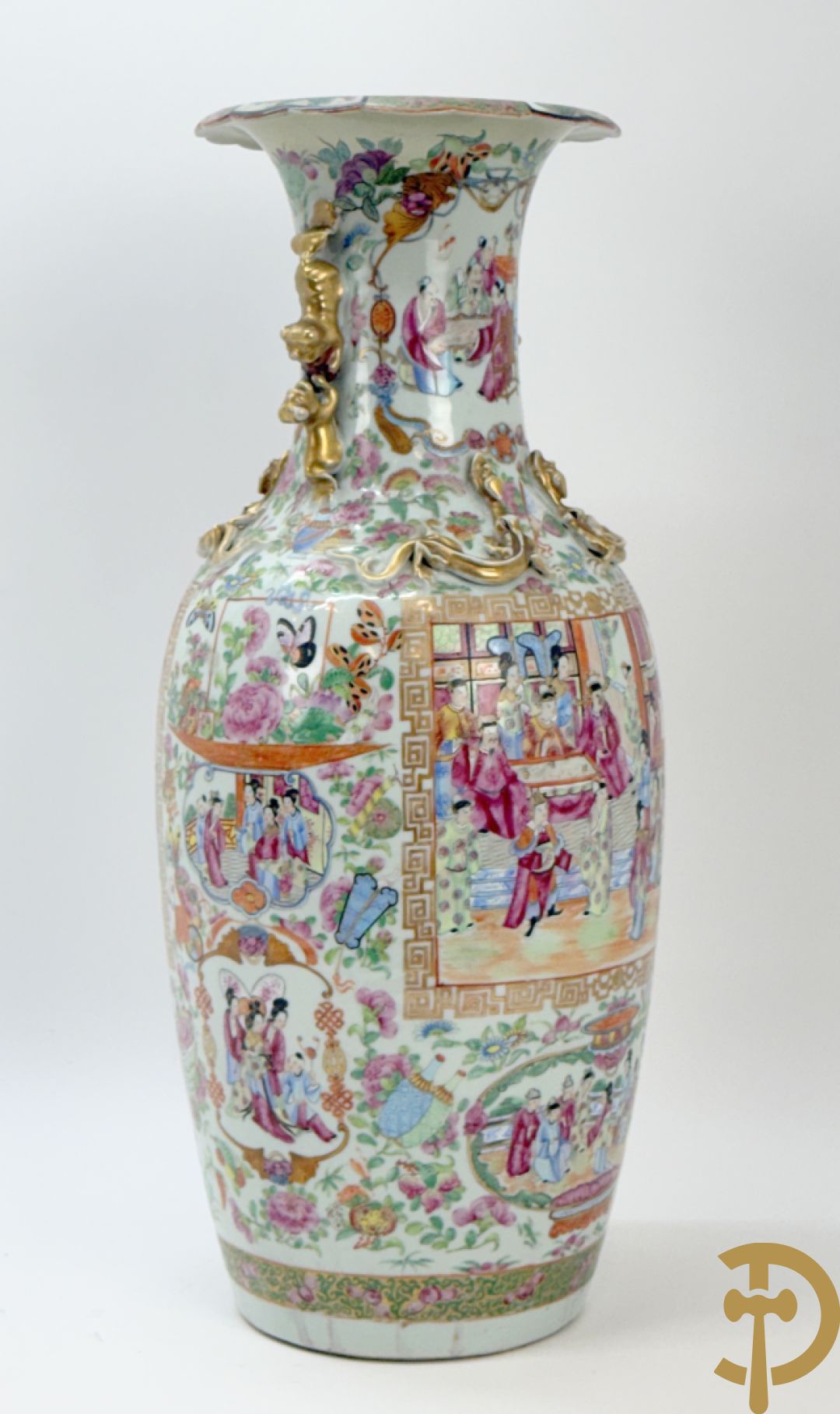 LOT 10 - Chinese porseleinen Kanton vaas met geanimeerde hoftaferelen, natuurmotieven, fauna en floradecor