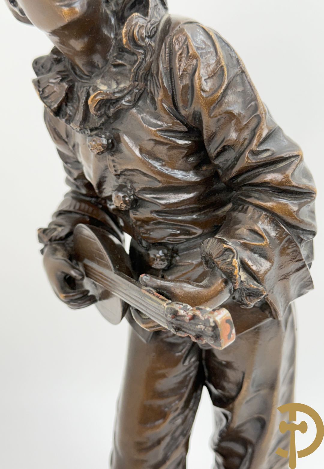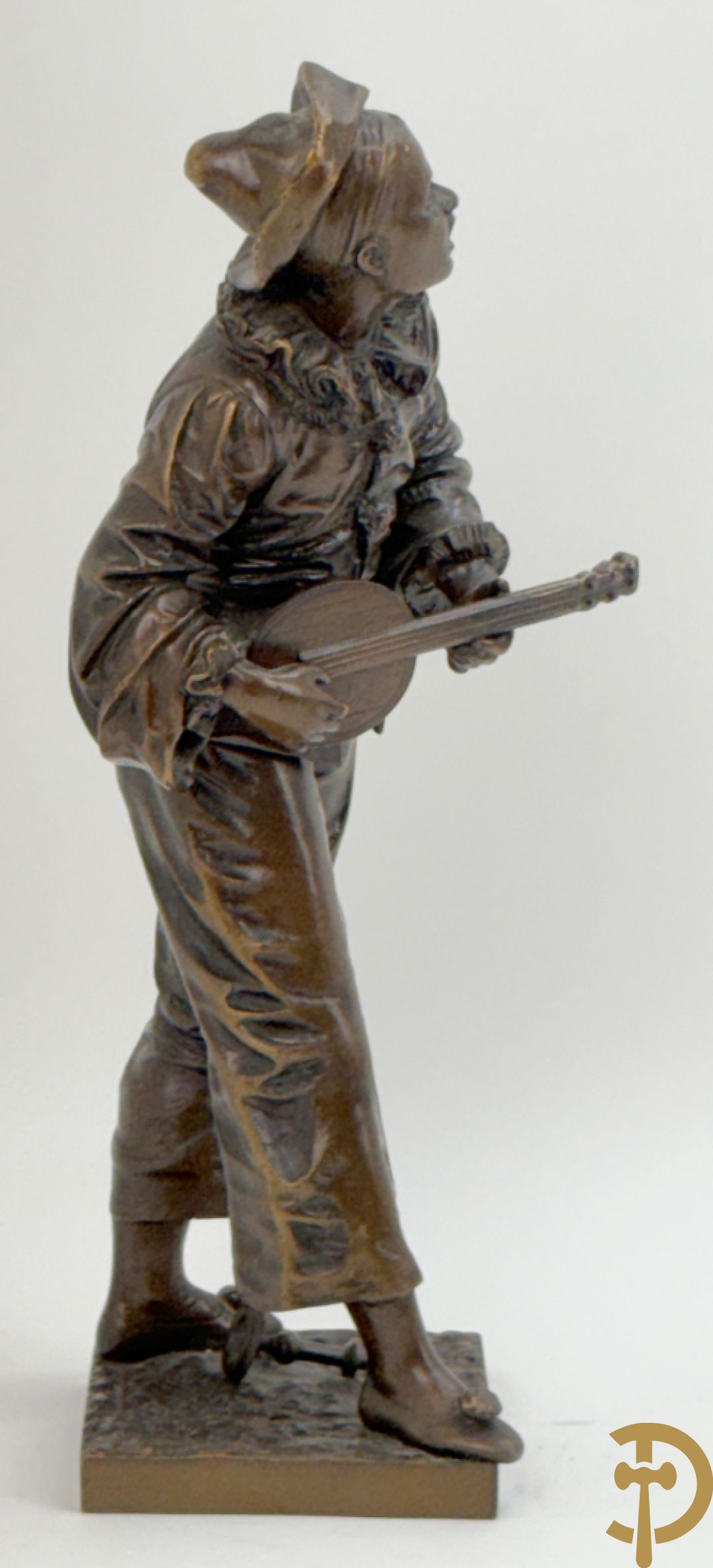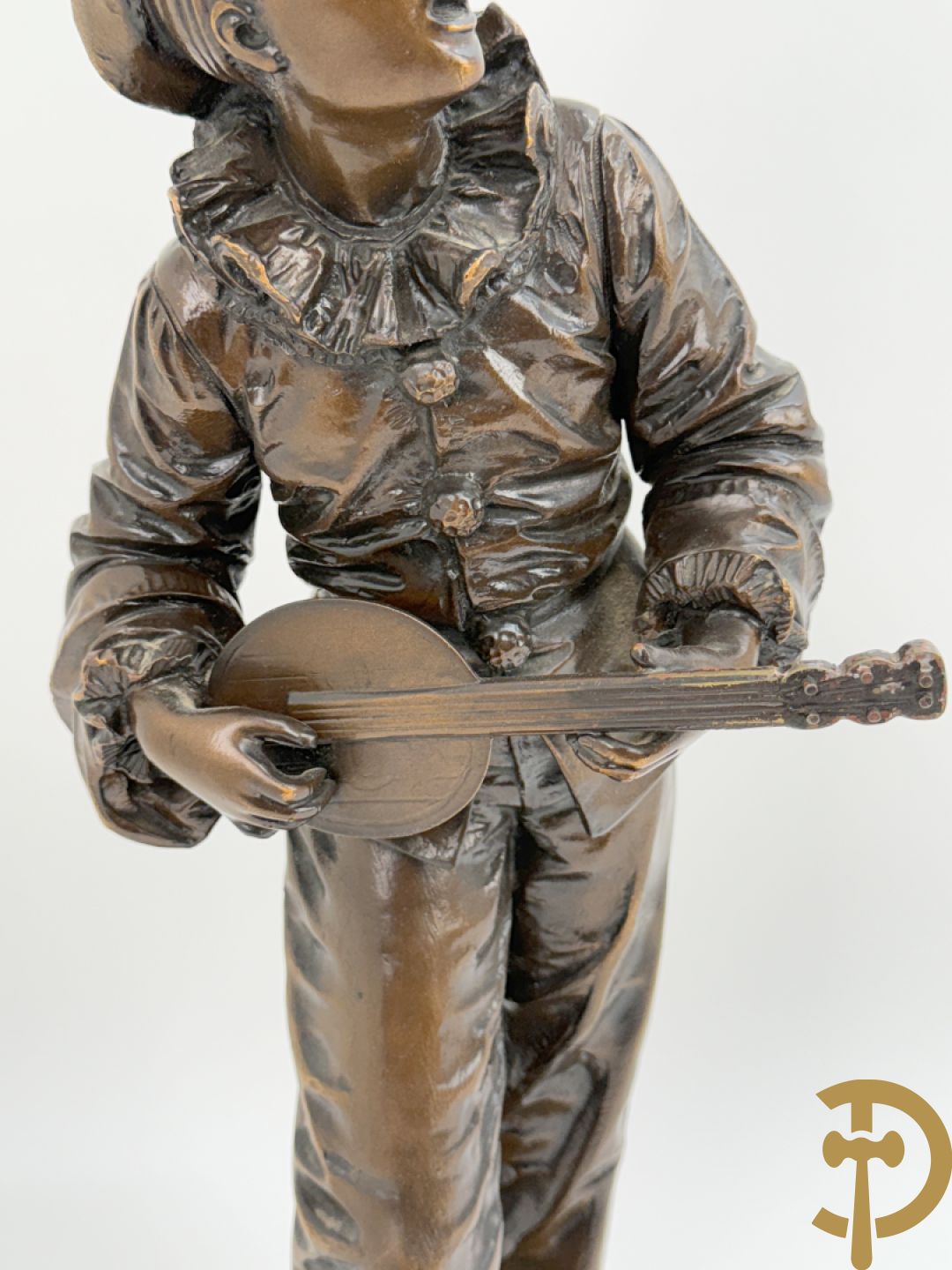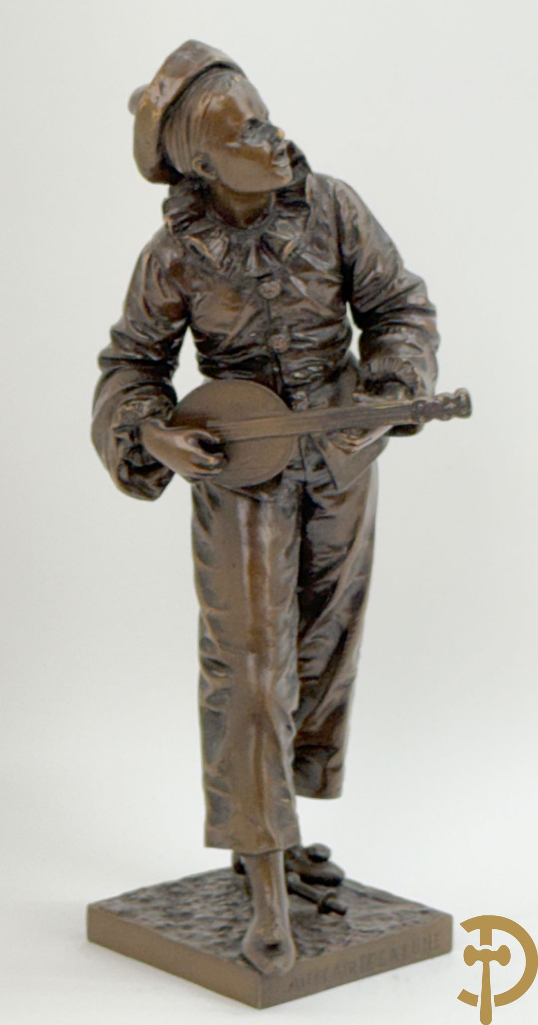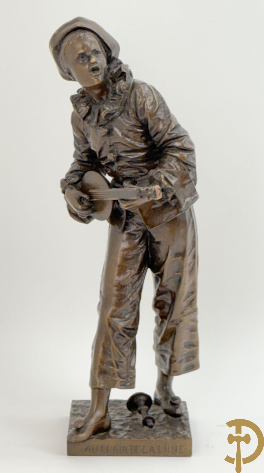 BOURET getekend 'Au Clair de la Lune, Pierrot met mandoline' bronzen beeld 19e