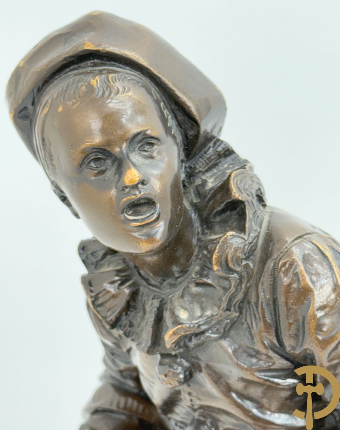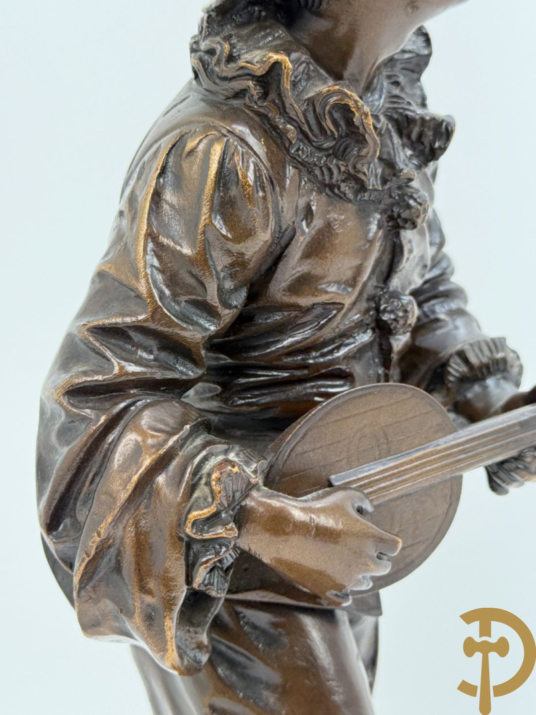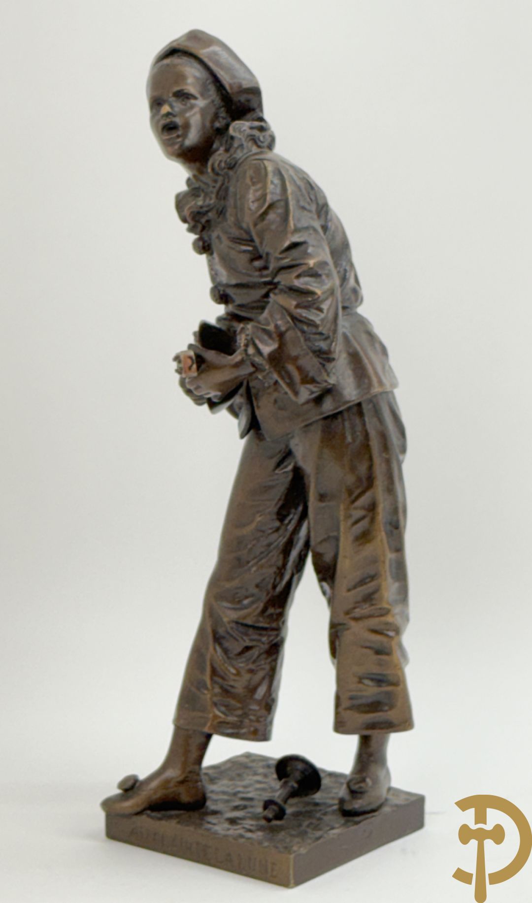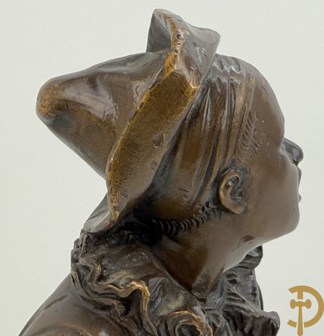 BOURET getekend 'Au Clair de la Lune, Pierrot met mandoline' bronzen beeld 19e