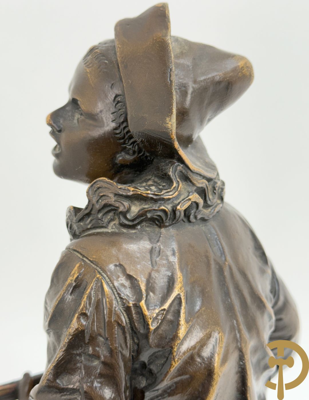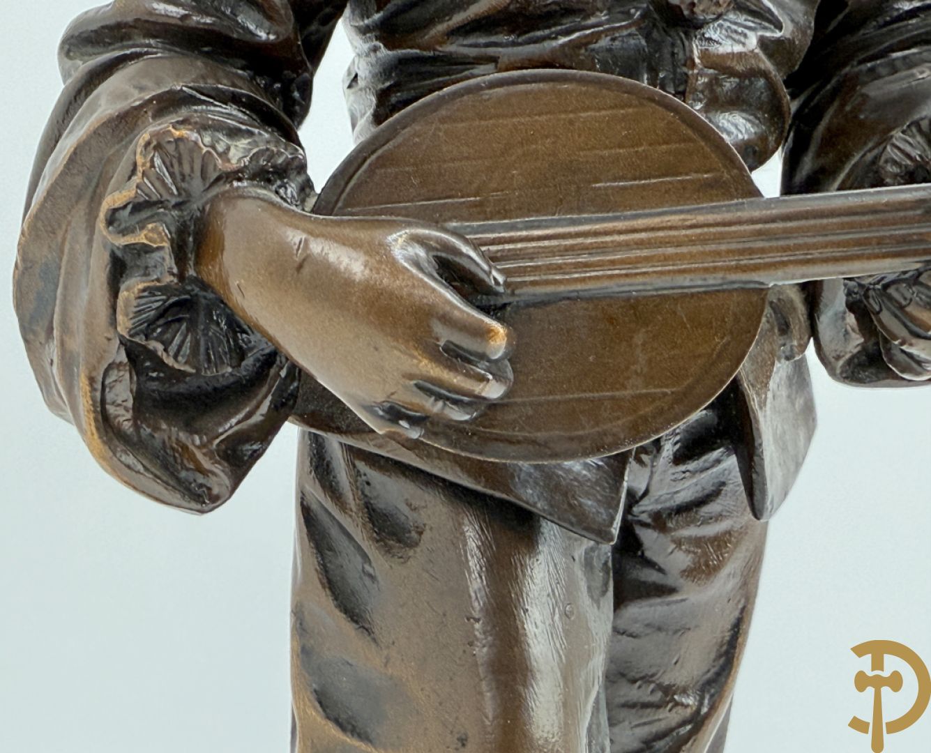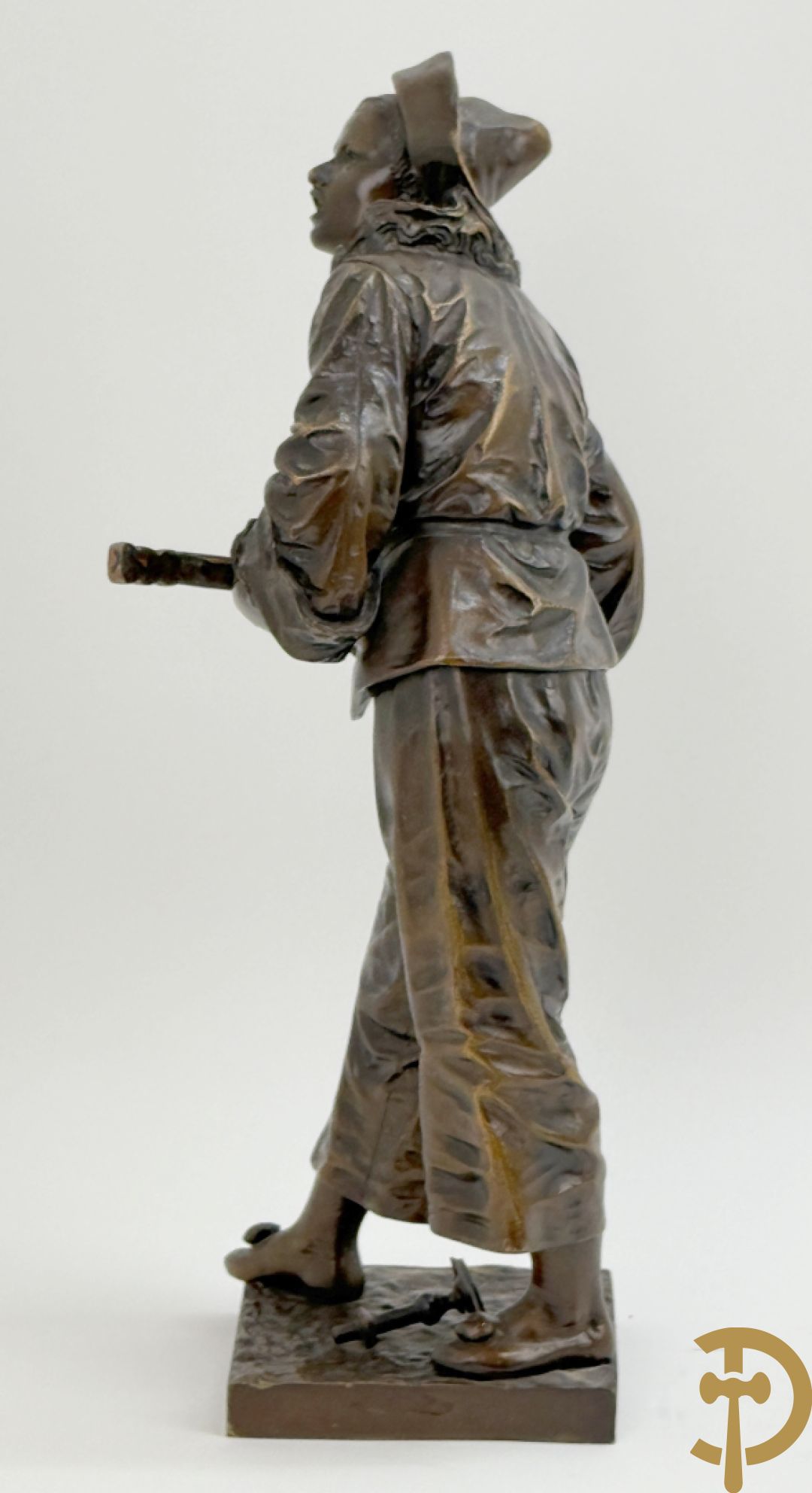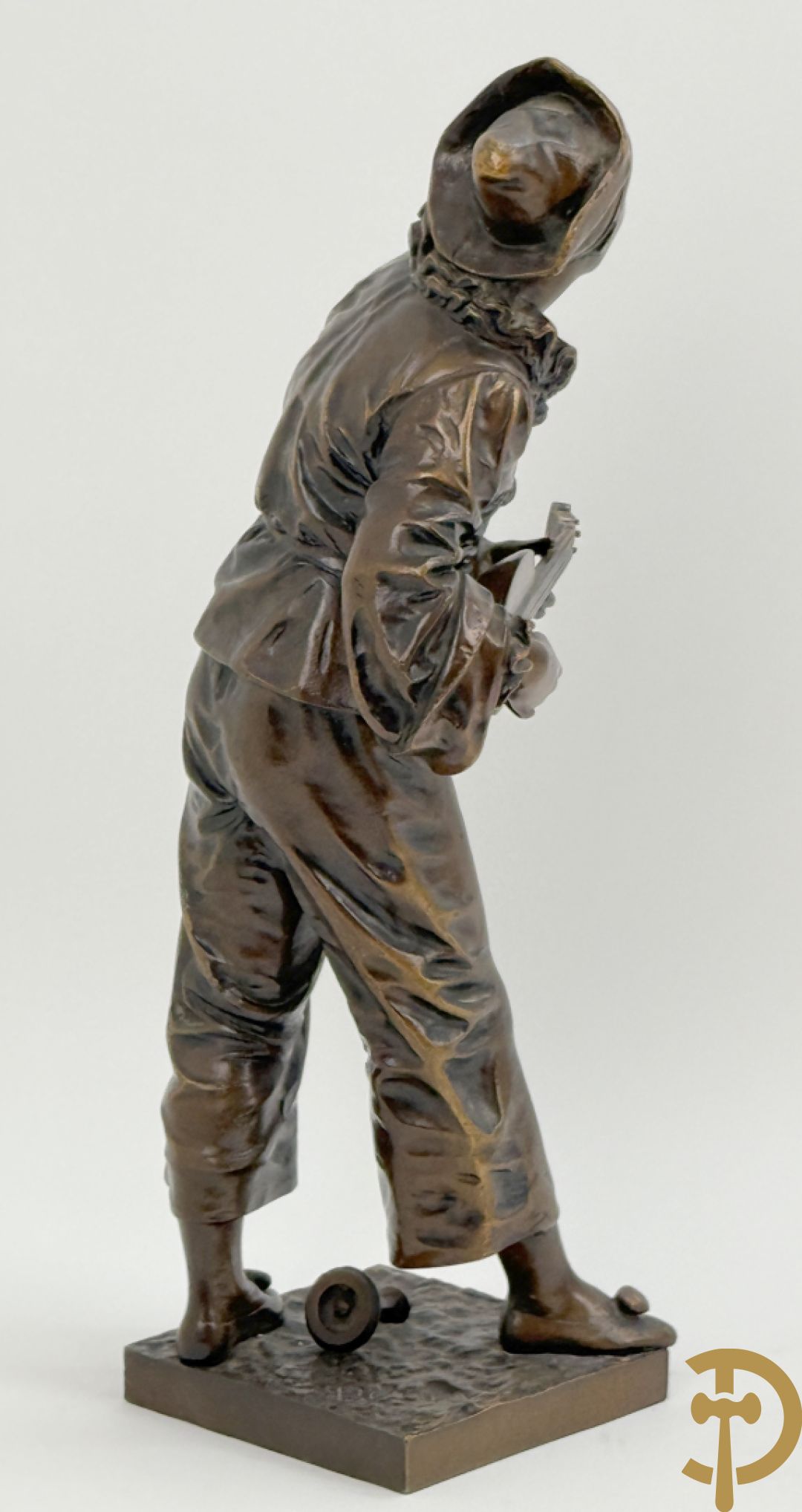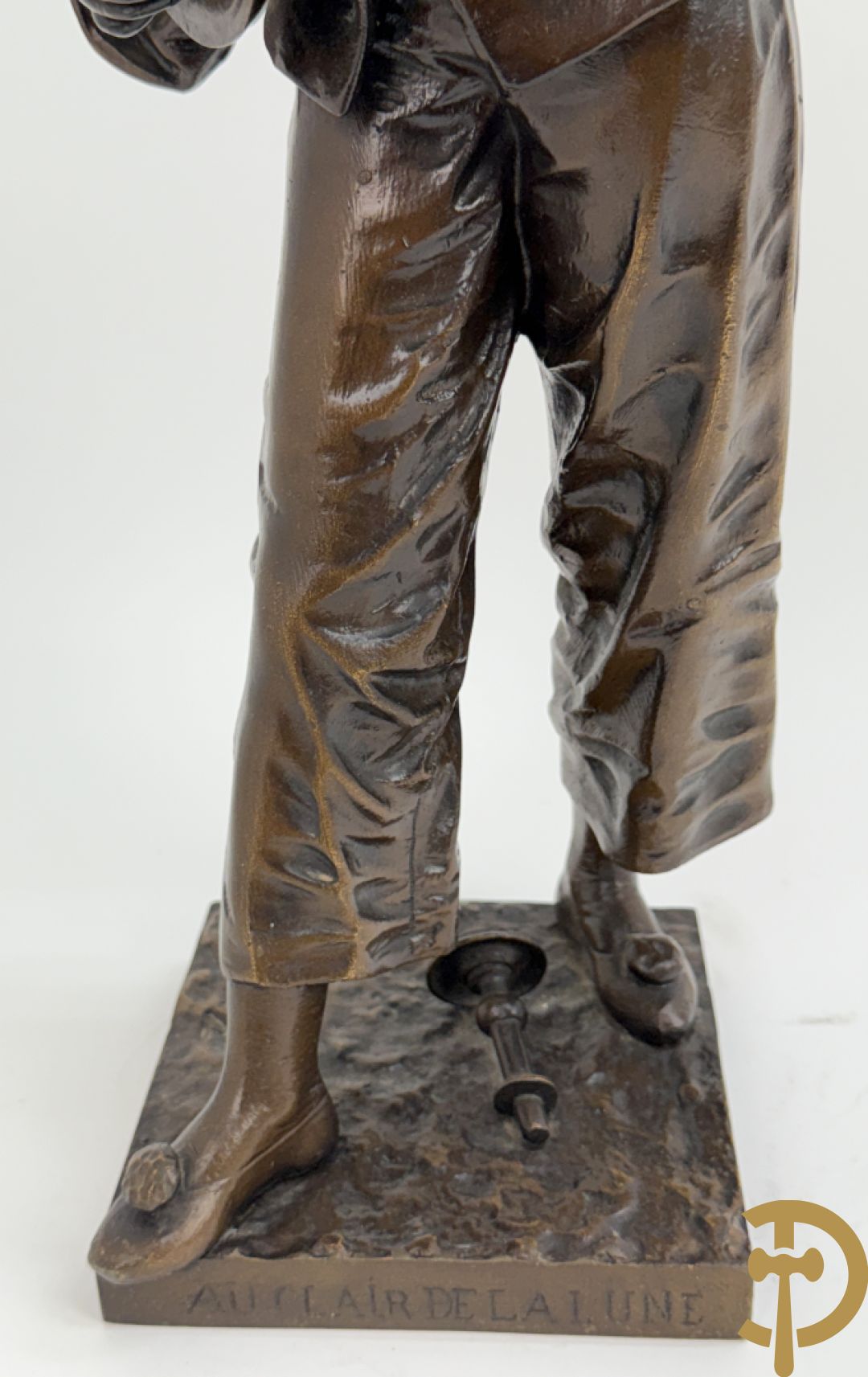 BOURET getekend 'Au Clair de la Lune, Pierrot met mandoline' bronzen beeld 19e