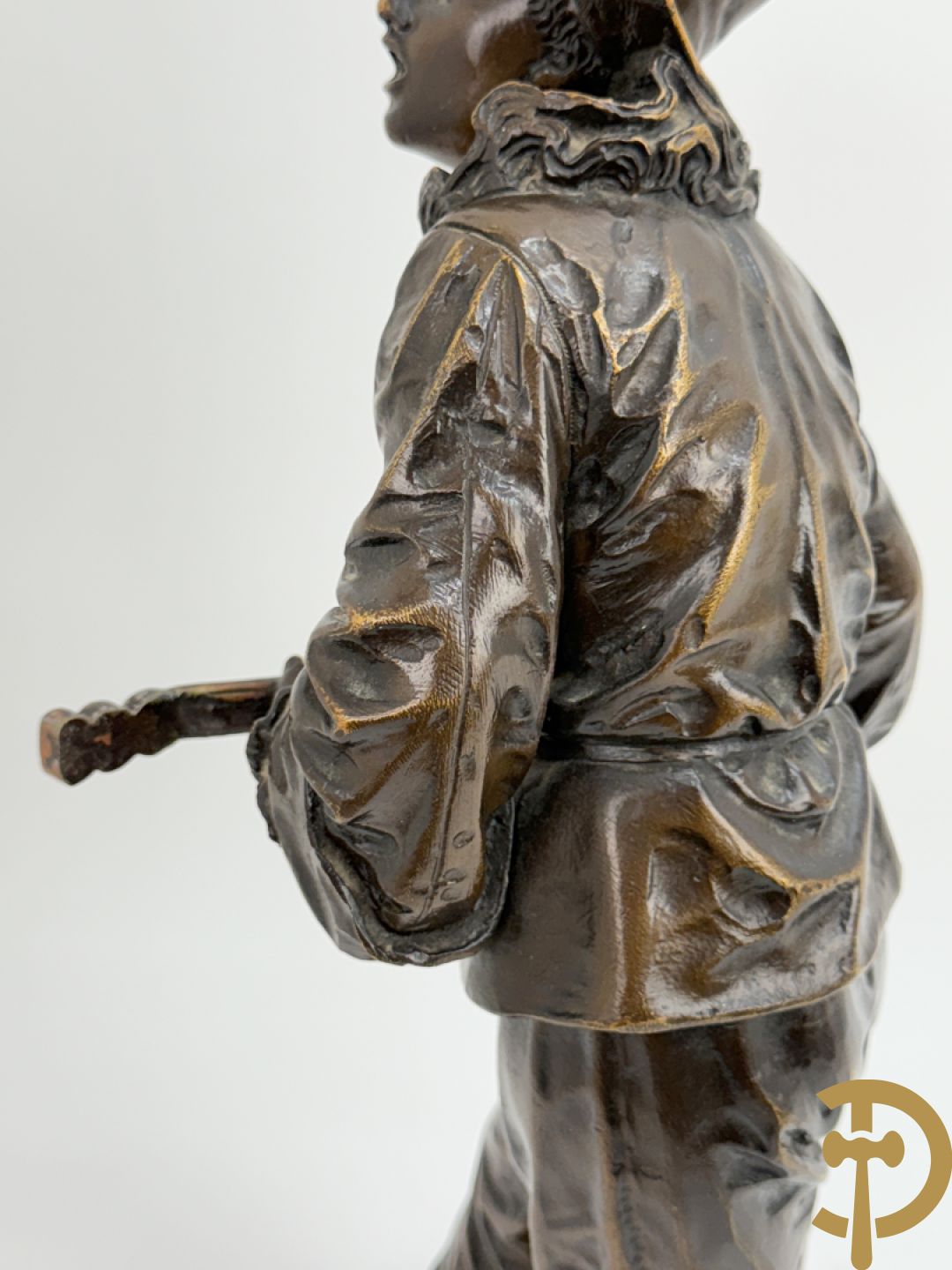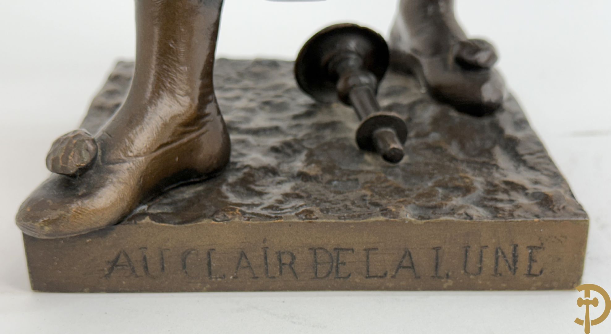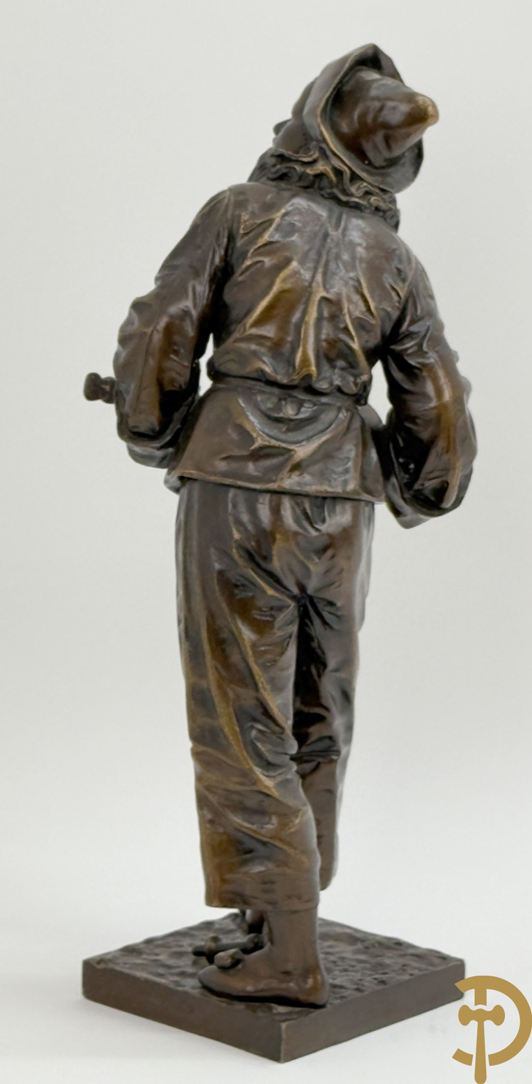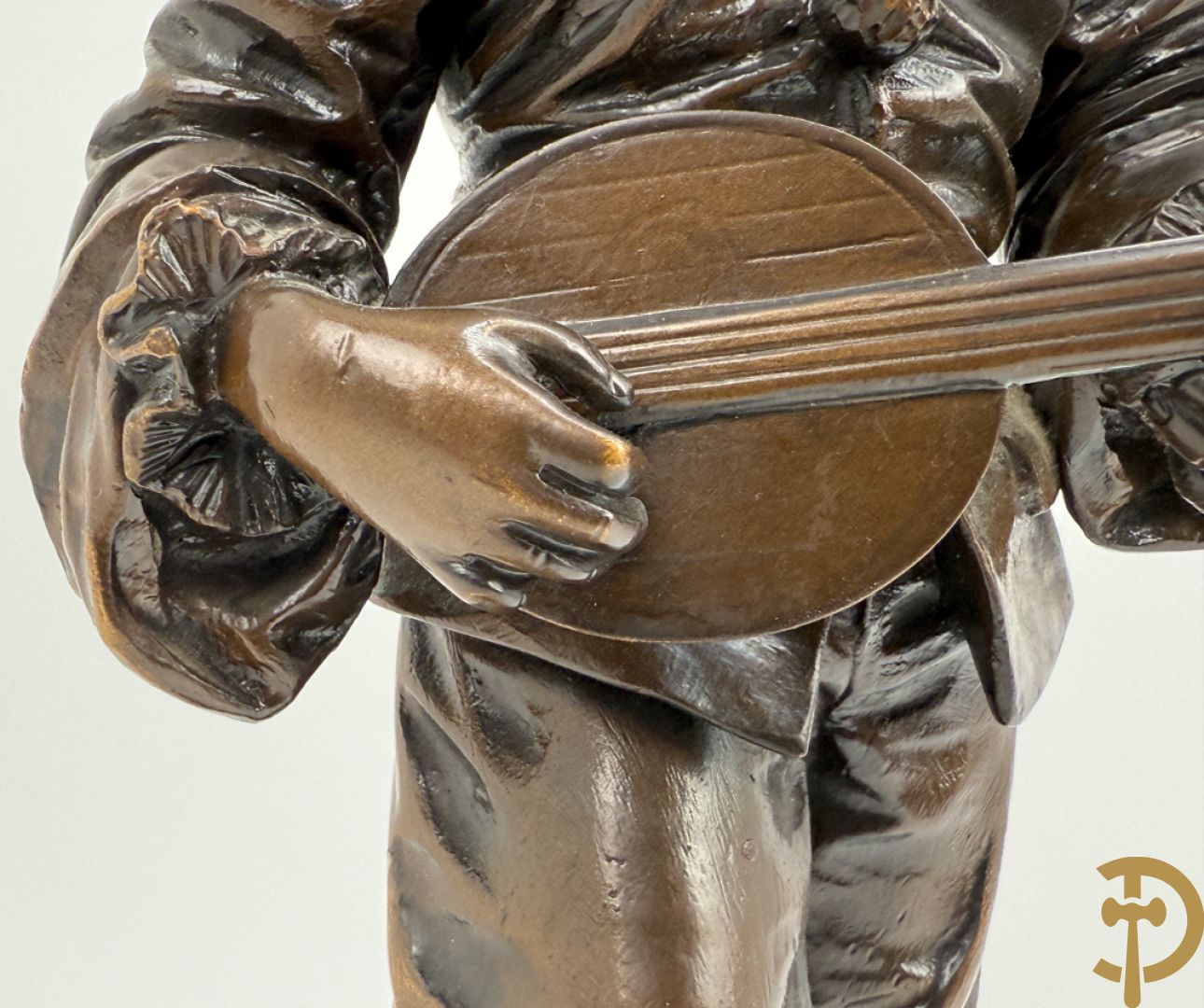 BOURET getekend 'Au Clair de la Lune, Pierrot met mandoline' bronzen beeld 19e