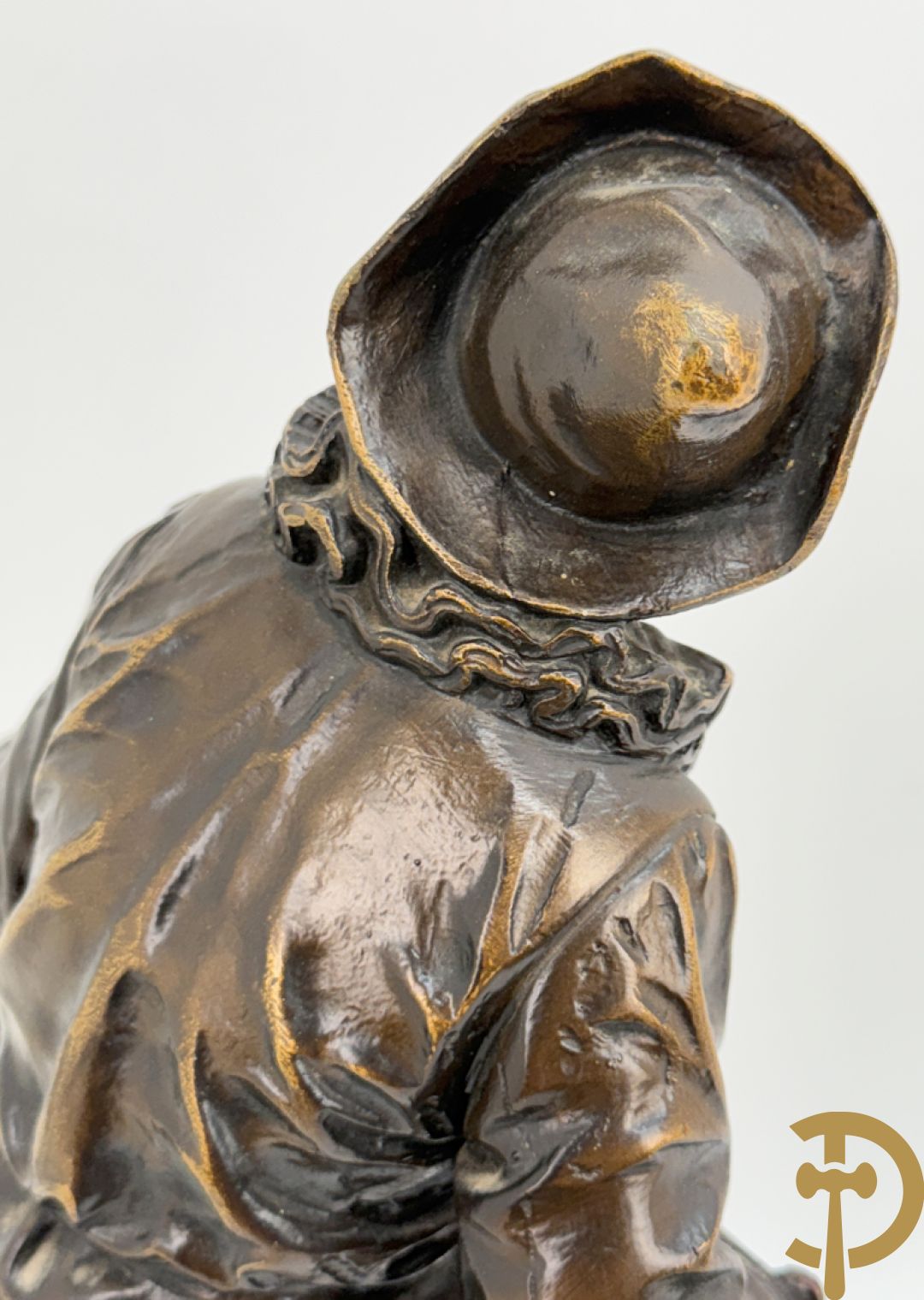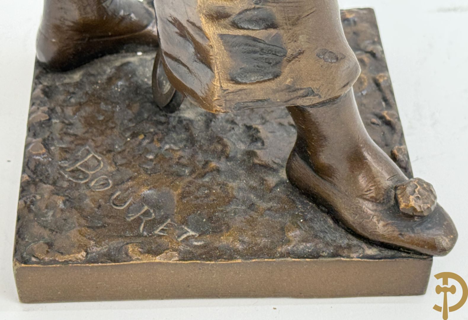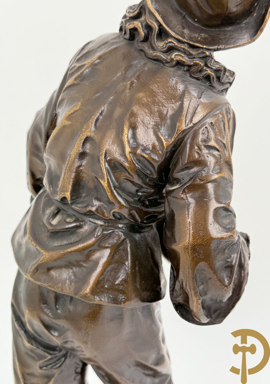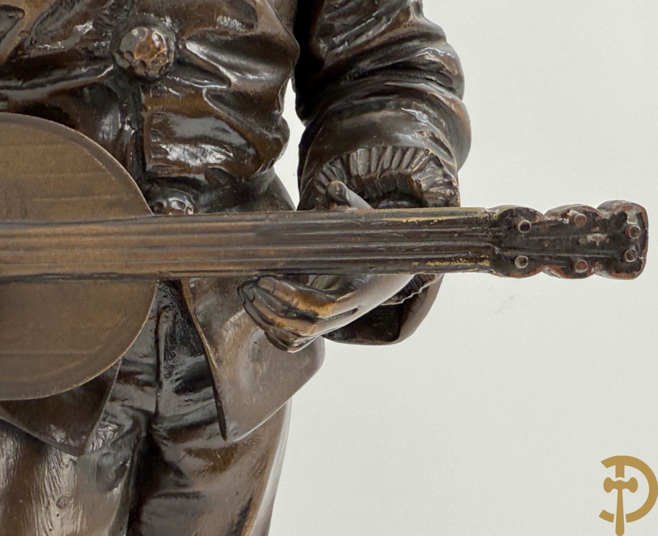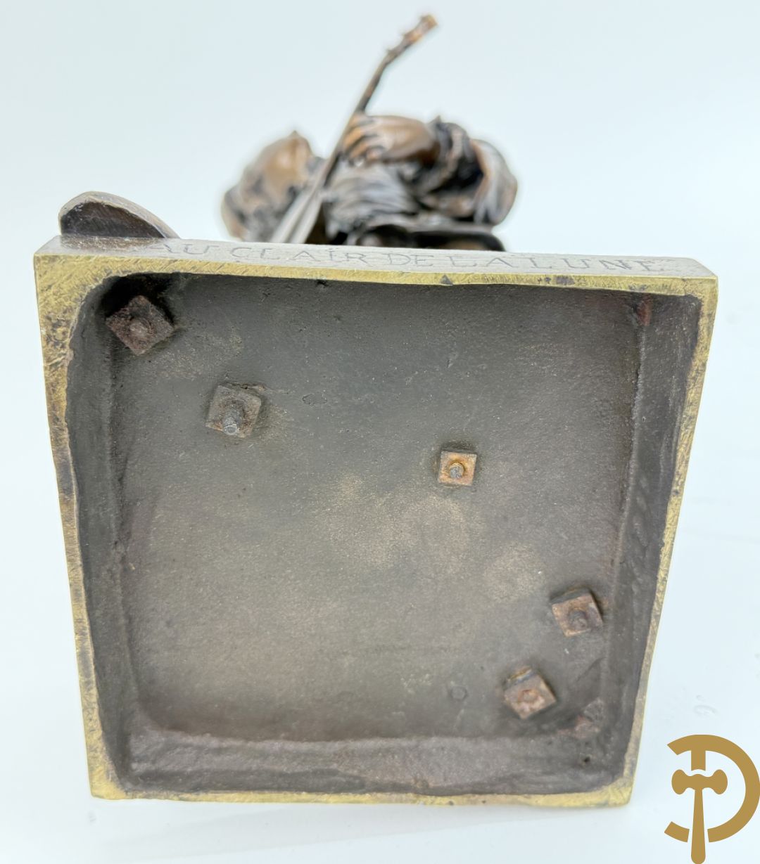 BOURET getekend 'Au Clair de la Lune, Pierrot met mandoline' bronzen beeld 19e