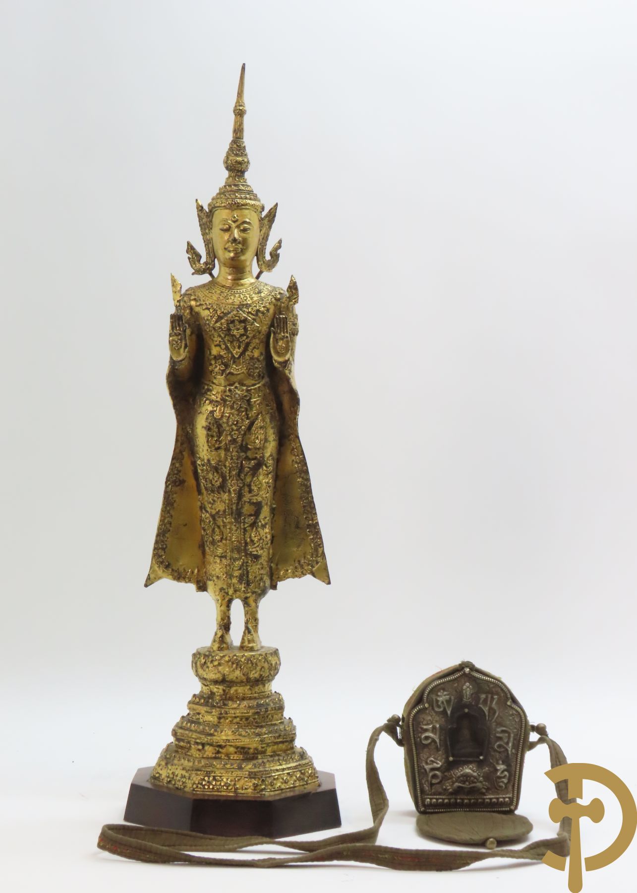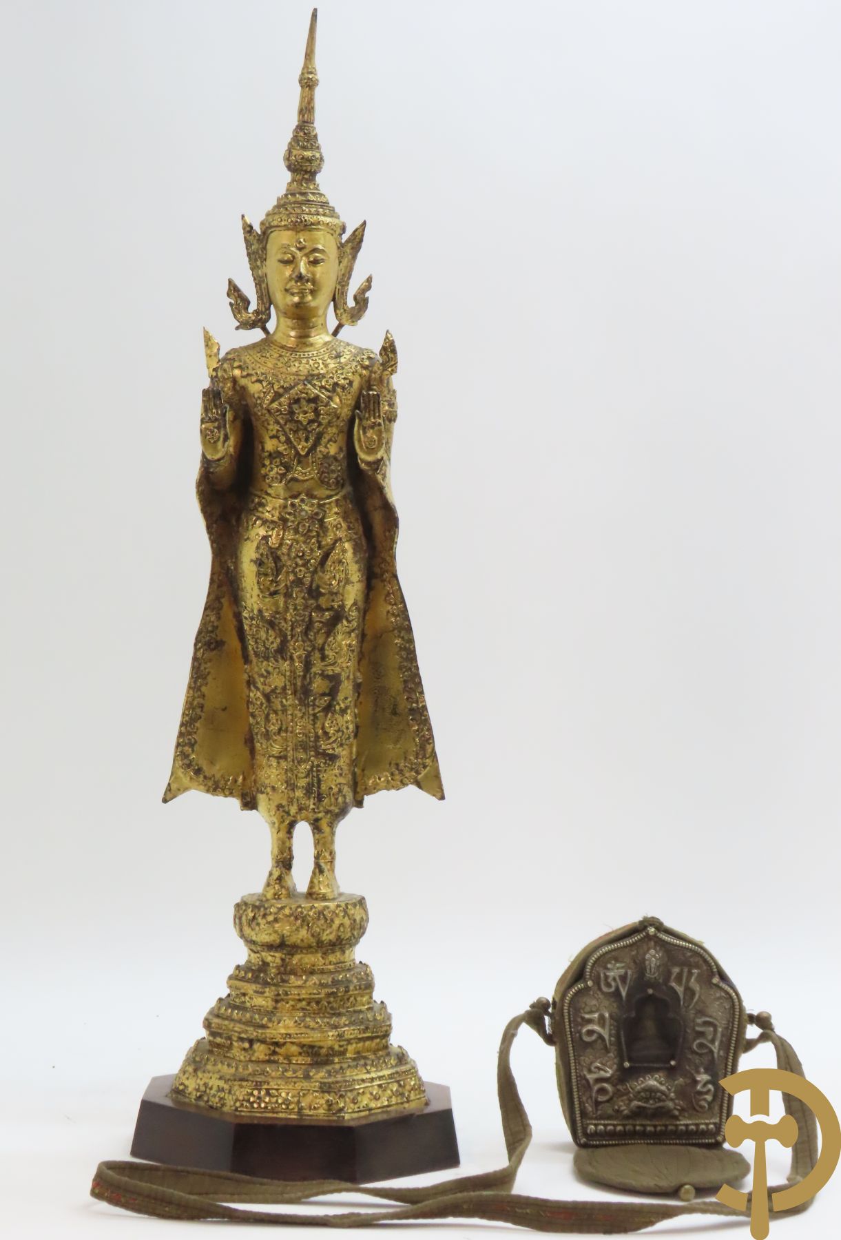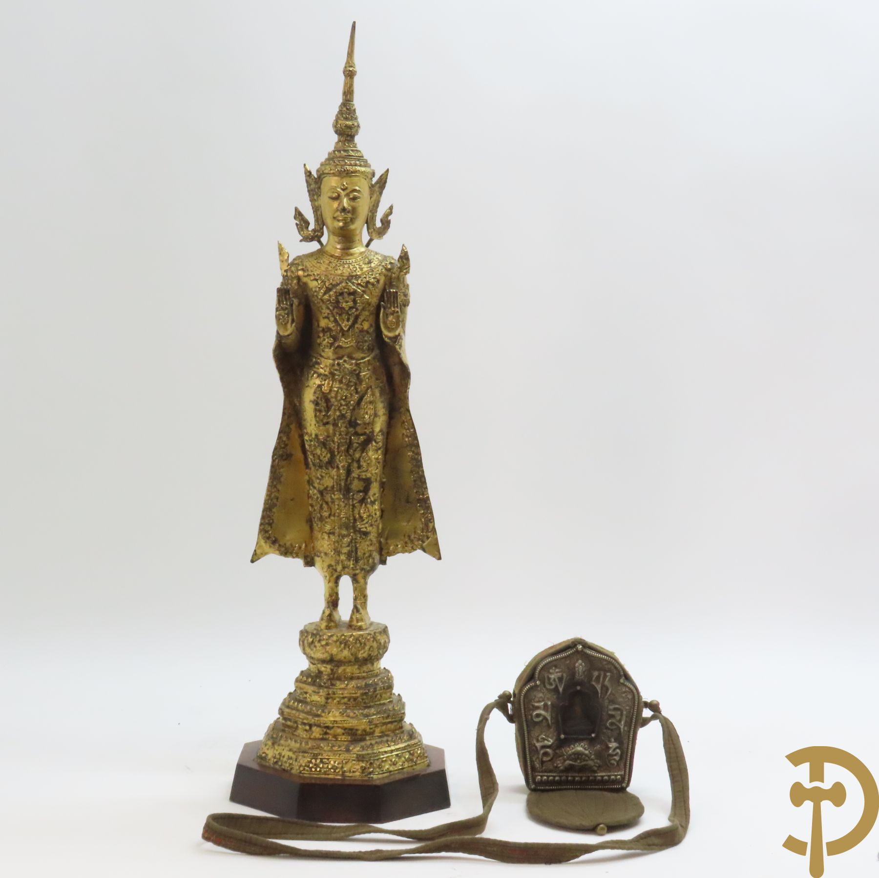 LOT 33 - Boedhistische reisrelikwie + staande vergulde boedha